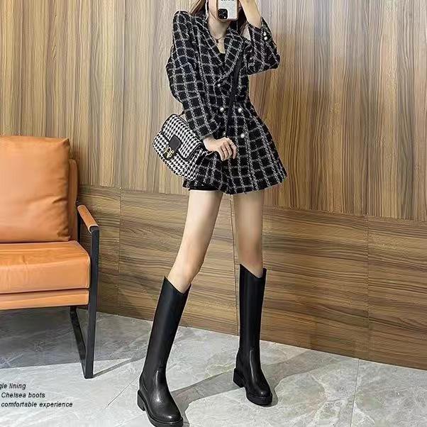 Yierkang otoño e invierno nuevo persona pequeña en la boca realzante más terciopelo sobre la rodilla media pantorrilla piel suave botas individuales adelgazantes cuando