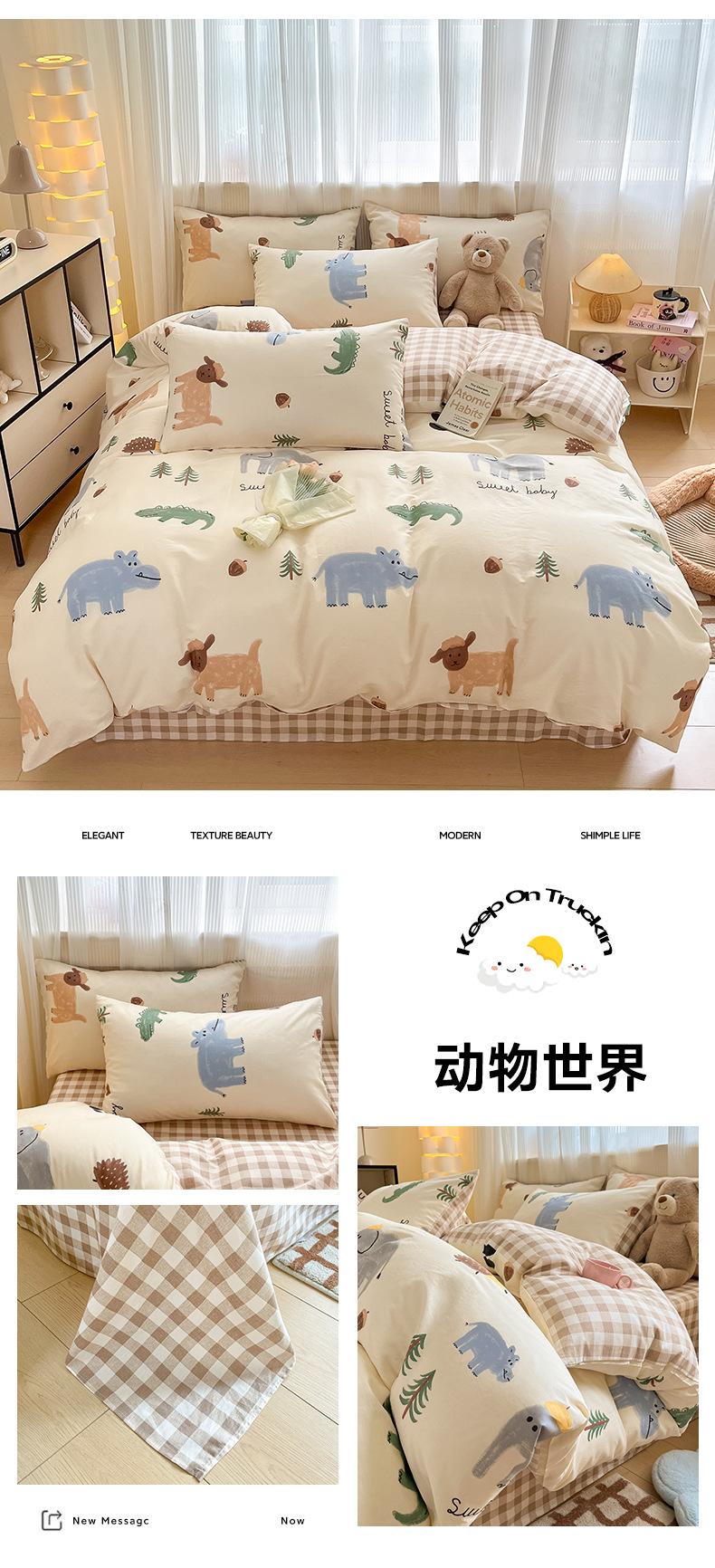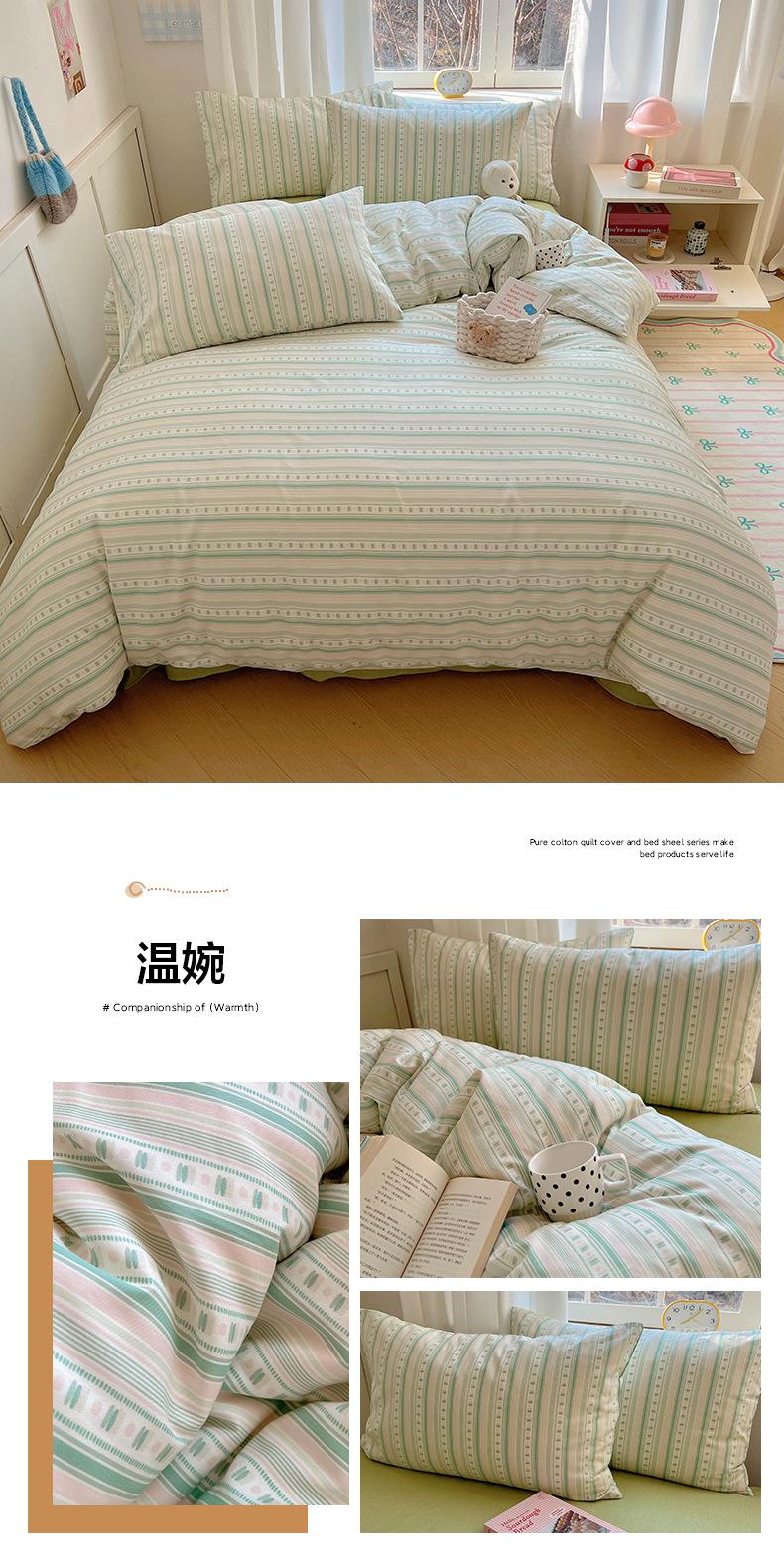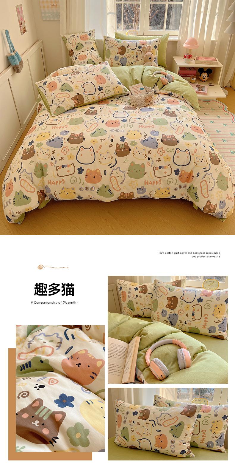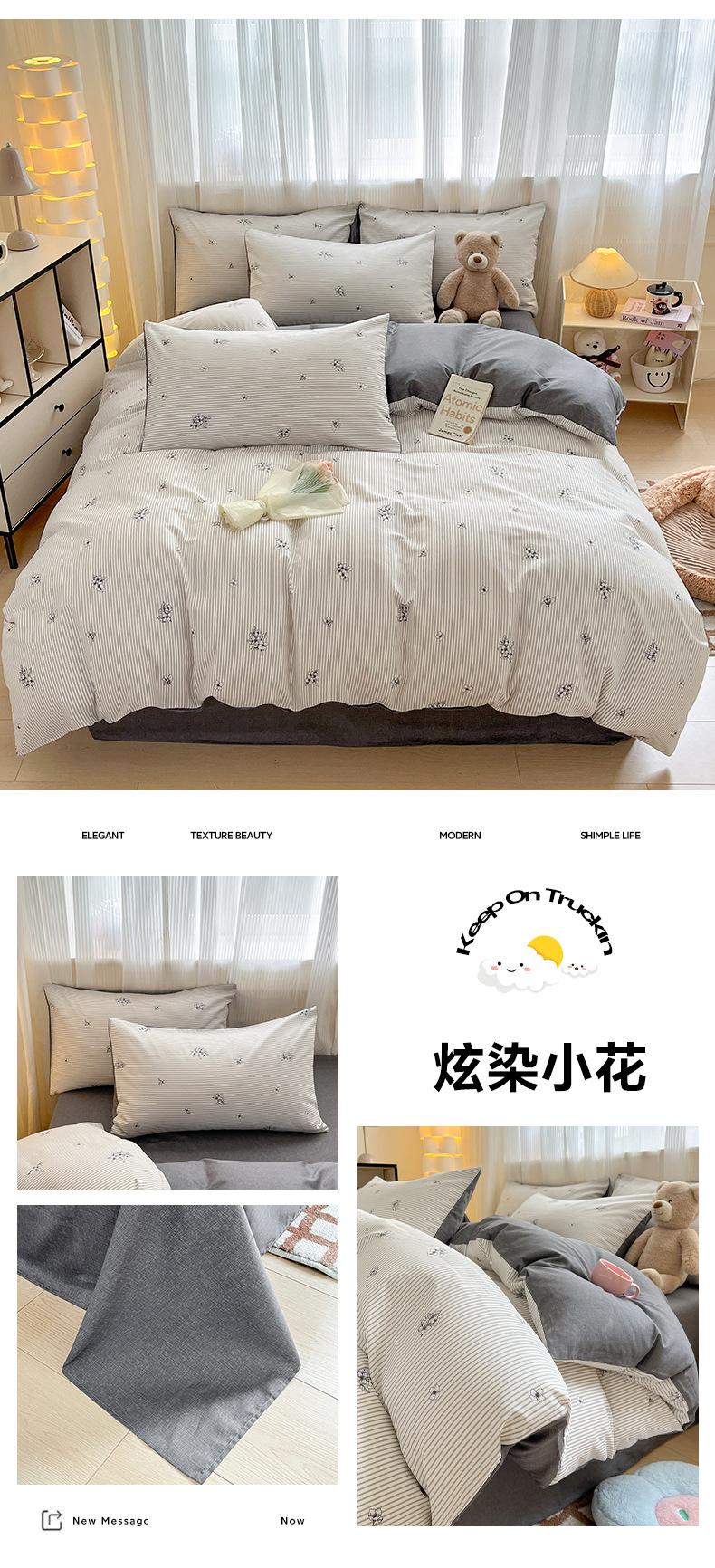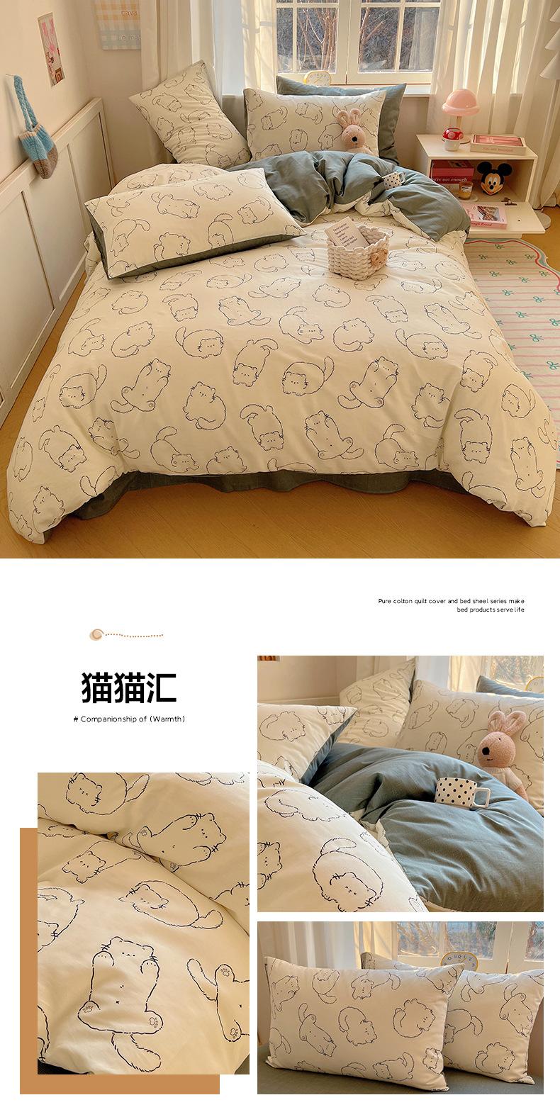 Juego de cama de cuatro piezas de algodón puro, algodón lavado, funda nórdica nueva, sábana bajera, funda nórdica, juego de tres piezas para dormitorio de estudiantes
