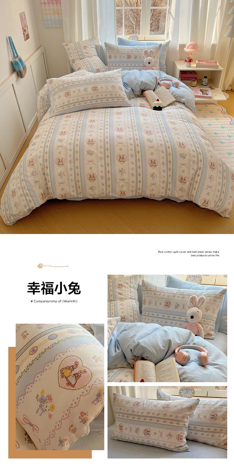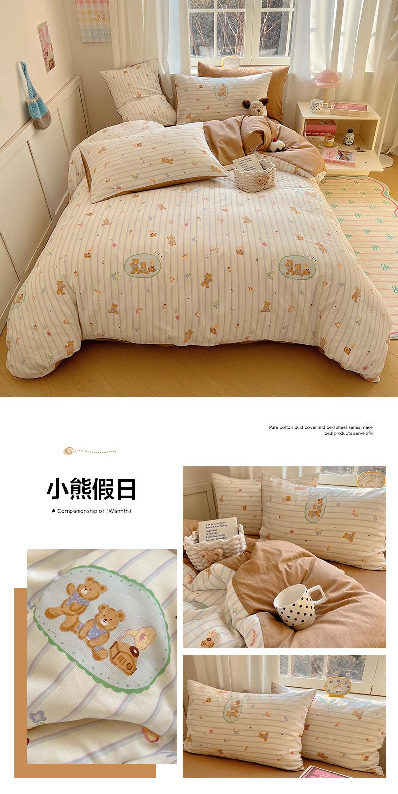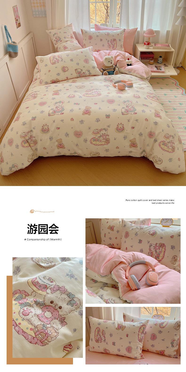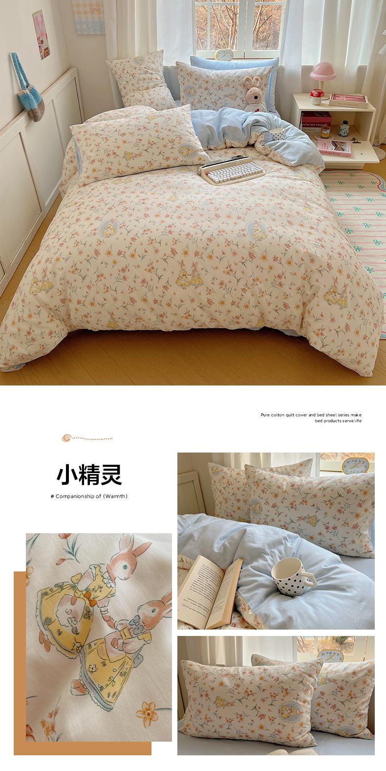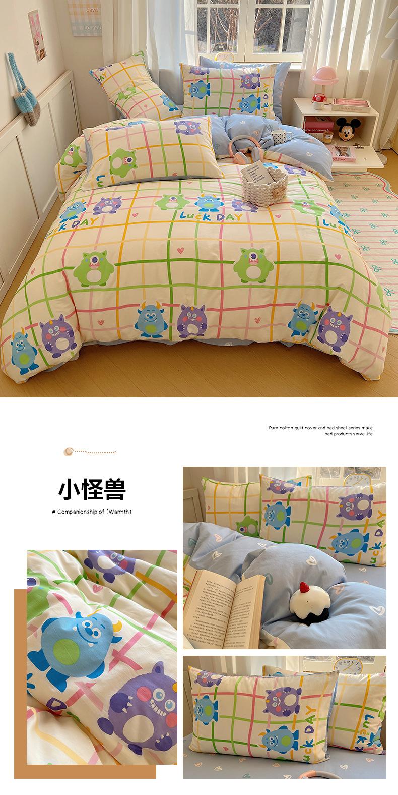 Juego de cama de cuatro piezas de algodón puro, algodón lavado, funda nórdica nueva, sábana bajera, funda nórdica, juego de tres piezas para dormitorio de estudiantes