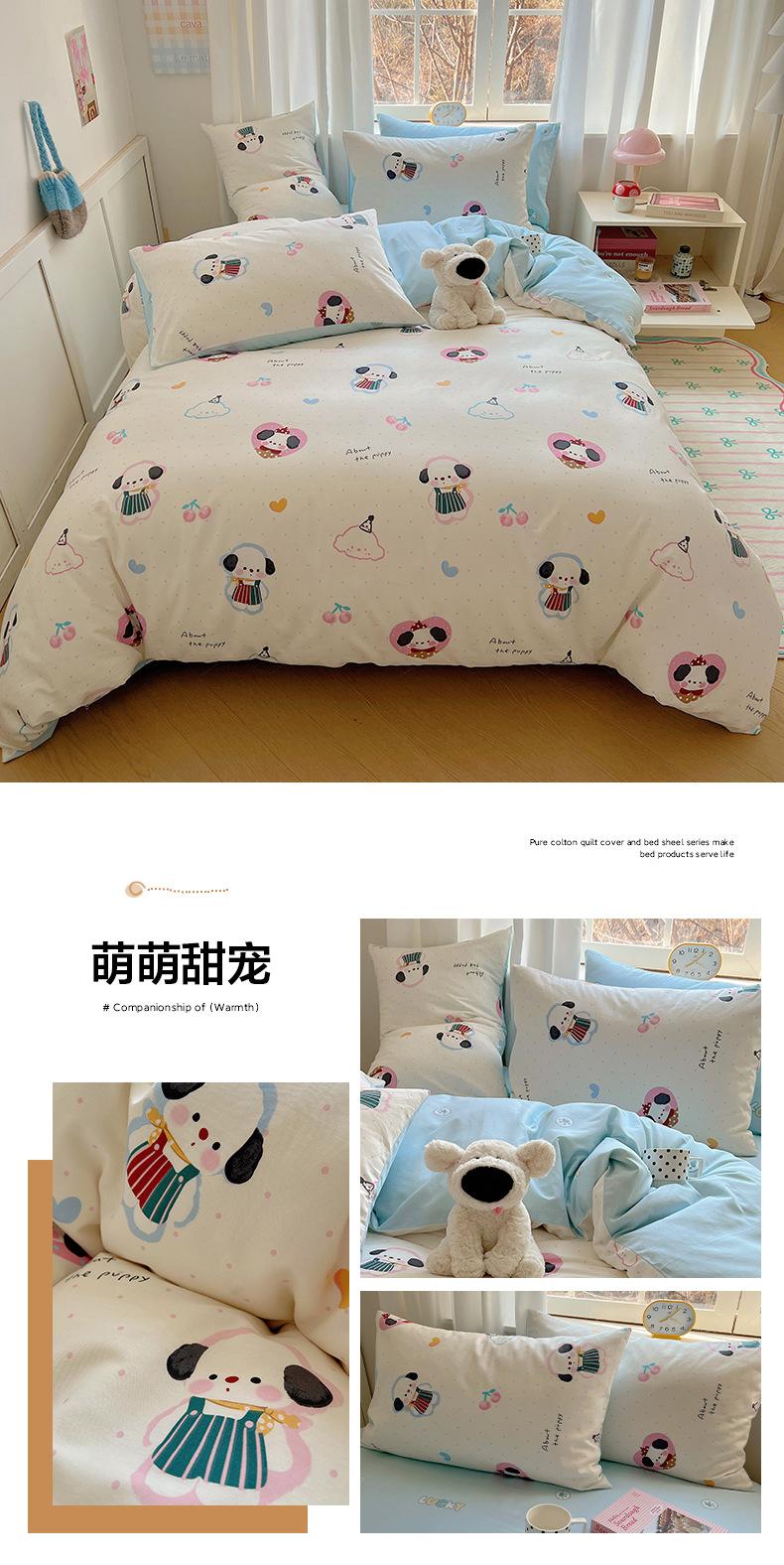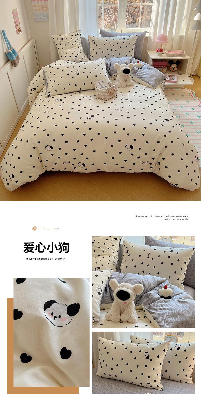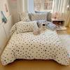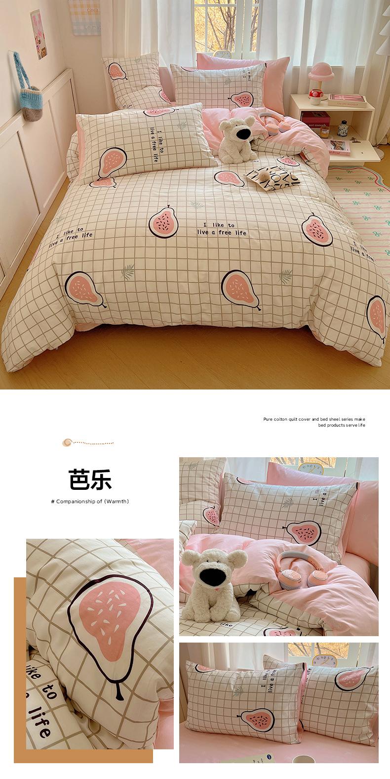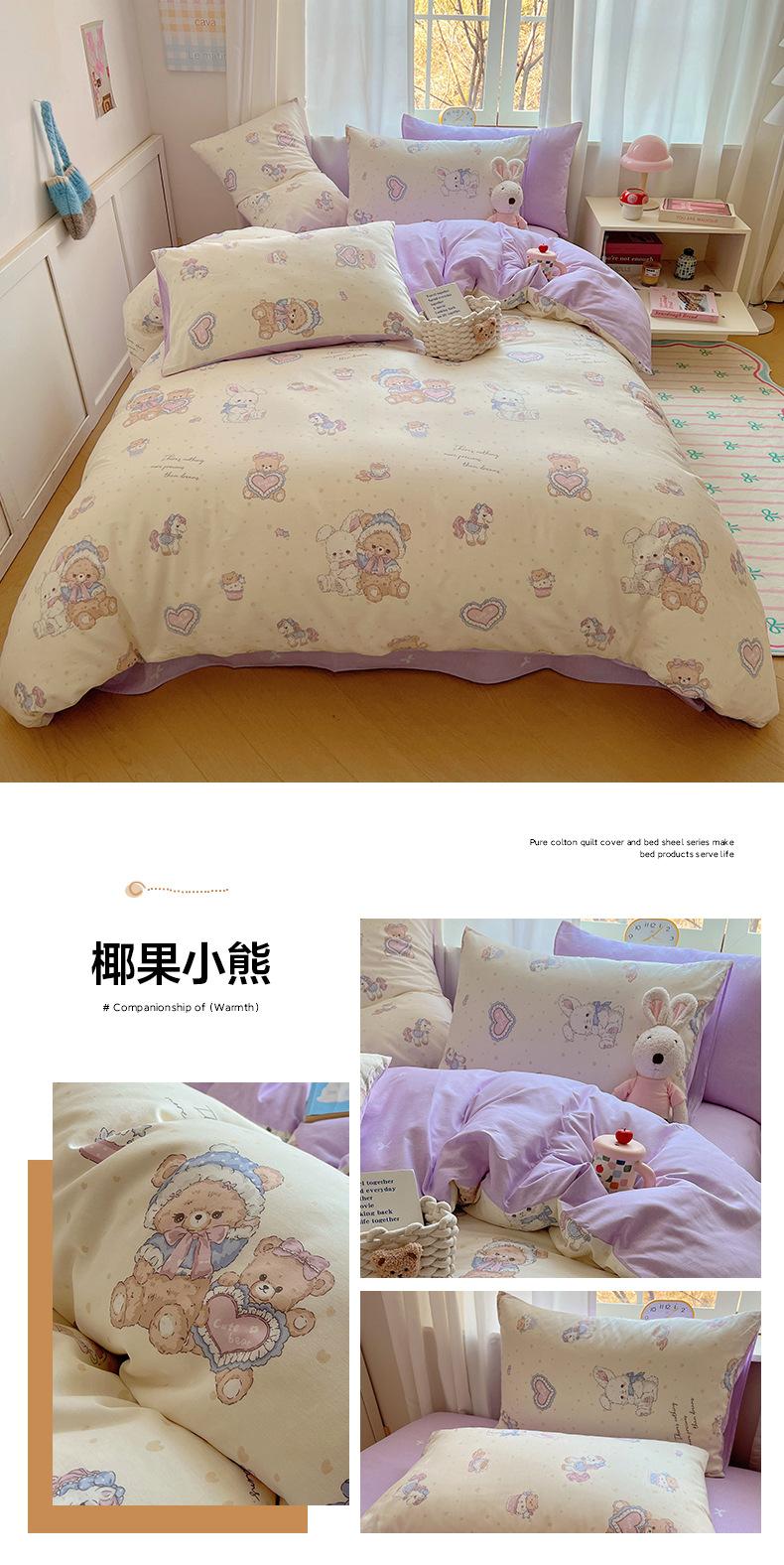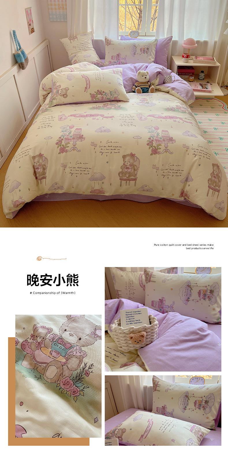 Juego de cama de cuatro piezas de algodón puro, algodón lavado, funda nórdica nueva, sábana bajera, funda nórdica, juego de tres piezas para dormitorio de estudiantes