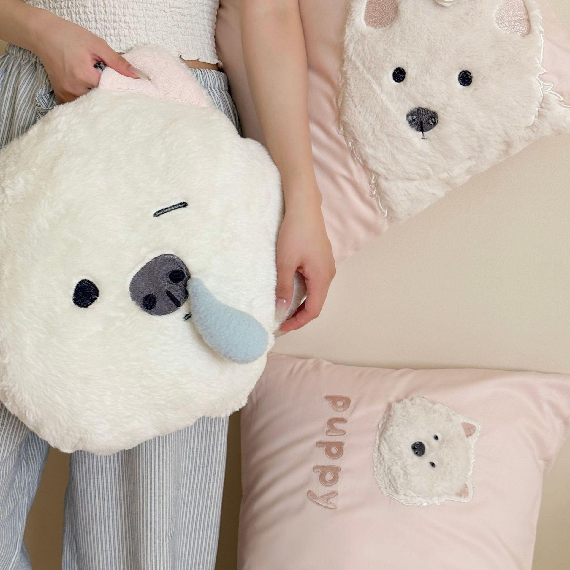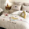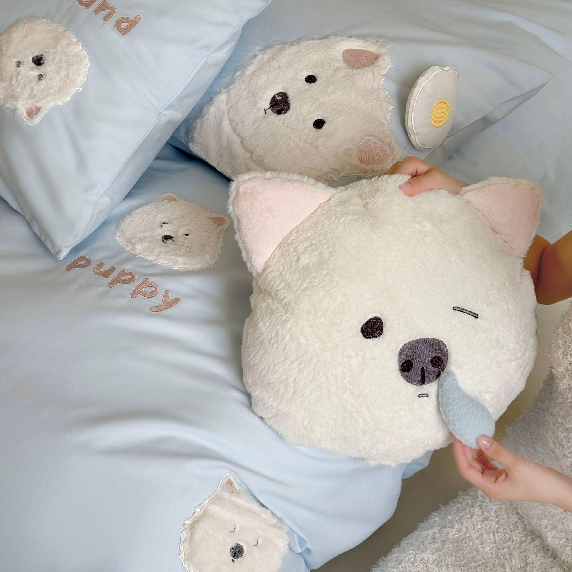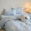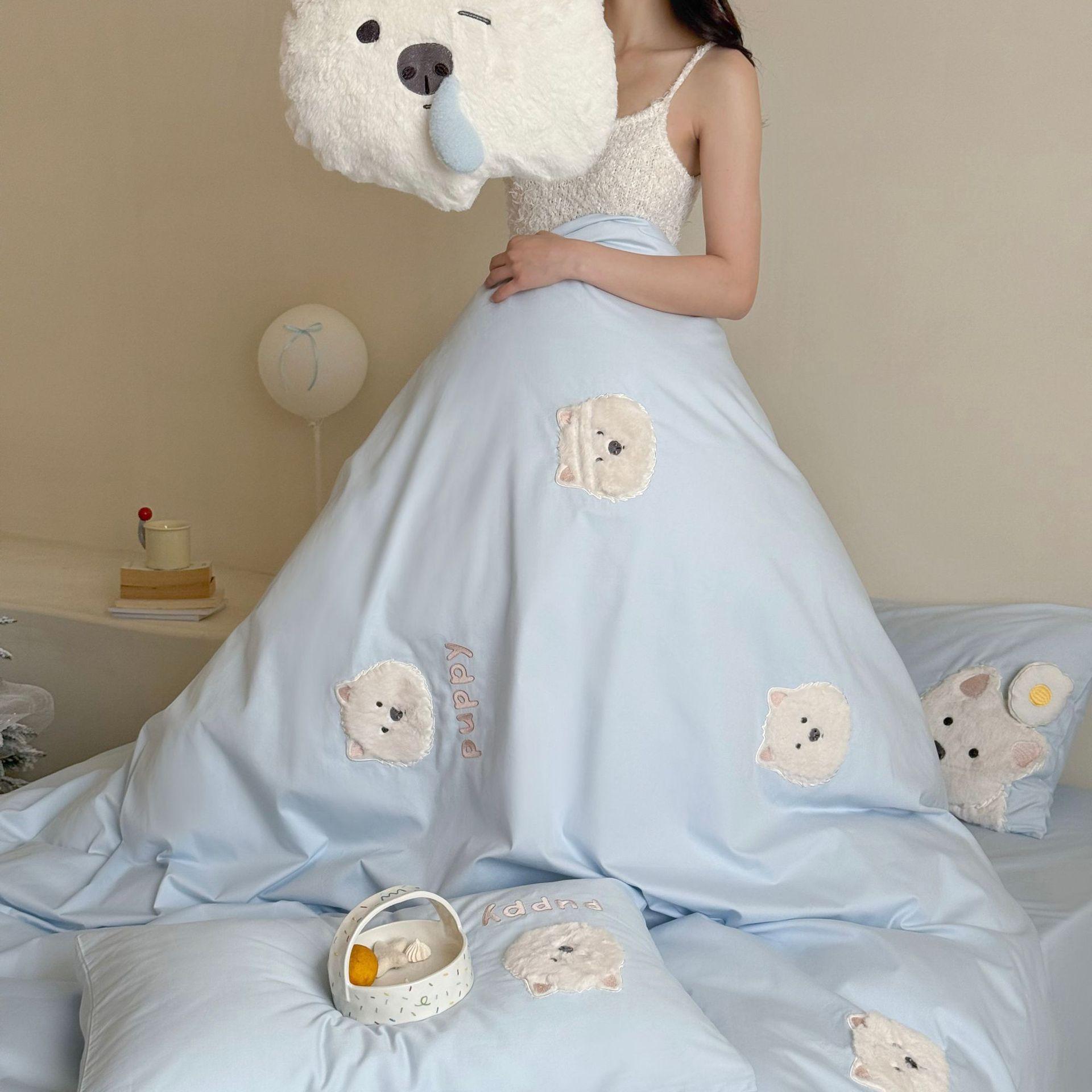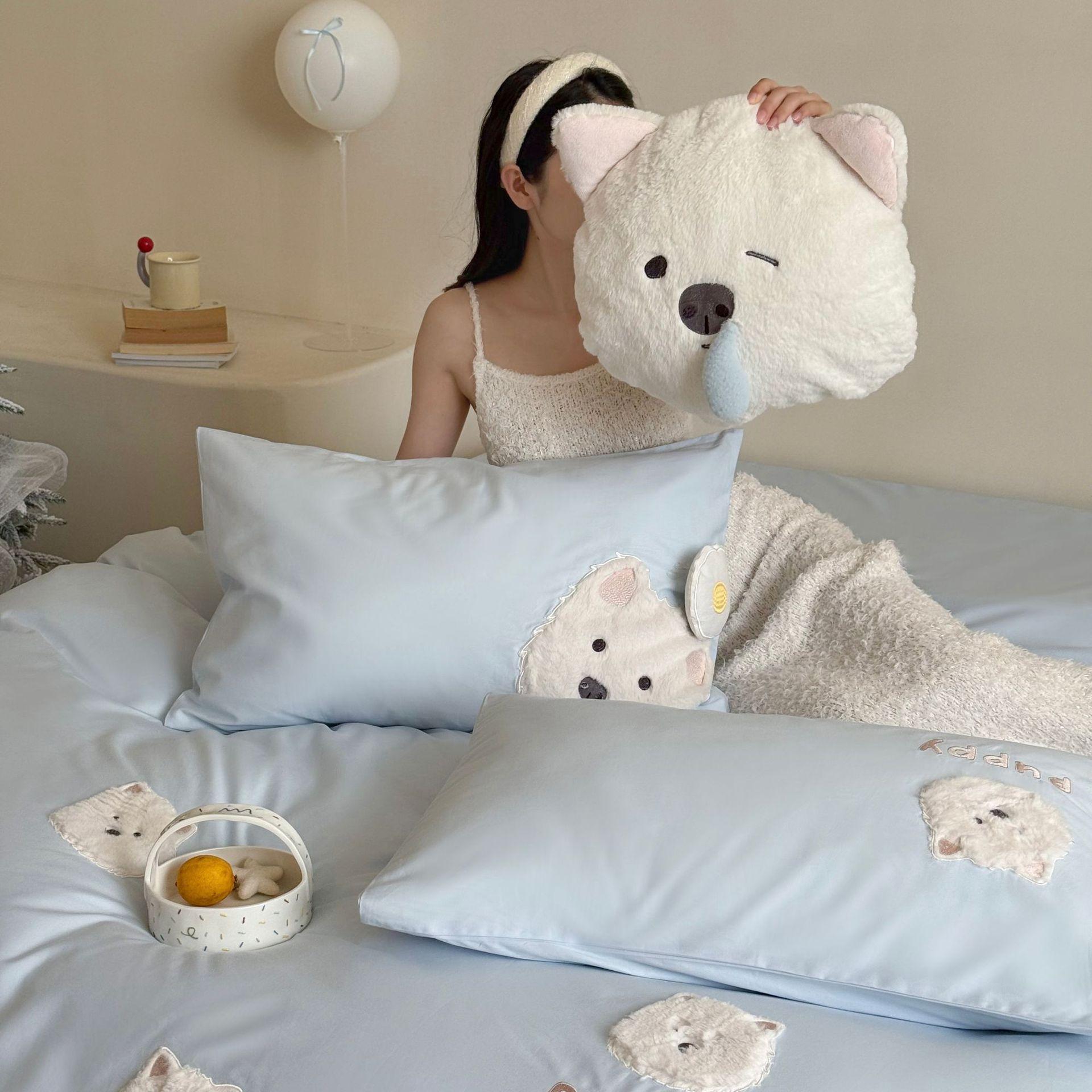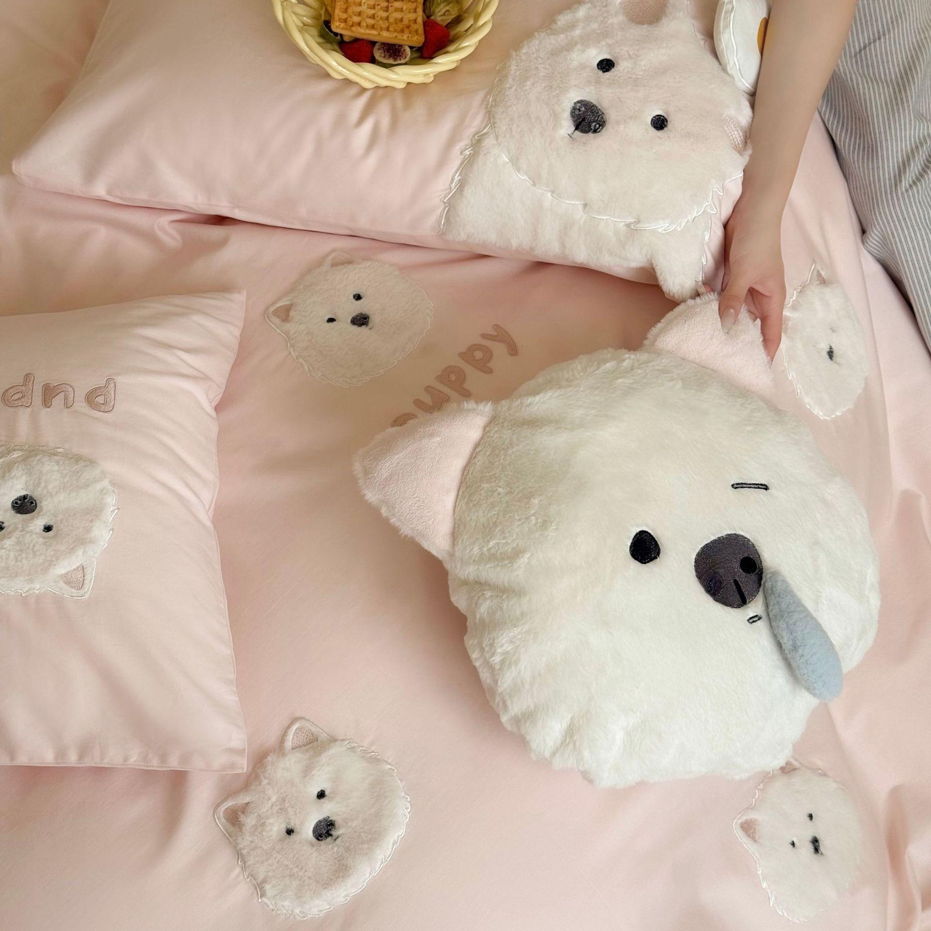 Conjunto de tres o cuatro piezas de algodón puro con felpa para otoño e invierno bordado de cachorro de dibujos animados funda nórdica de algodón puro sábana de cama ropa de cama gruesa para niños