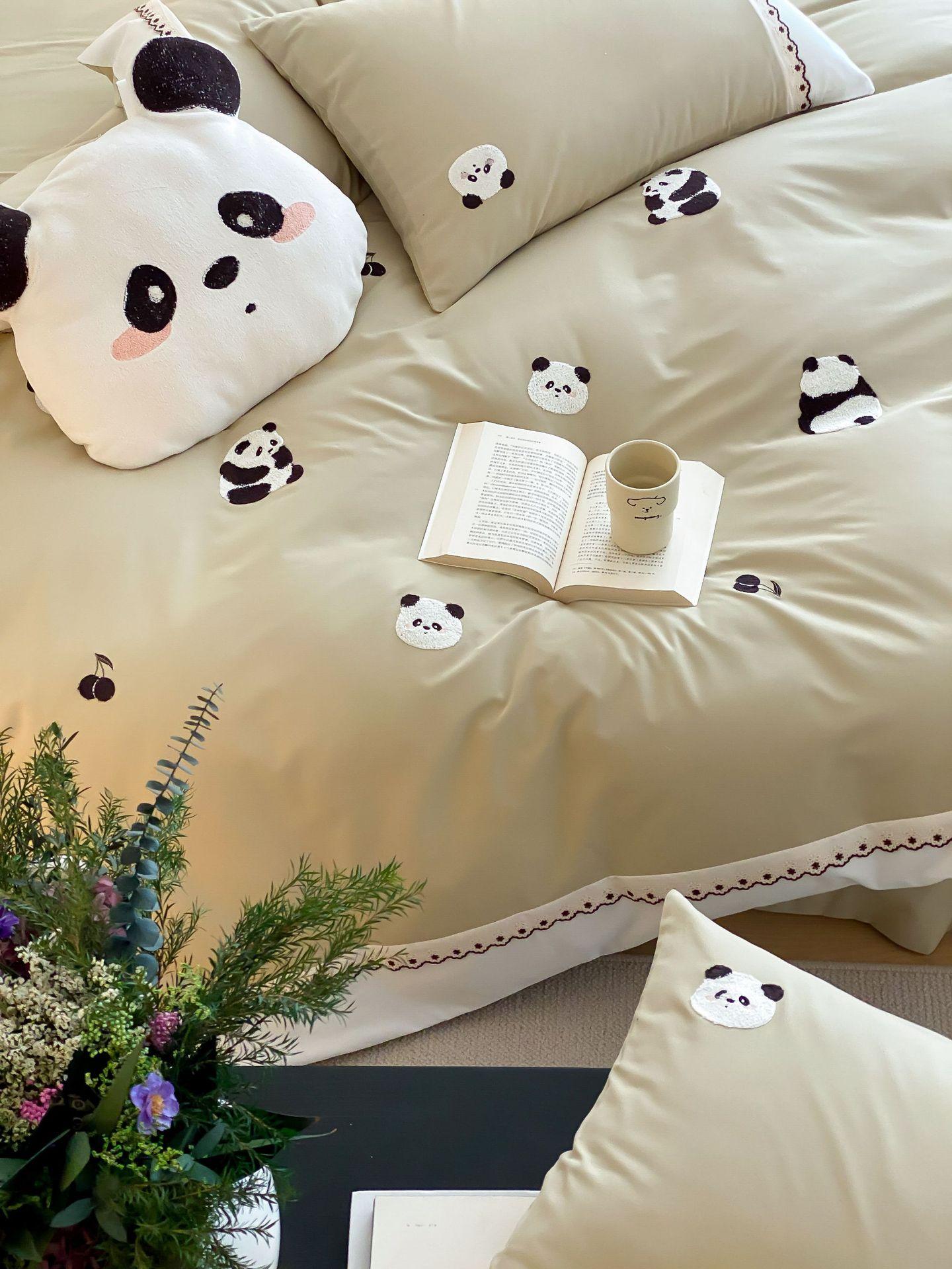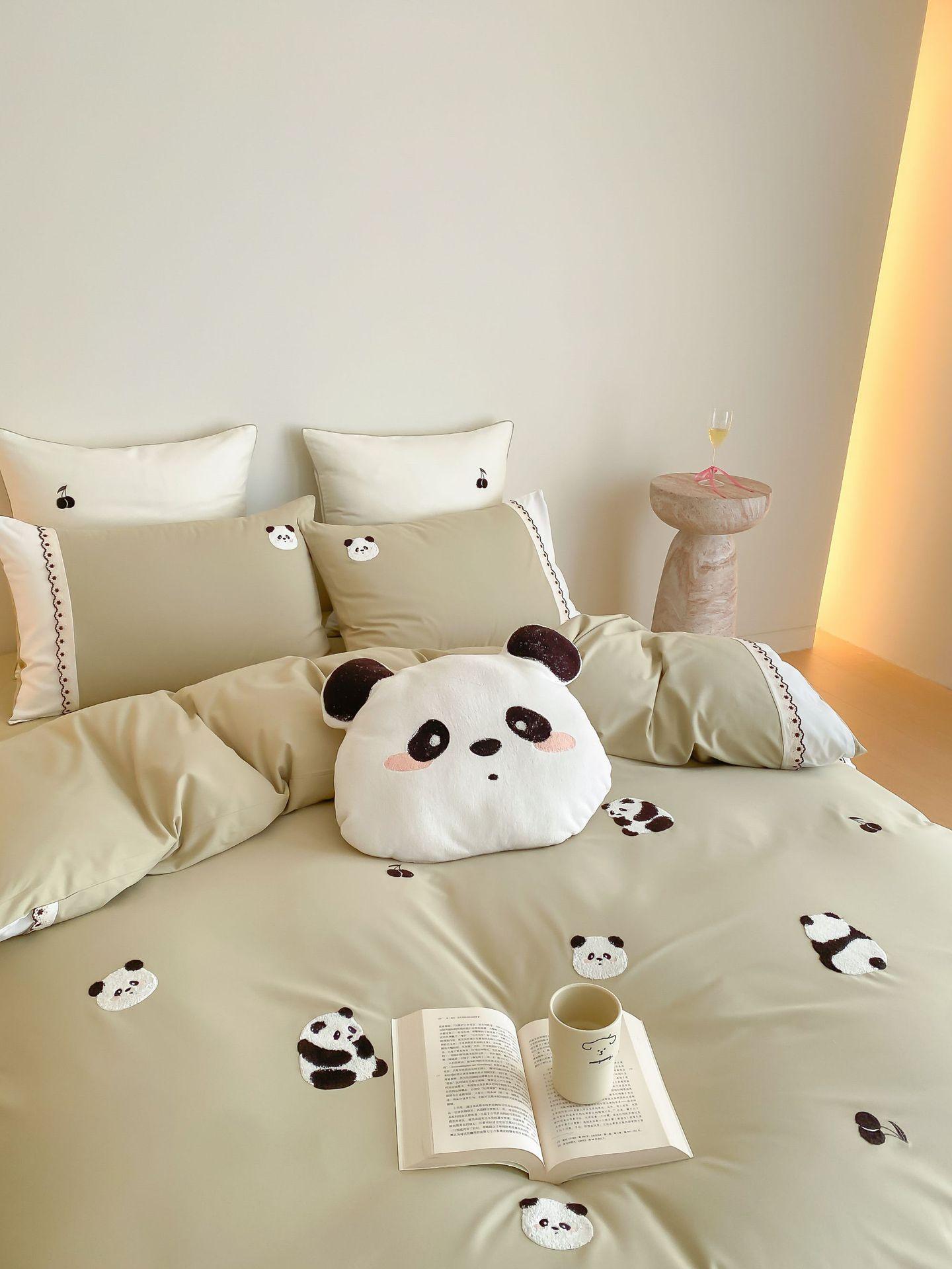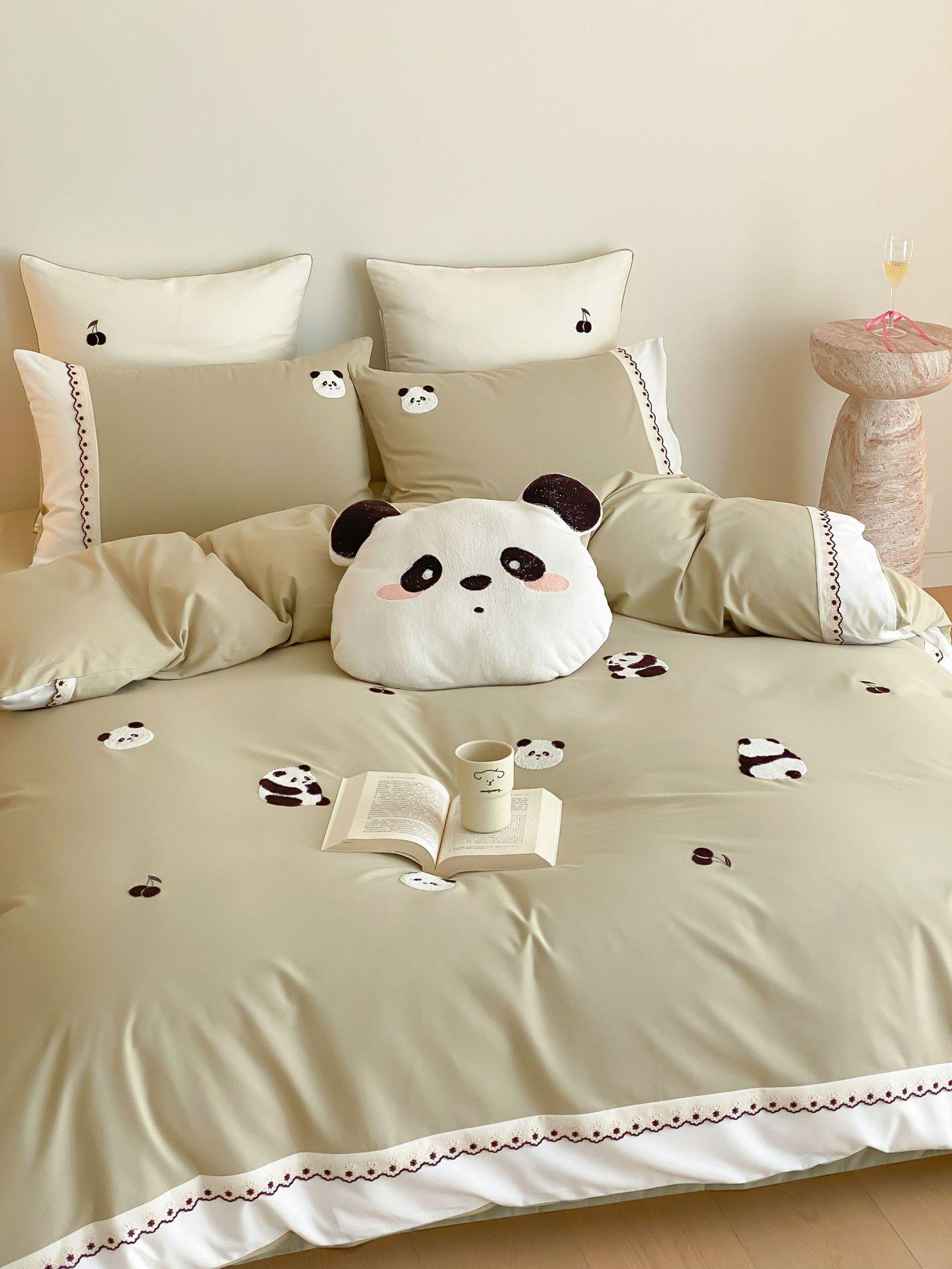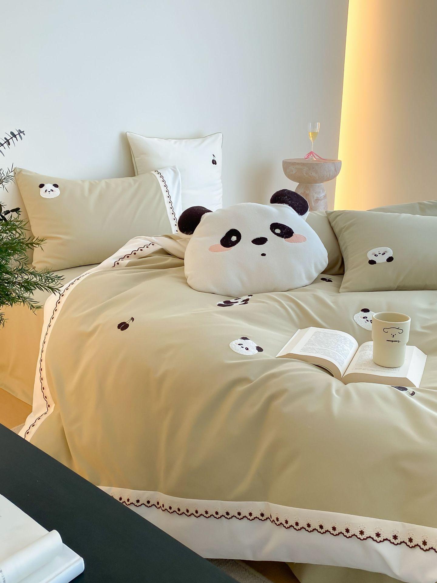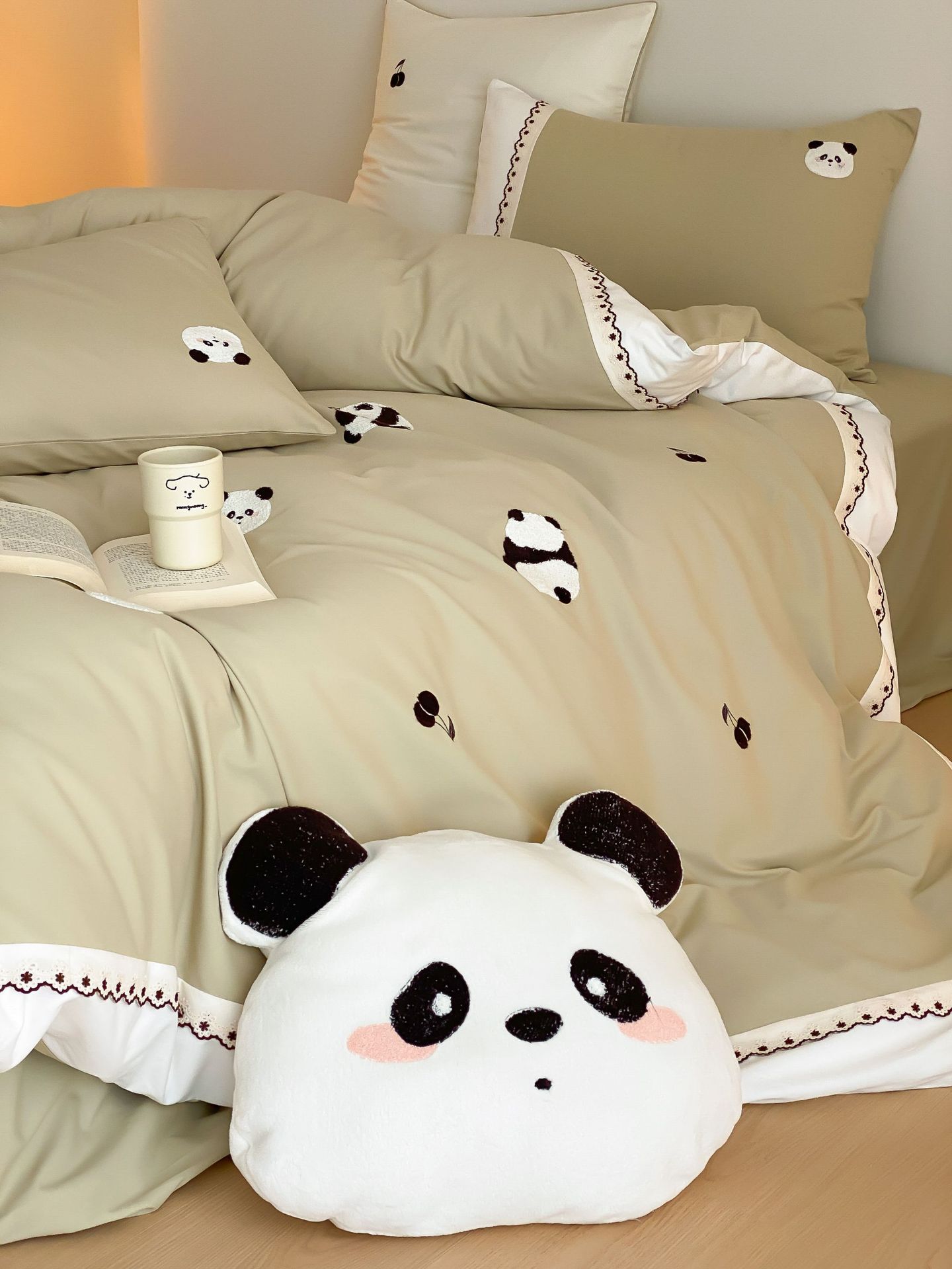 Estilo otoño e invierno lindo panda juego de tres o cuatro piezas de algodón peinado, encantador juego de cama de algodón puro de grapa larga engrosado para niños