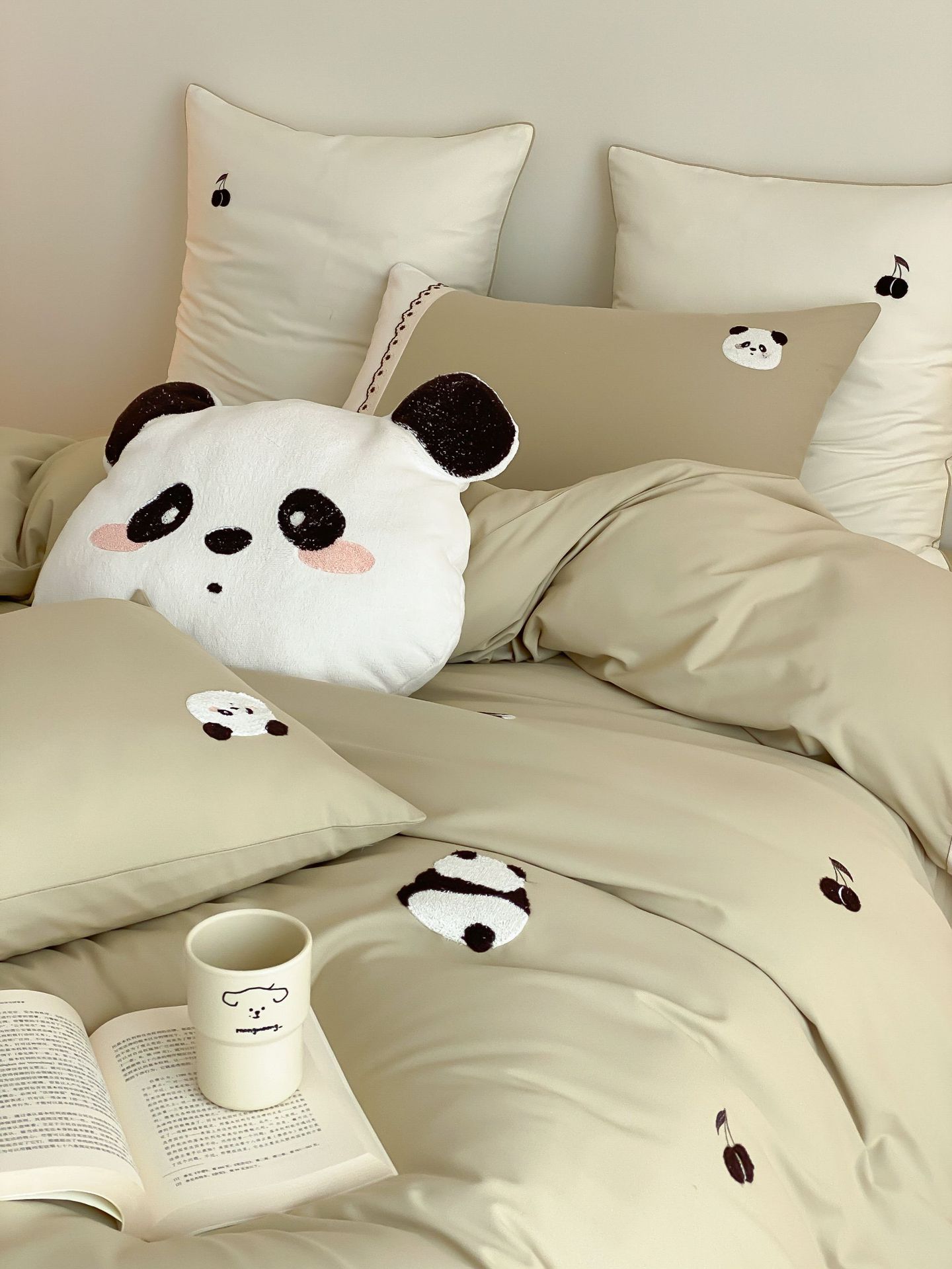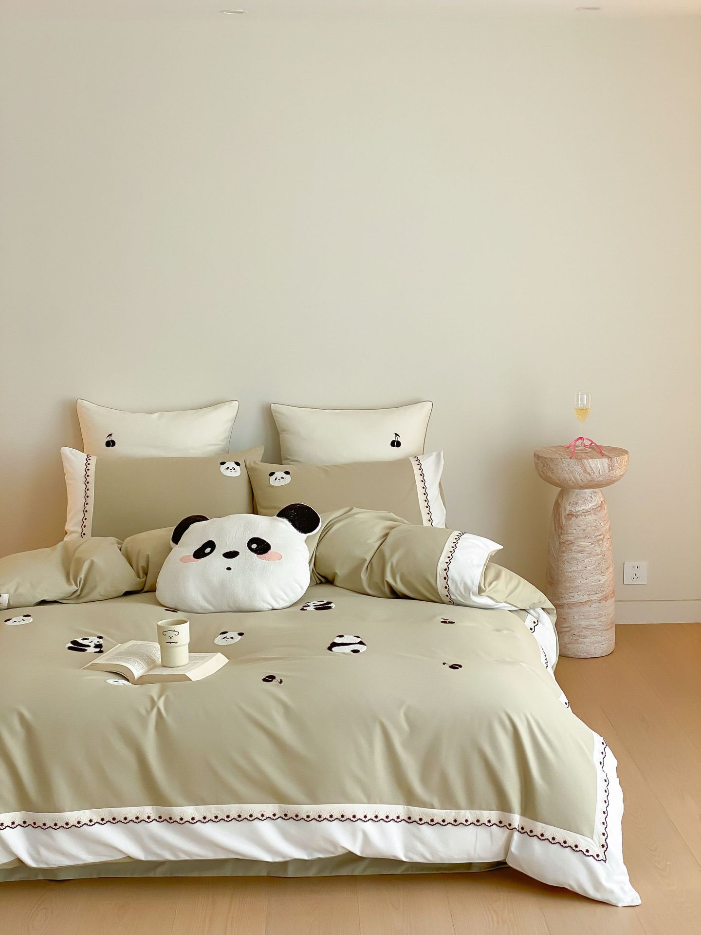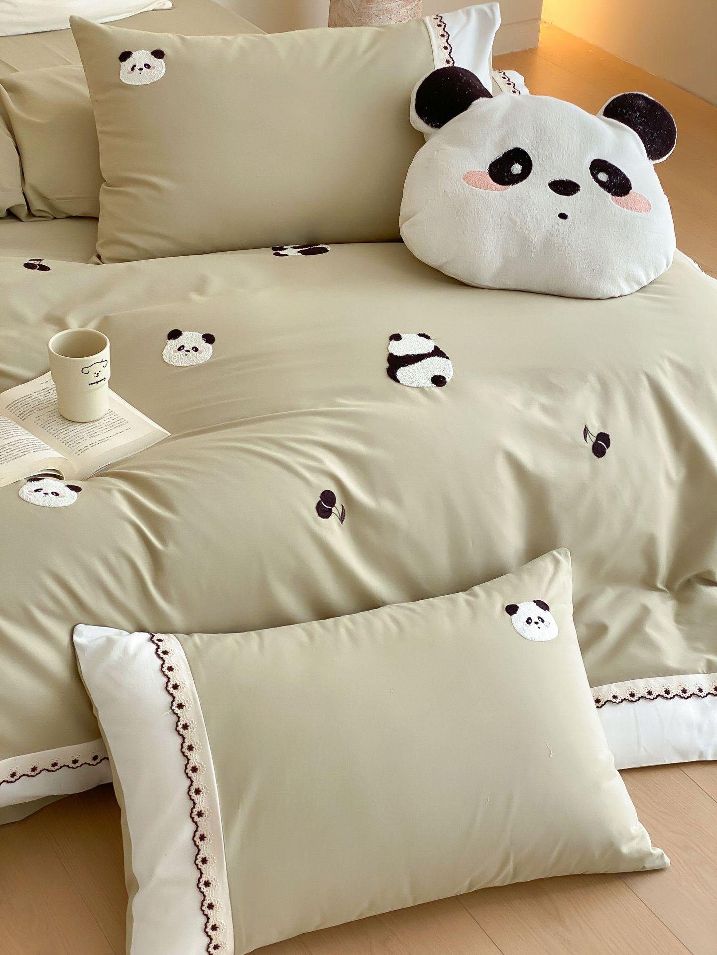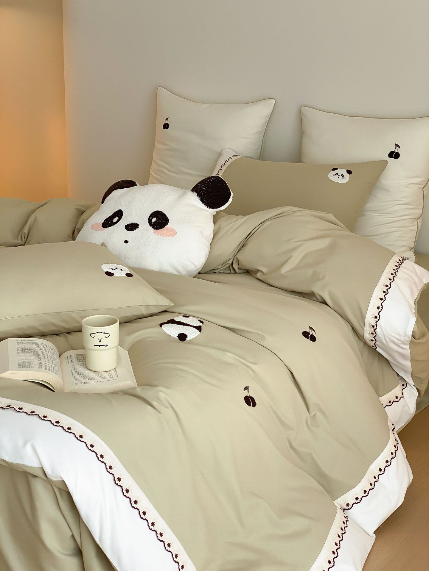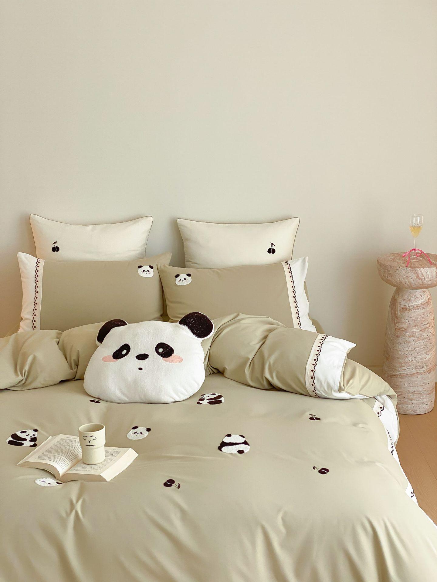 Estilo otoño e invierno lindo panda juego de tres o cuatro piezas de algodón peinado, encantador juego de cama de algodón puro de grapa larga engrosado para niños