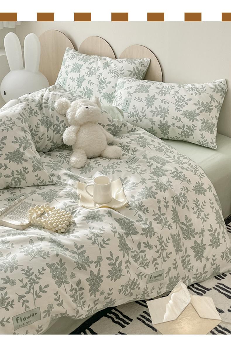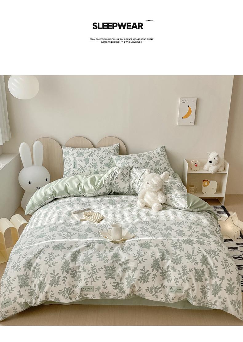 Juego de cama de cuatro piezas 100% algodón Sábana de cama de algodón Funda nórdica Cubierta Edredón de algodón Cubierta Dormitorio de estudiantes Juego de tres piezas Sábana ajustable 4