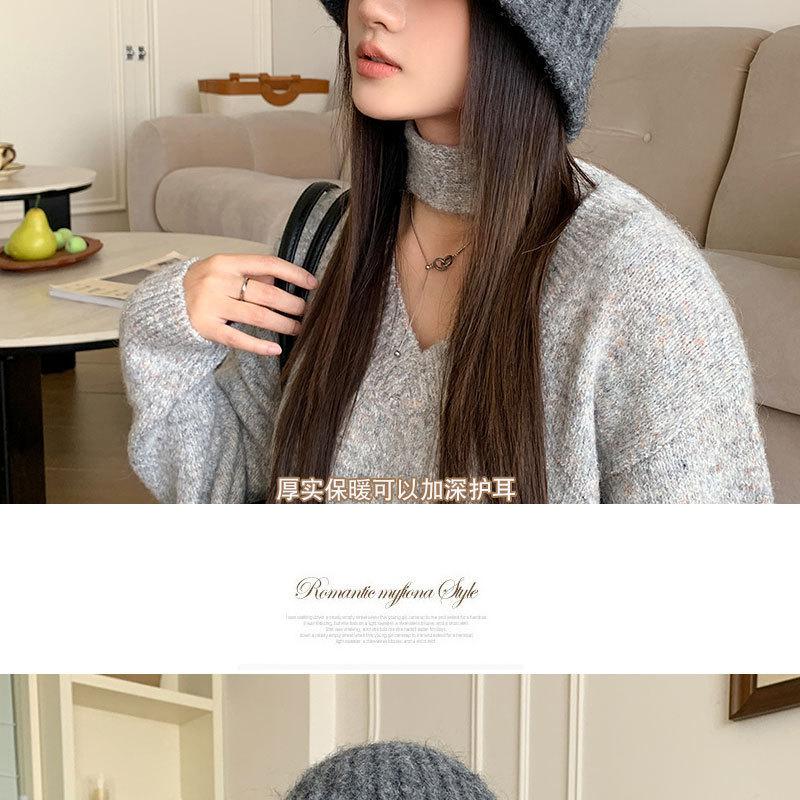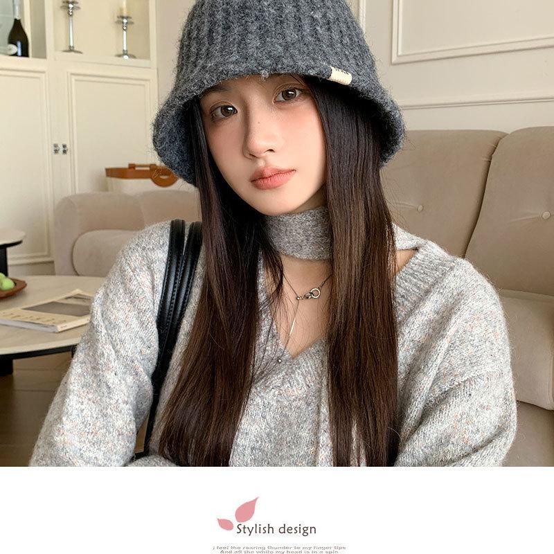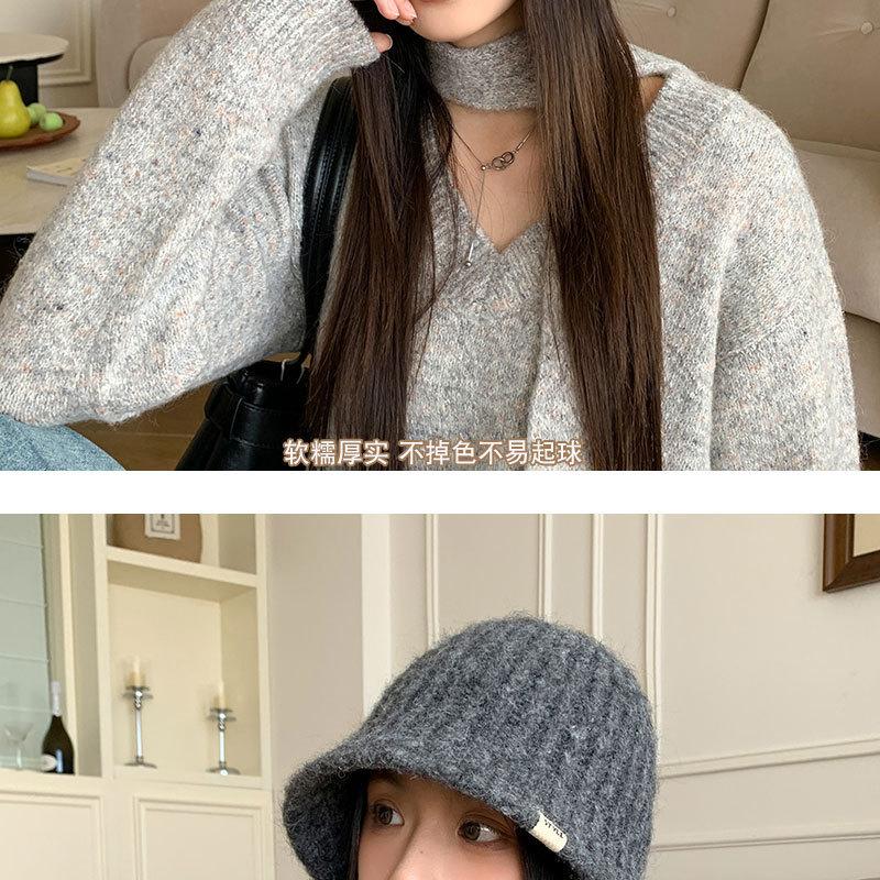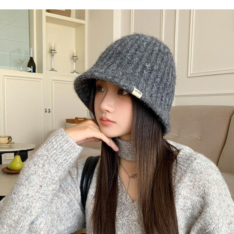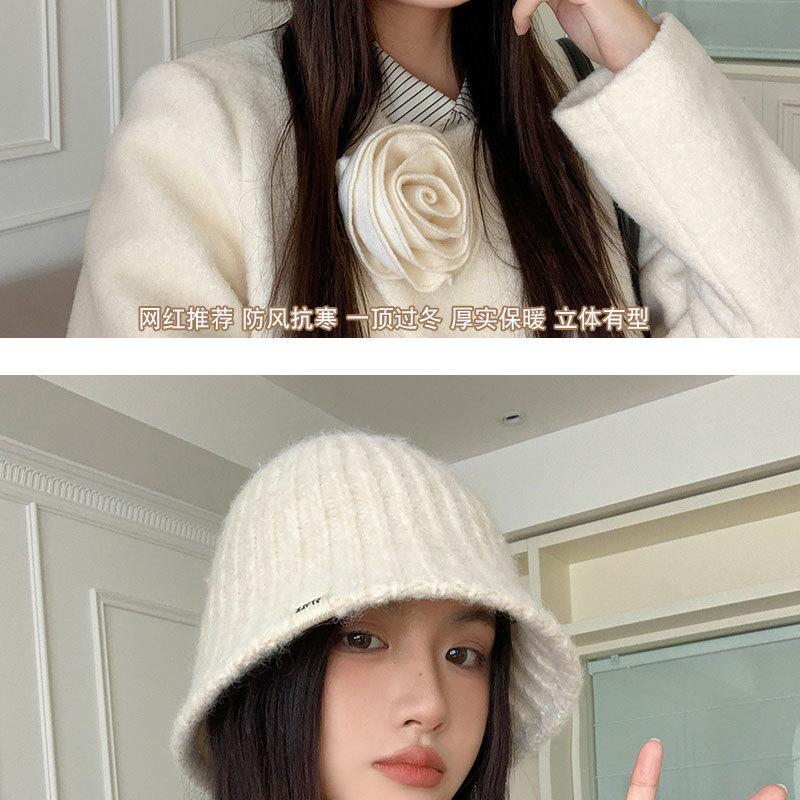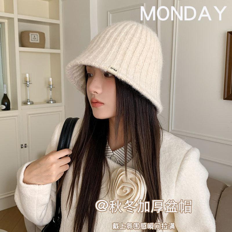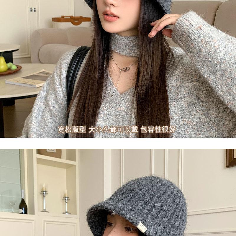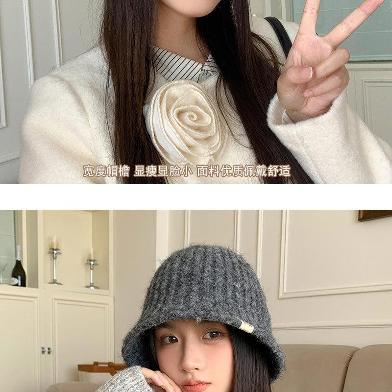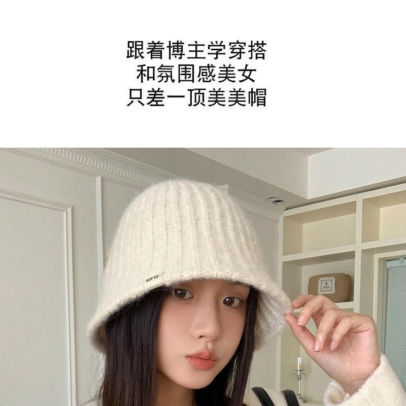 Corea Otoño e Invierno Nuevo Sombrero de Cubo Versátil Estilo Coreano Color Sólido Simple Cálido Sombrero de Pescador Sombrero de Punto de Alta Gama para Mujer
