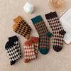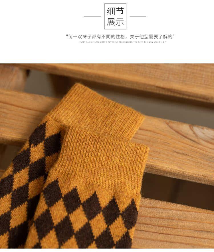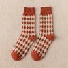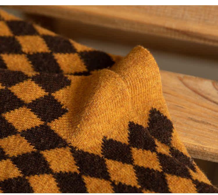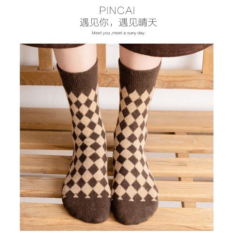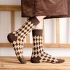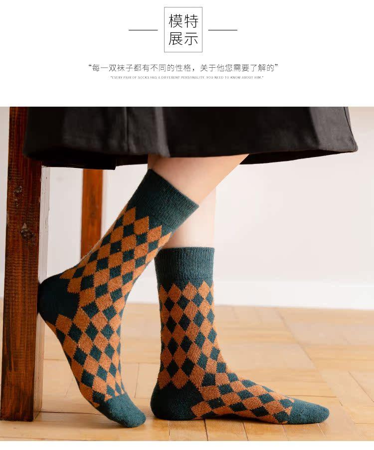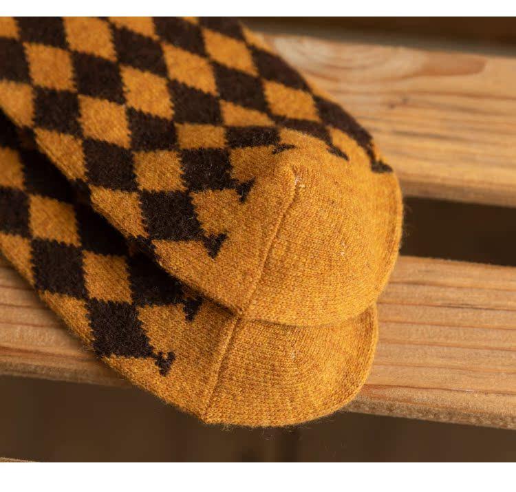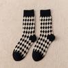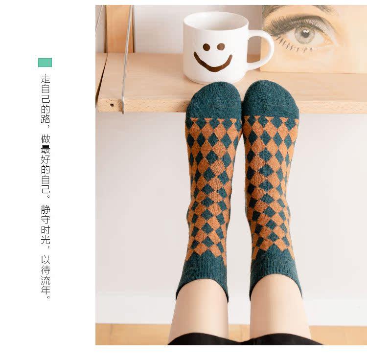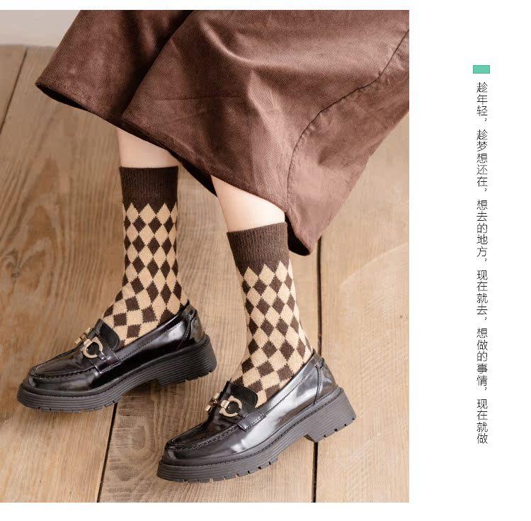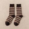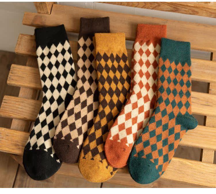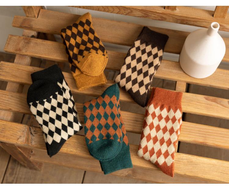 Calcetines de Lana para Mujer Estilo Retro Británico Universitario Calcetines de Media Caña Otoño Invierno Cálidos Gruesos Patrón de Diamantes Calcetines Hasta la Rodilla Tendencia ins