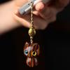 Llavero personalizado con forma de gatito de madera arcoíris, creativo y con forma de bolso, para coche o teléfono móvil.
