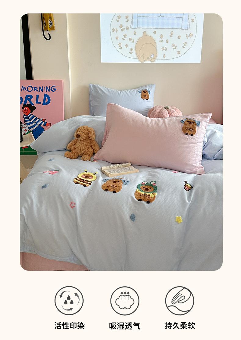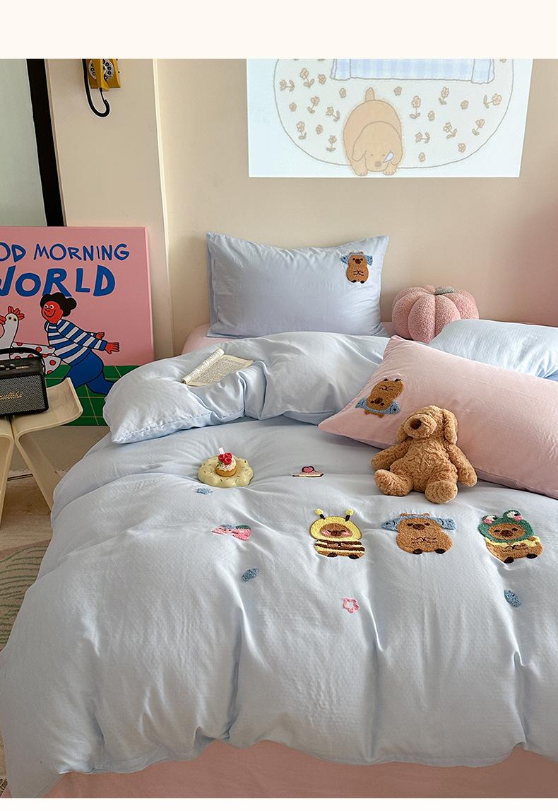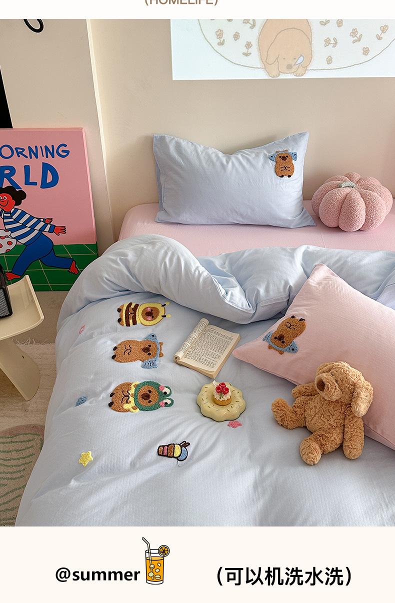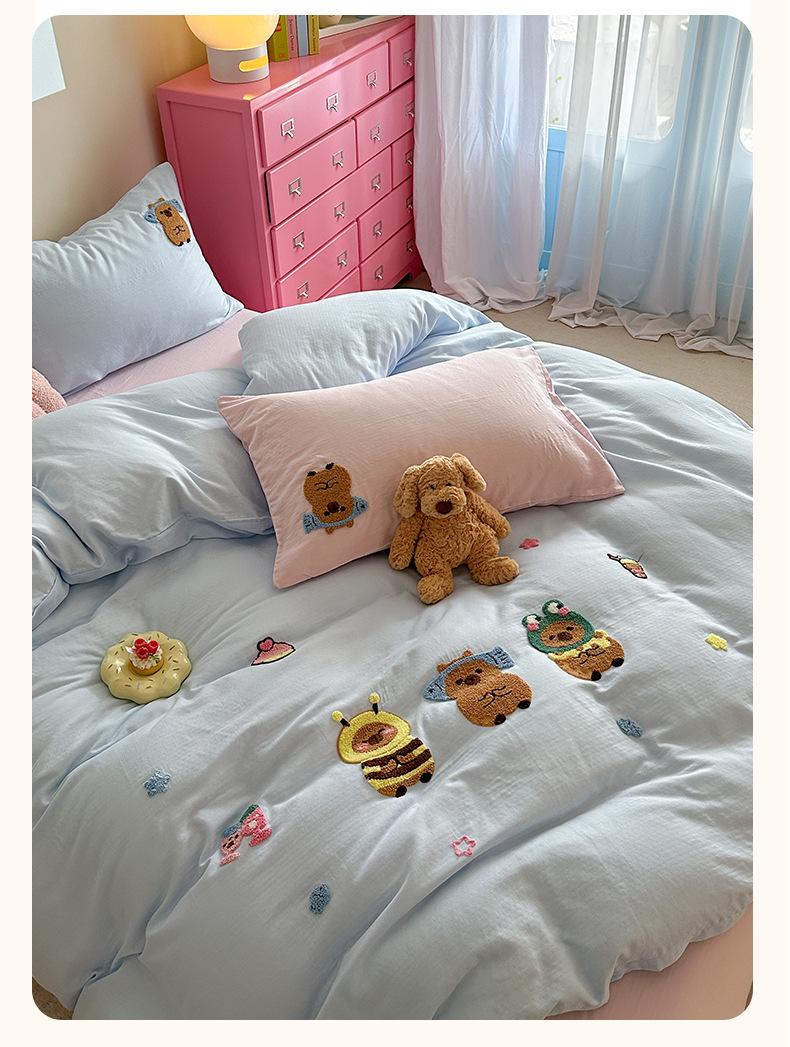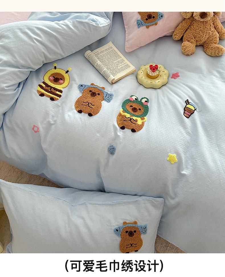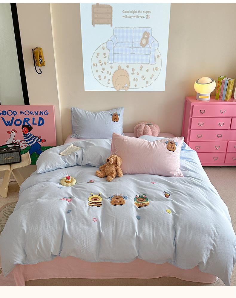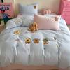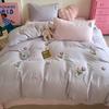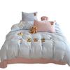 | Juego de cama de cuatro piezas jacquard teñido en hilo de algodón puro grado A para madre y bebé, 60 hilos, estilo japonés, funda nórdica de algodón lavado, estilo de cuatro estaciones de algodón puro |