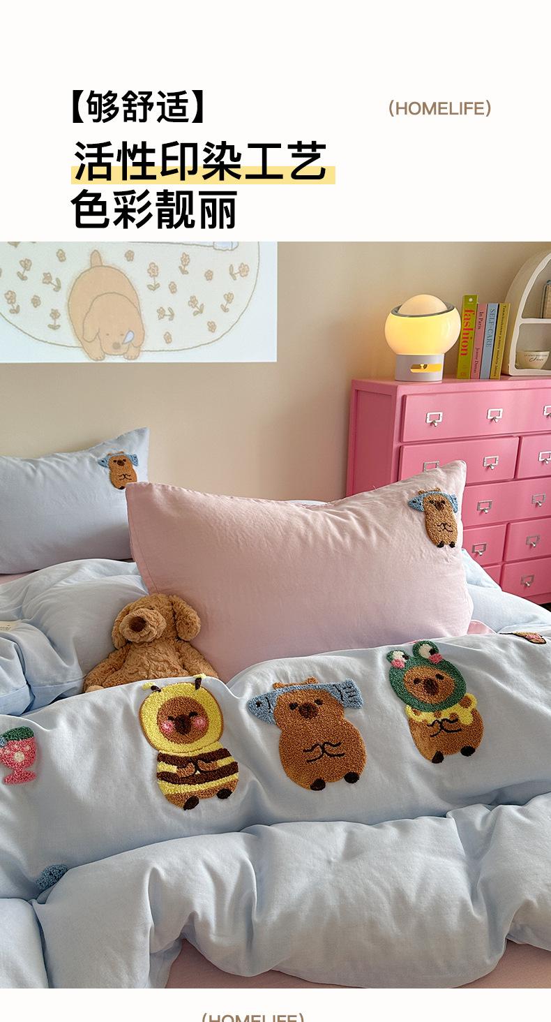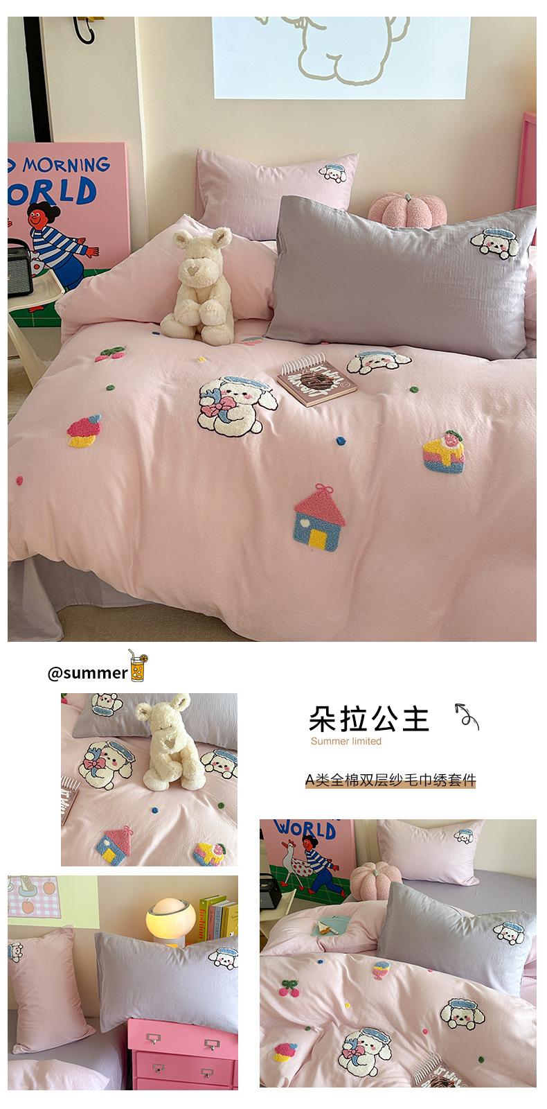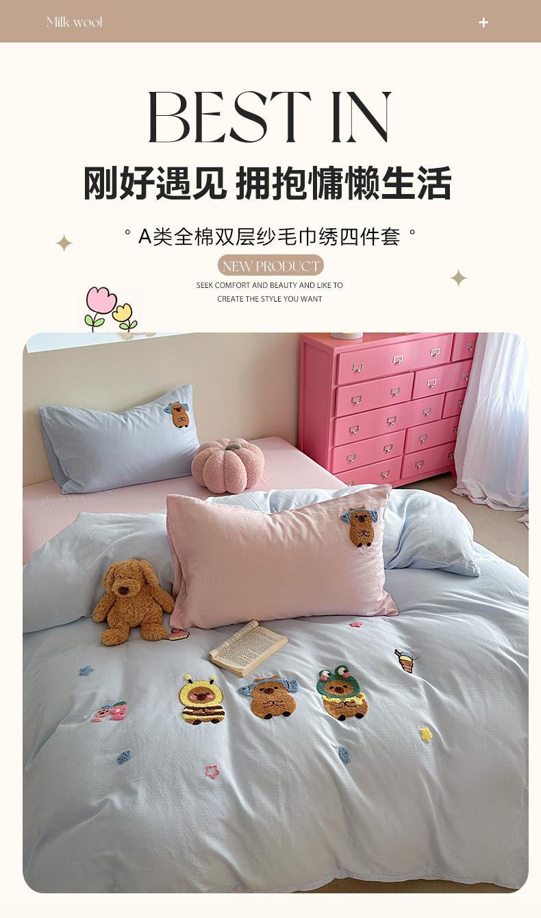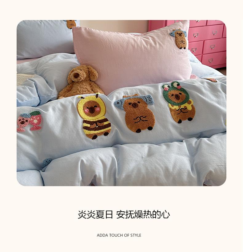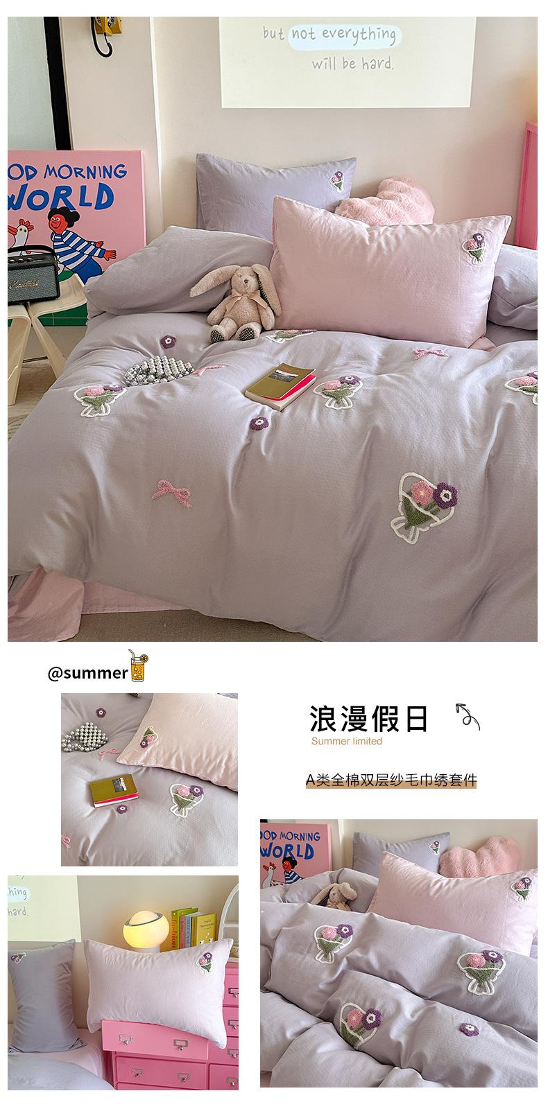 | Juego de cama de cuatro piezas jacquard teñido en hilo de algodón puro grado A para madre y bebé, 60 hilos, estilo japonés, funda nórdica de algodón lavado, estilo de cuatro estaciones de algodón puro |