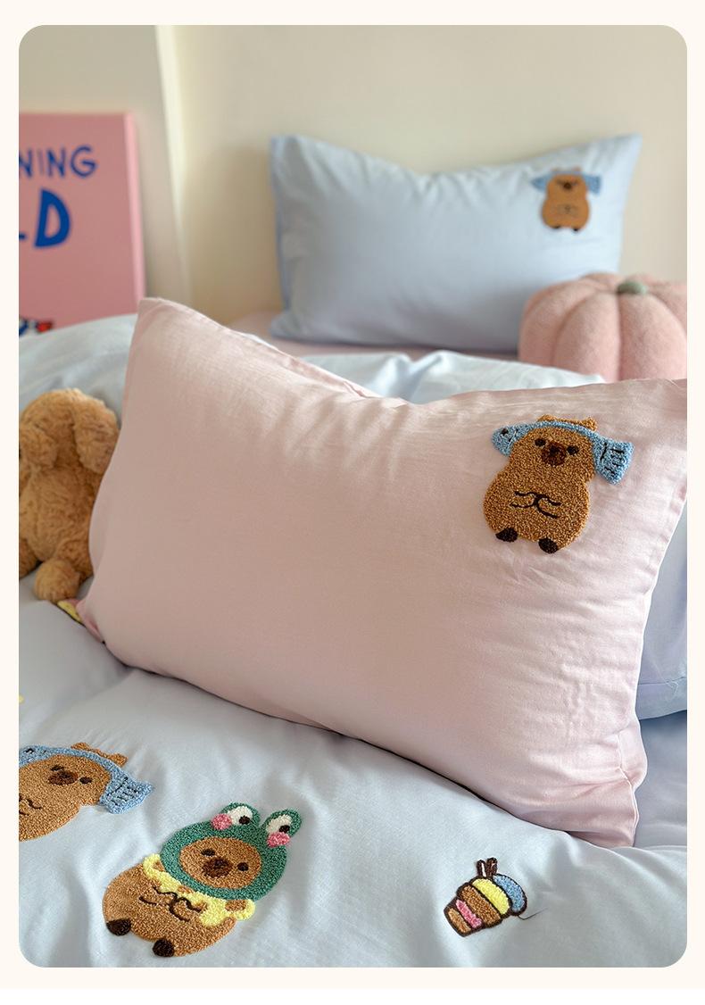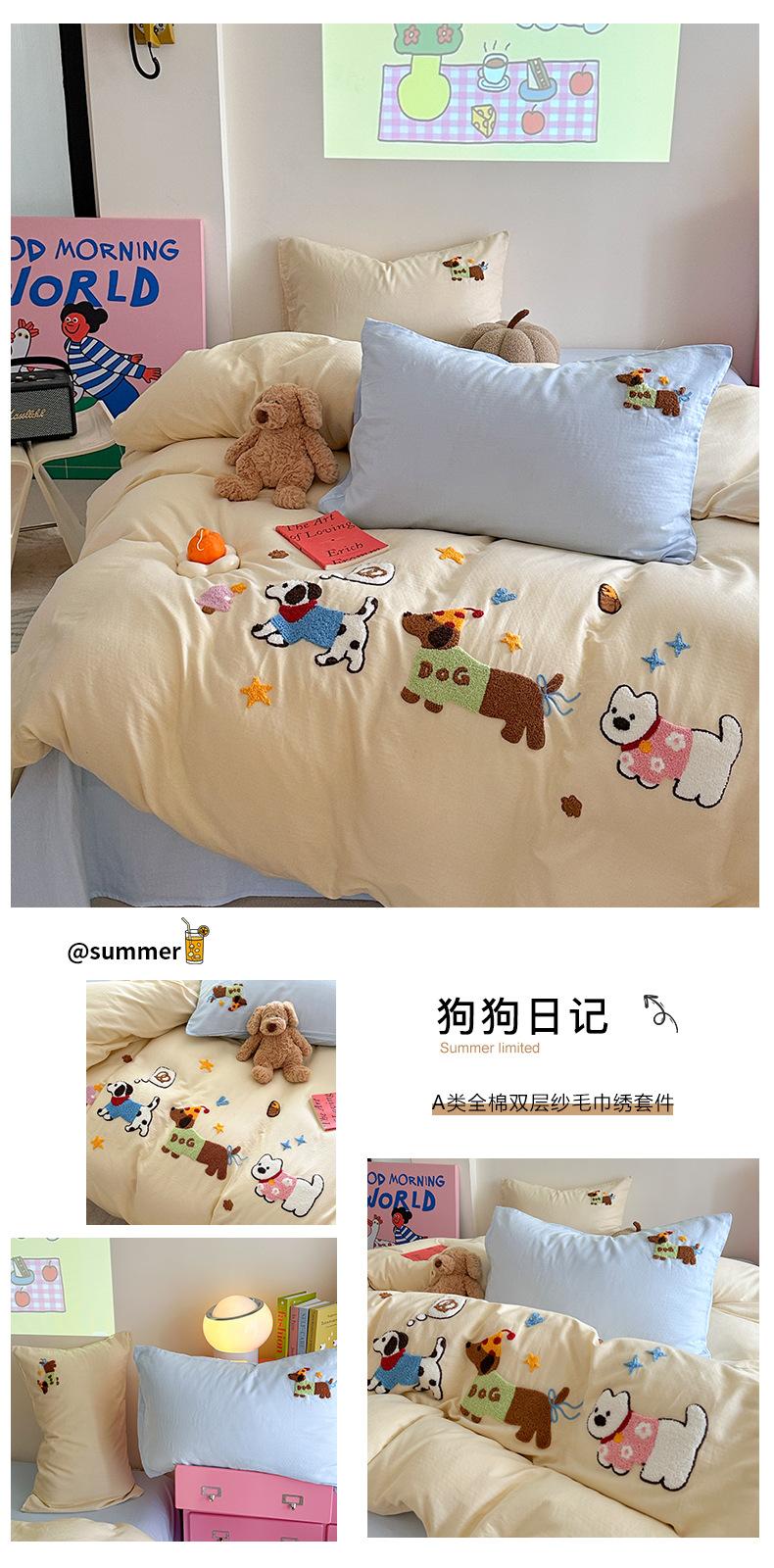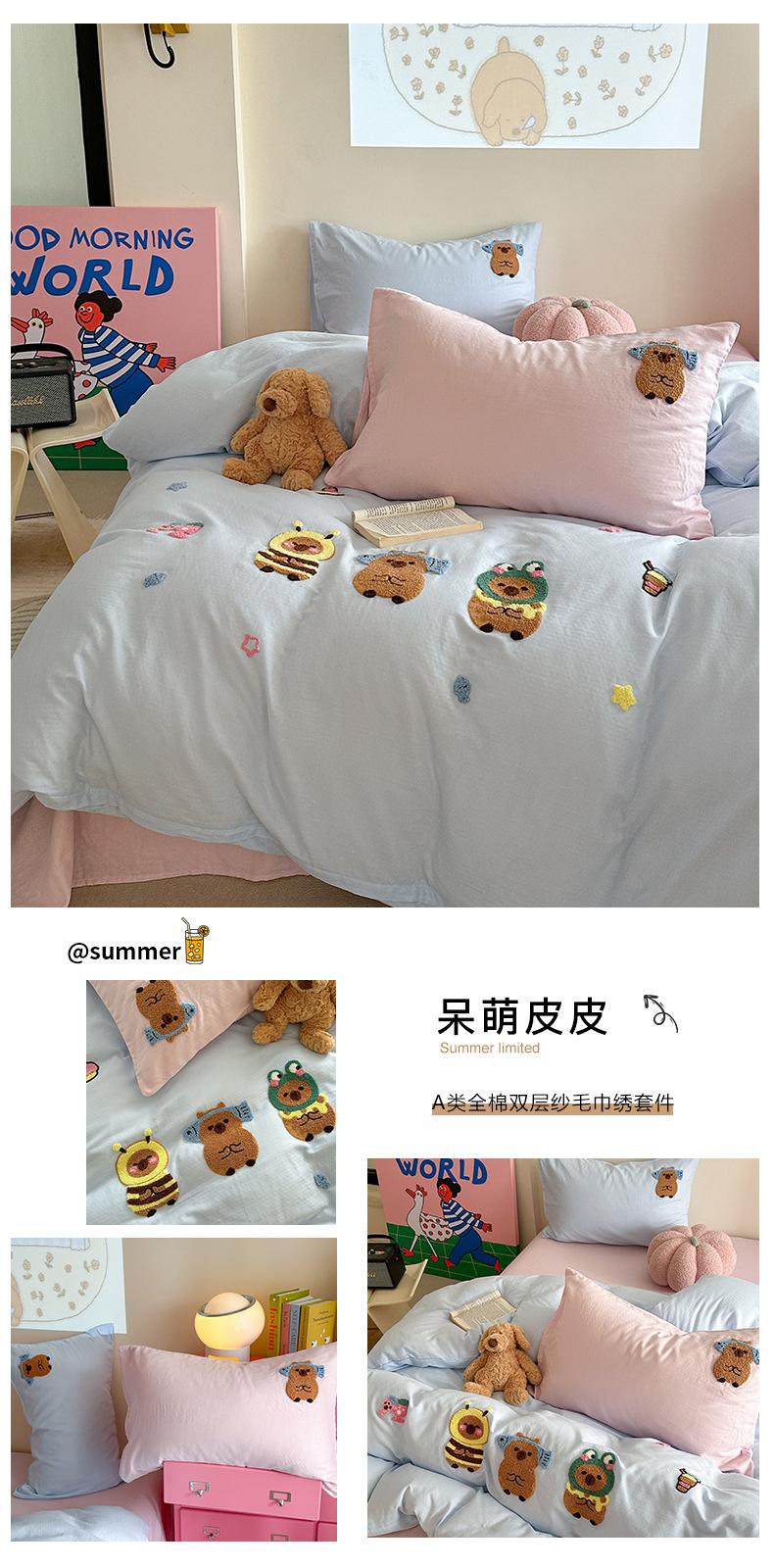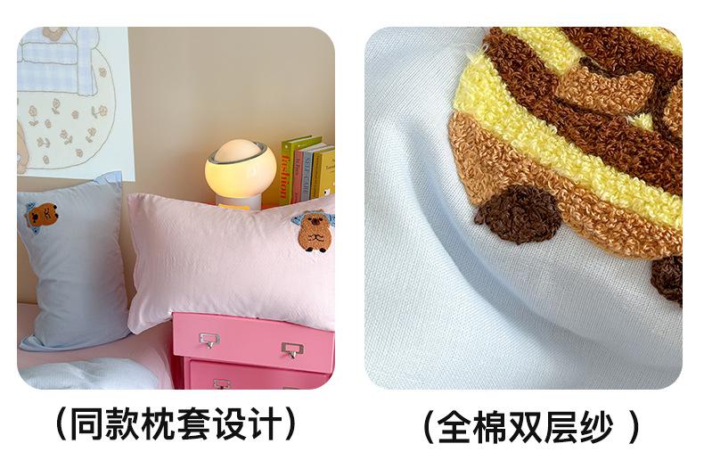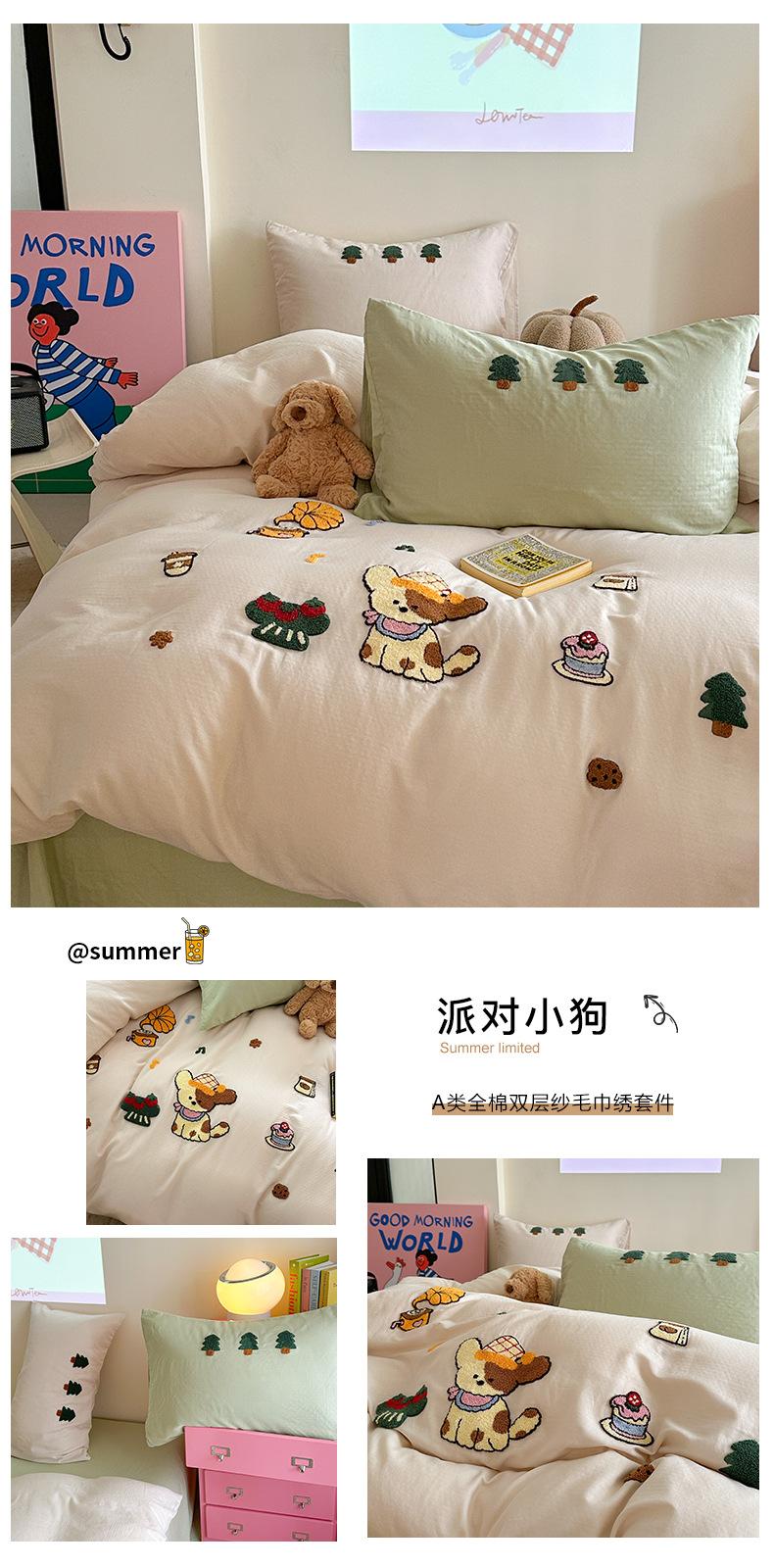 | Juego de cama de cuatro piezas jacquard teñido en hilo de algodón puro grado A para madre y bebé, 60 hilos, estilo japonés, funda nórdica de algodón lavado, estilo de cuatro estaciones de algodón puro |
