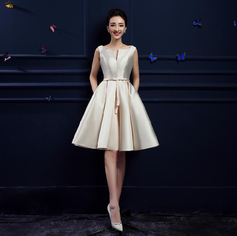 Vestido de noche de banquete nuevo Vestido de brindis vestido de dama de honor vestido corto anfitriona femenina moda satén sarga vestido de graduación