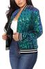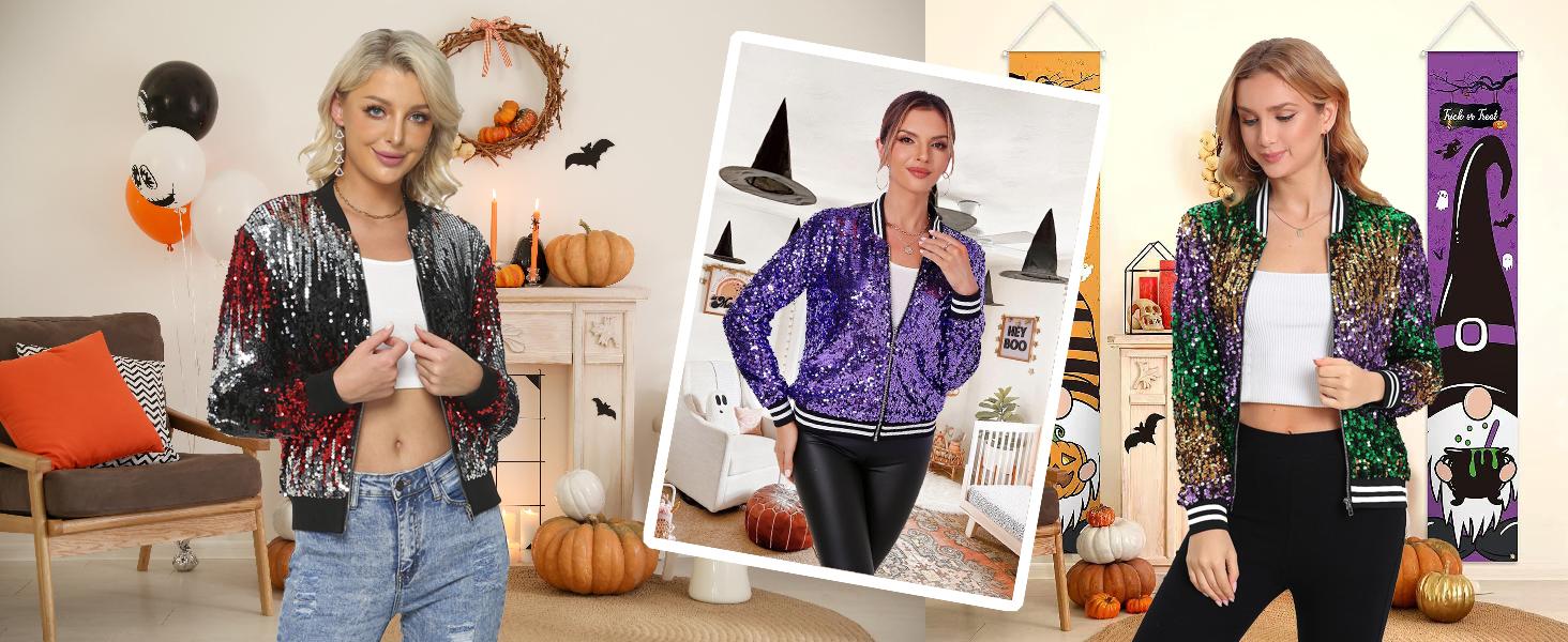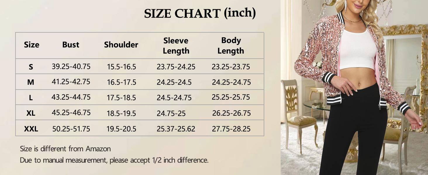 Material:Tela:100% poliéster;Forro: 100% poliéster Características: Diseño deslumbrante de lentejuelas, cierre frontal abierto con cremallera, cuello, puños y dobladillo acanalados especiales. Tejidos coloridos y de alta calidad, forro suave y cómodo. Usar cualquier color en cualquier momento te hará ser llamativo. Ocasión:El estilo casual es perfecto para el uso diario, fiestas, Halloween, Navidad, salir y otras ocasiones. Sugerencia de lavado:Lavar a mano con agua a baja temperatura, usando detergente suave, no usar lejía. Atención:Por favor, verifique la información de tallas bajo la Descripción del Producto antes de ordenar.