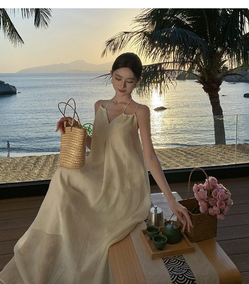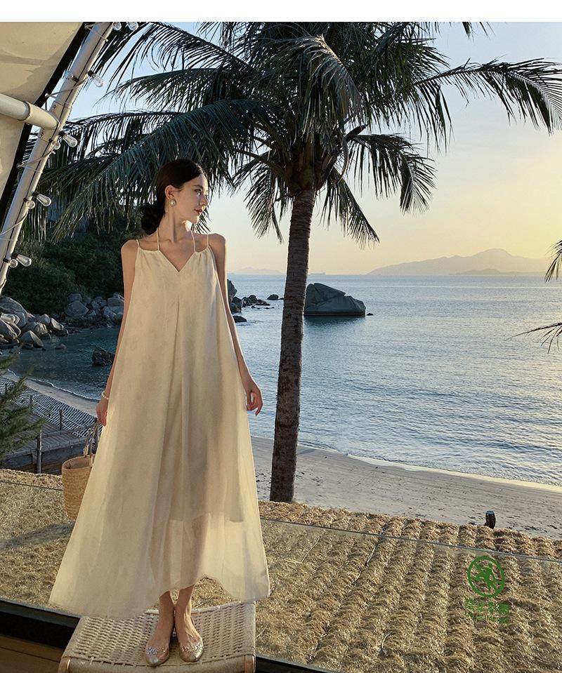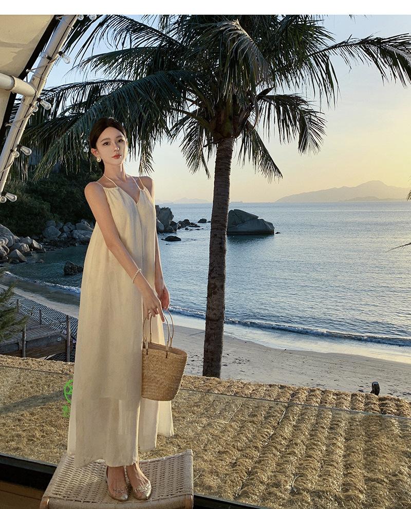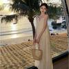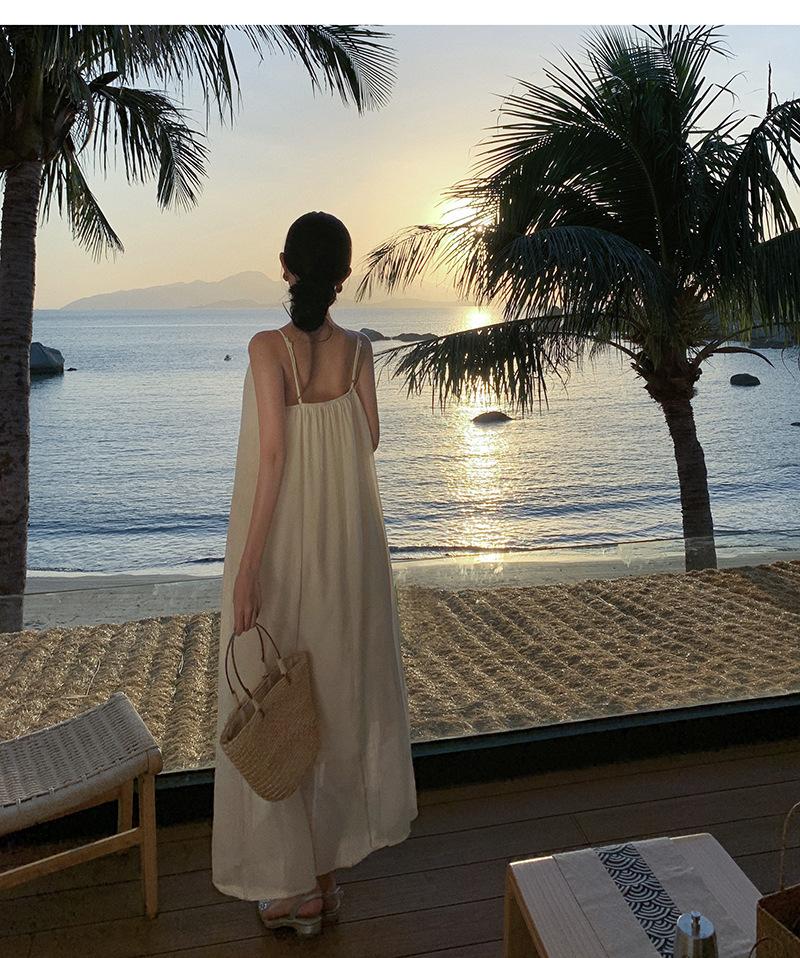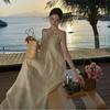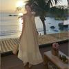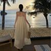 Vestido de vacaciones de estilo francés con tirantes blancos para mujer, verano, estilo suave, dulce, temperamento de primer amor, sin mangas, vestido largo