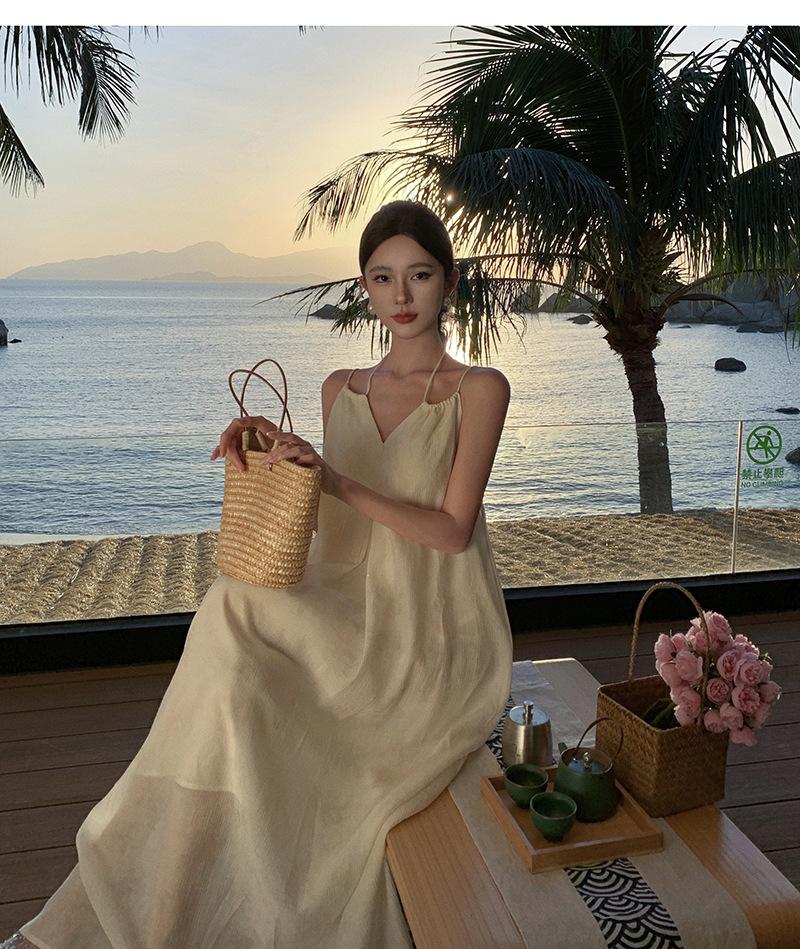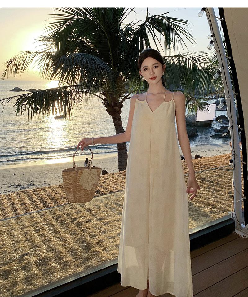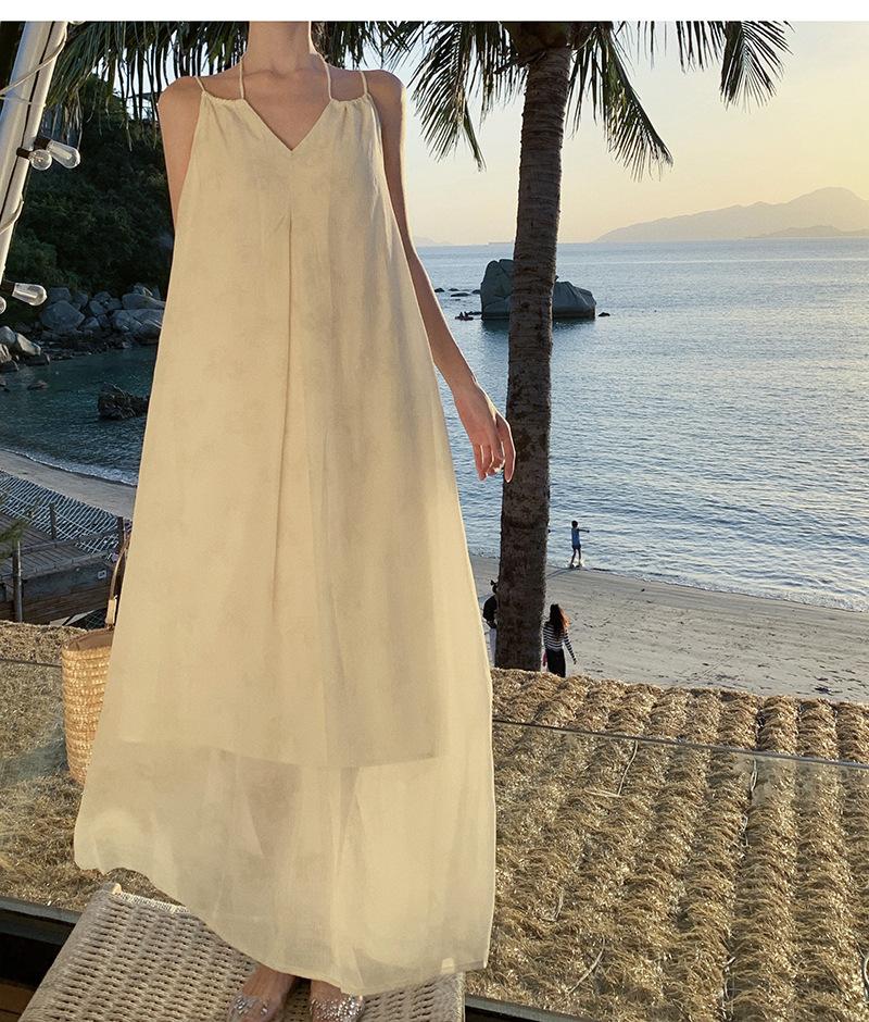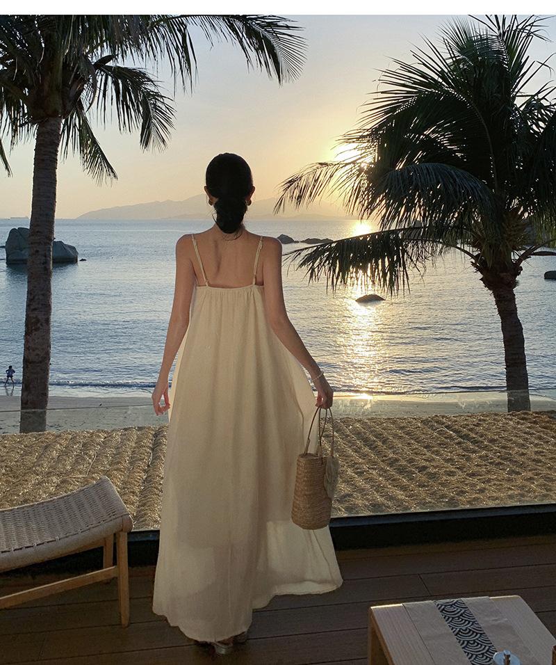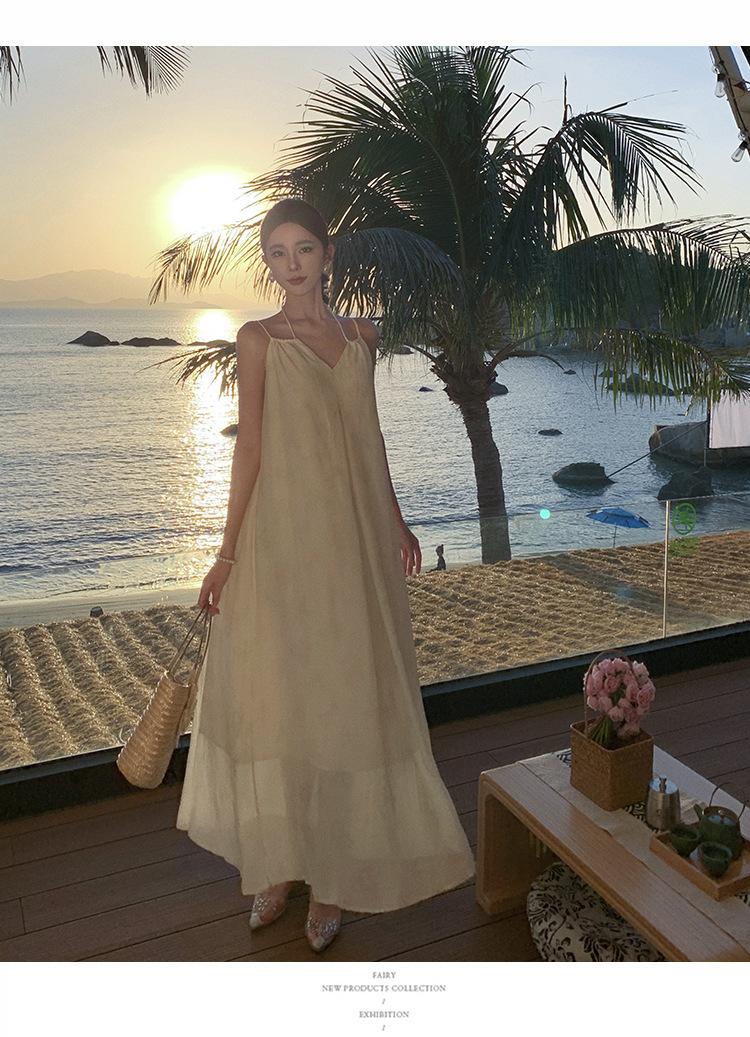 Vestido de vacaciones de estilo francés con tirantes blancos para mujer, verano, estilo suave, dulce, temperamento de primer amor, sin mangas, vestido largo