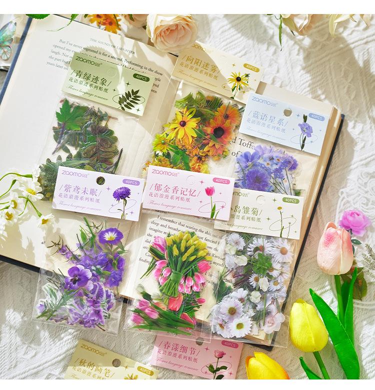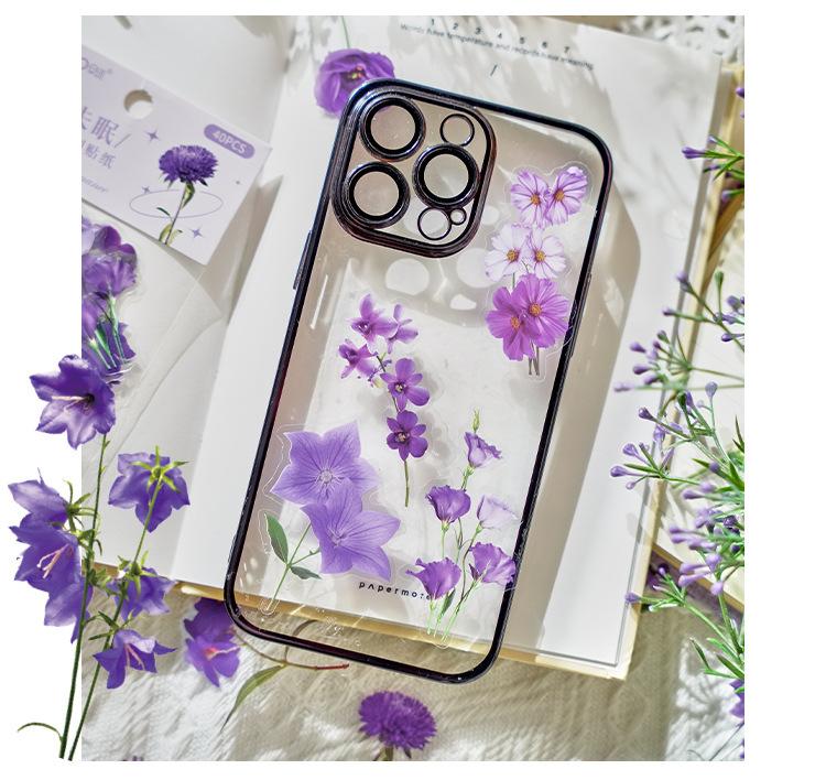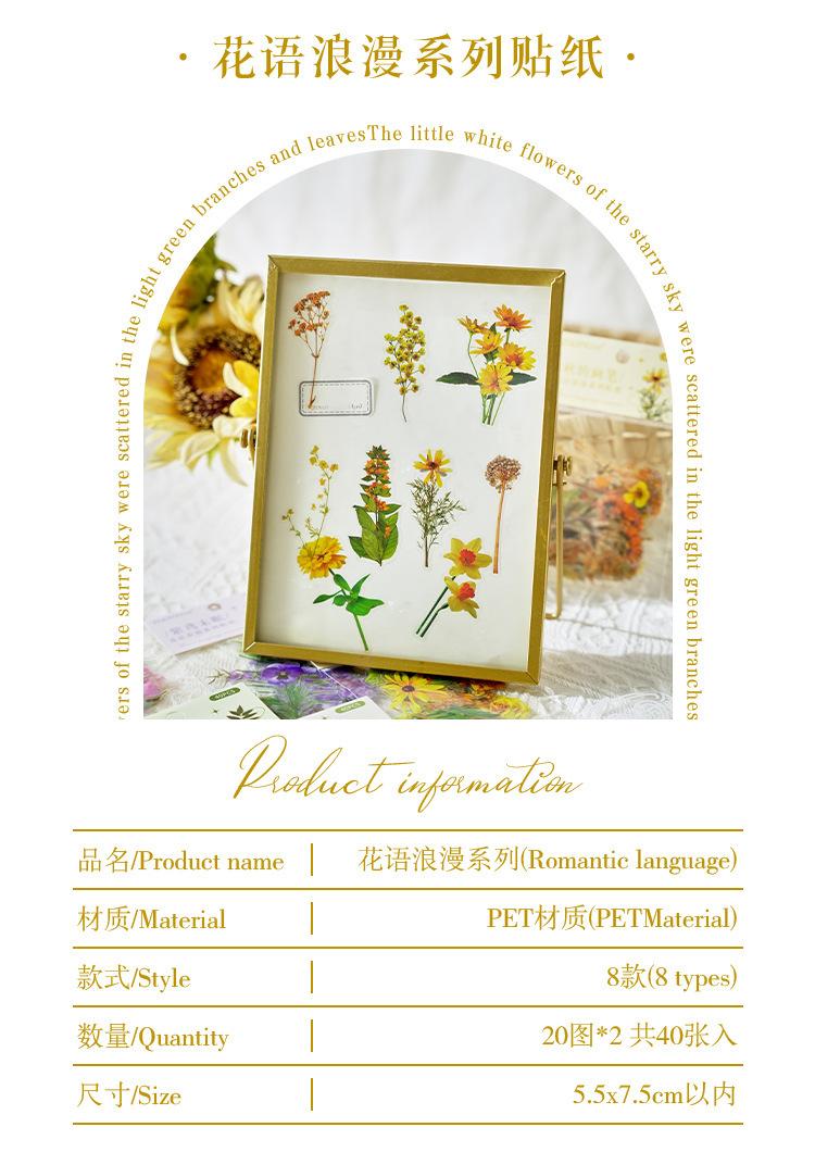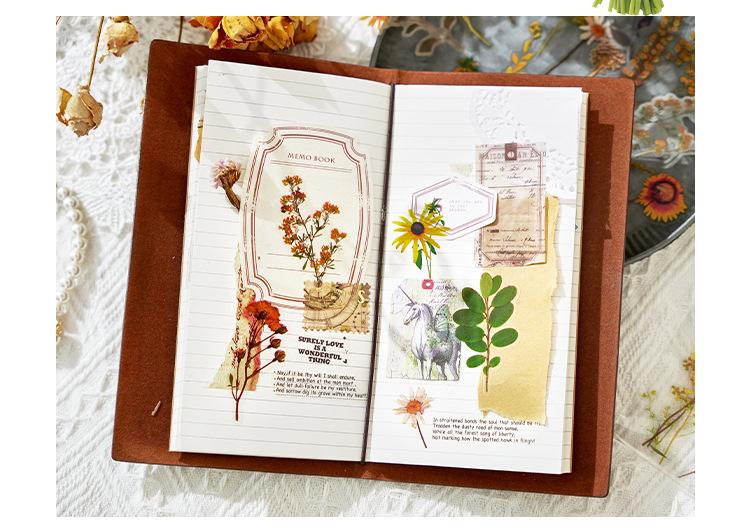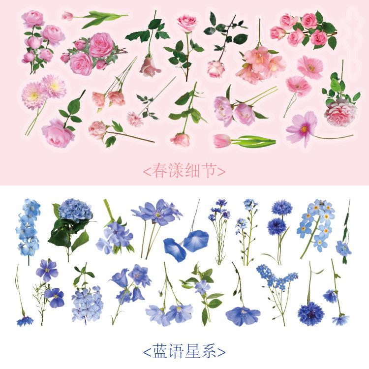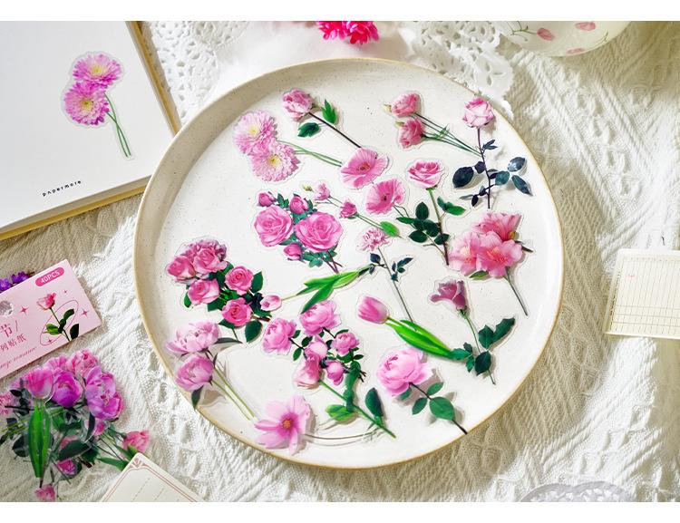 Paquete de Stickers PET Serie Romántica Transparente Impermeable Creativo Floral Plantas Cuenta de Mano DIY Material de Decoración Stickers