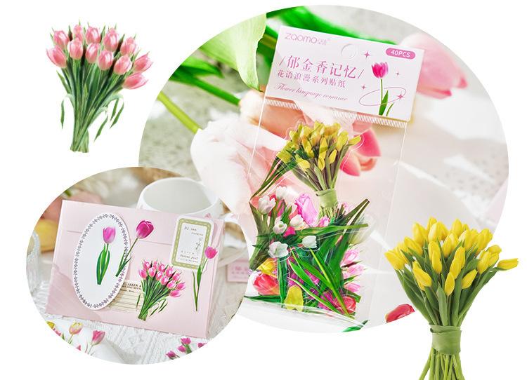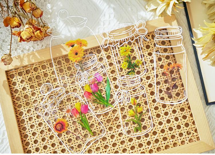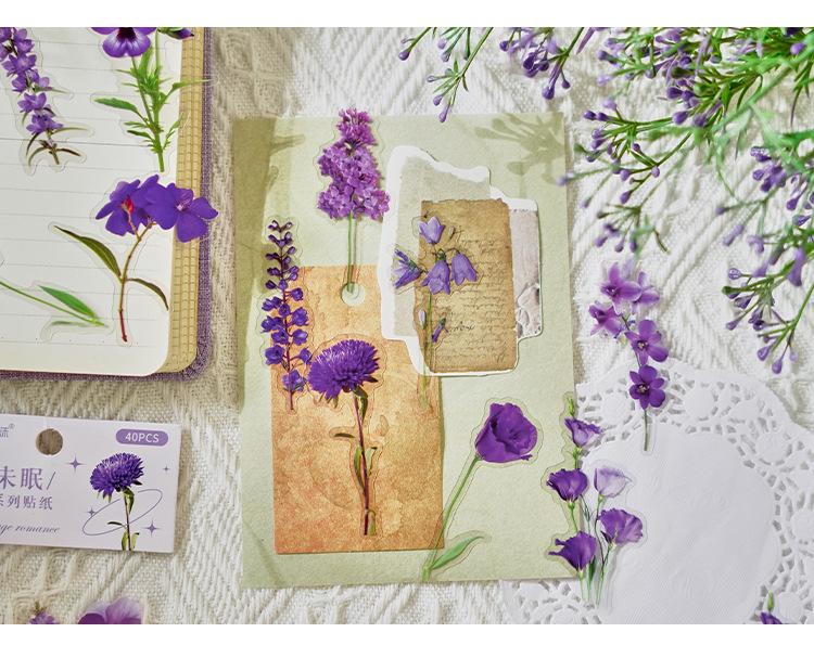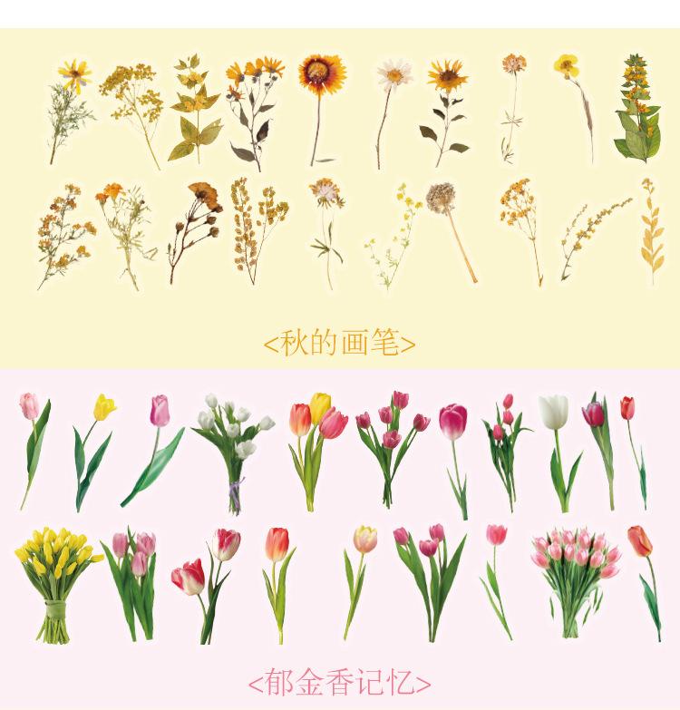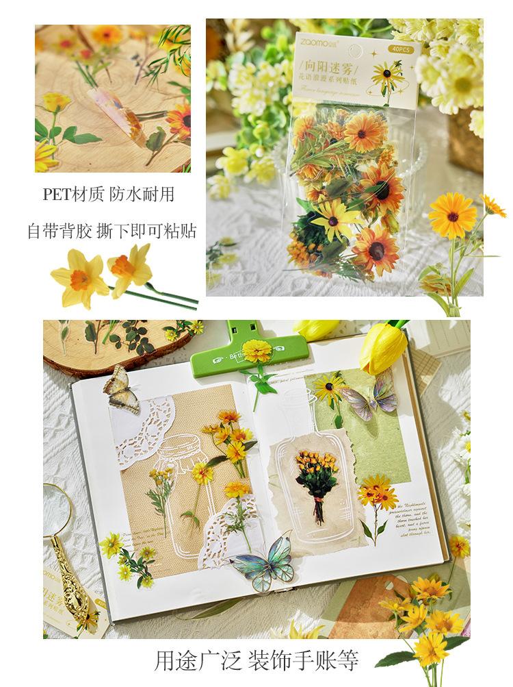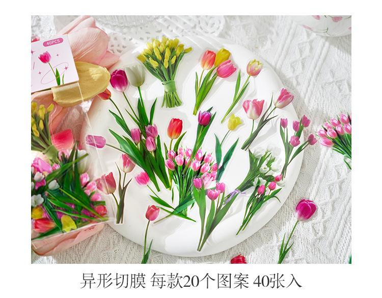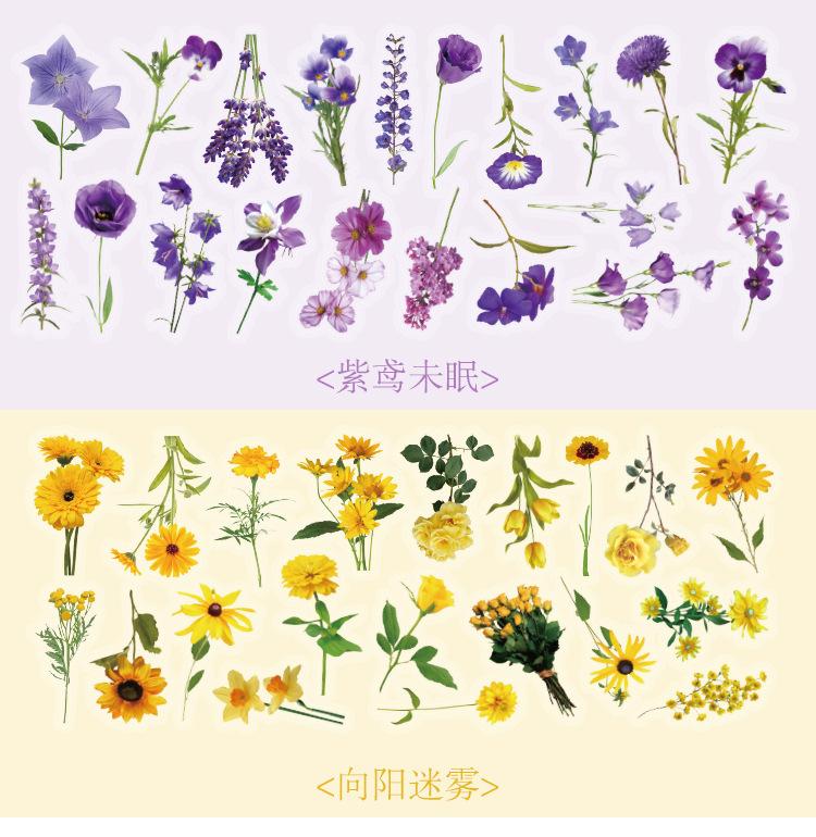 Paquete de Stickers PET Serie Romántica Transparente Impermeable Creativo Floral Plantas Cuenta de Mano DIY Material de Decoración Stickers