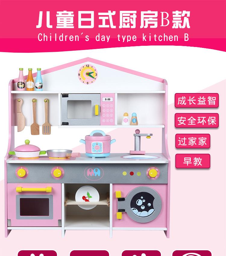 Set de Juguete de Cocina de Imitación para Niños Modelo de Cocina de Estilo Japonés B Cocina de Juguete de Madera para Niñas Estufa
