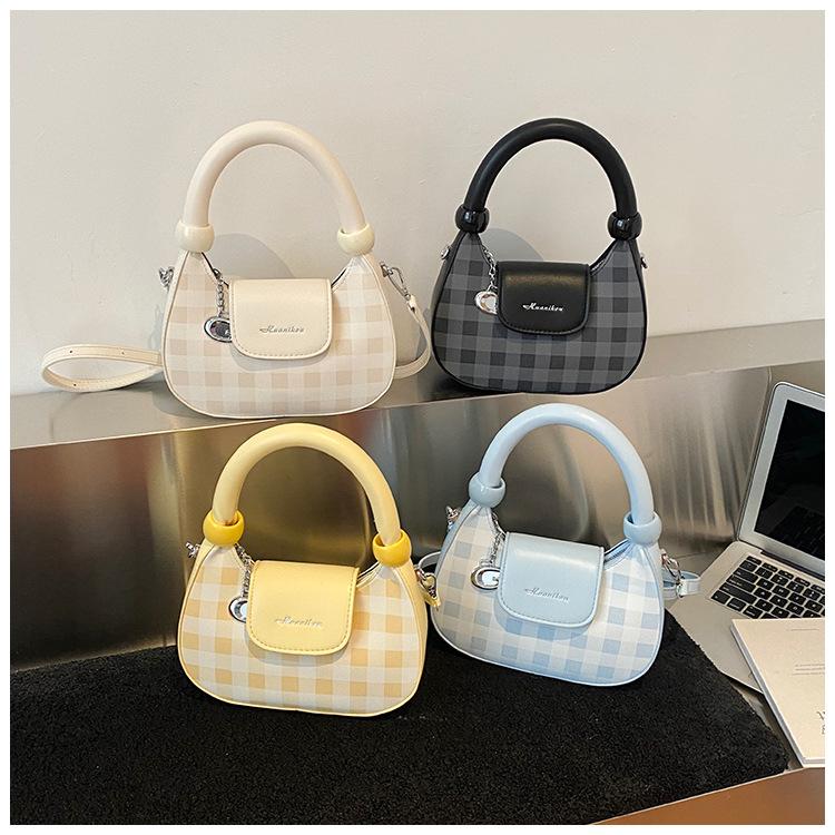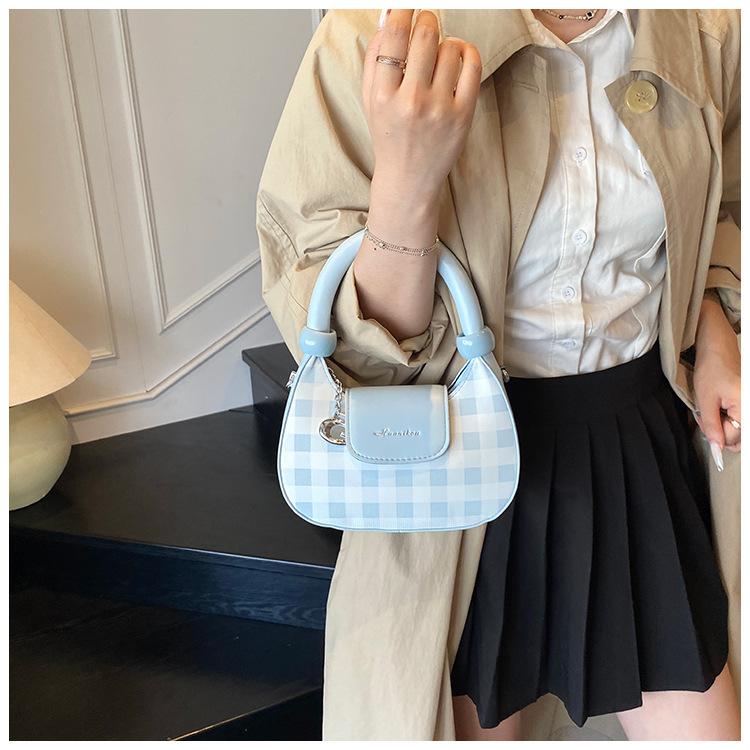 Bolso bandolera elegante de un solo hombro verano 2025 nueva moda a cuadros bolso cuadrado pequeño versátil bolso bandolera de axila para mujer
