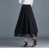 [Uso a doble cara] Falda plisada de encaje de talle alto de talla grande para mujer, Otoño e Invierno, Nueva Llegada, Falda de malla ajustada de largo medio