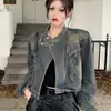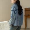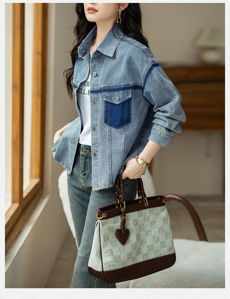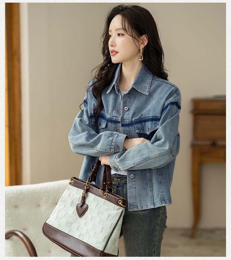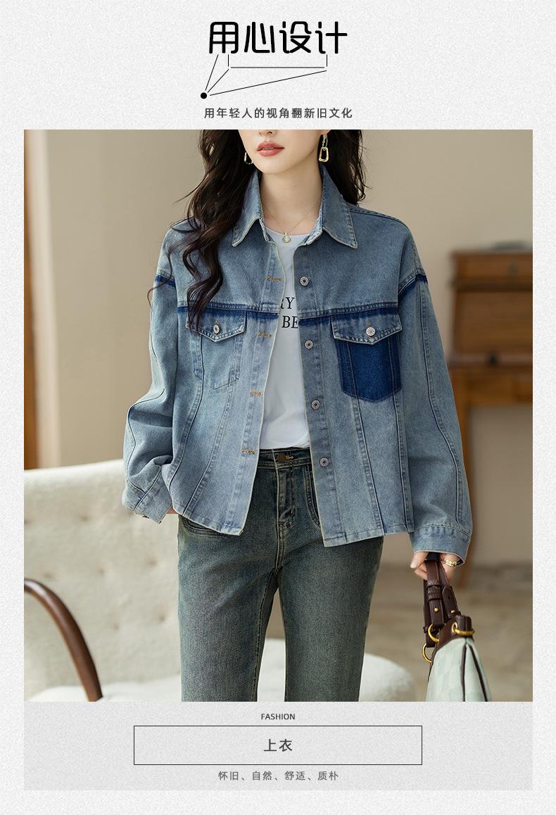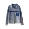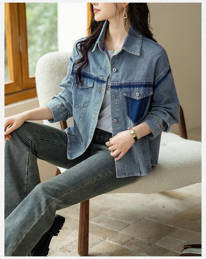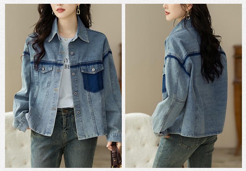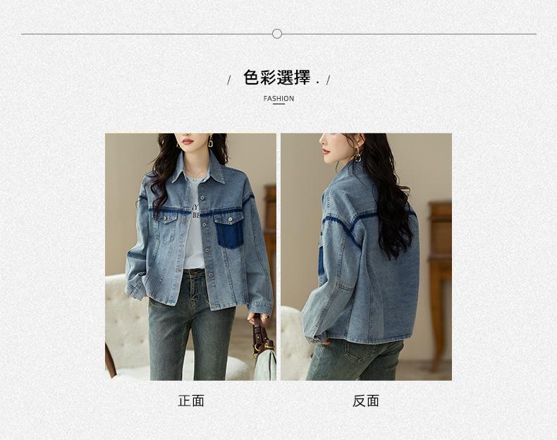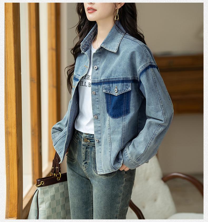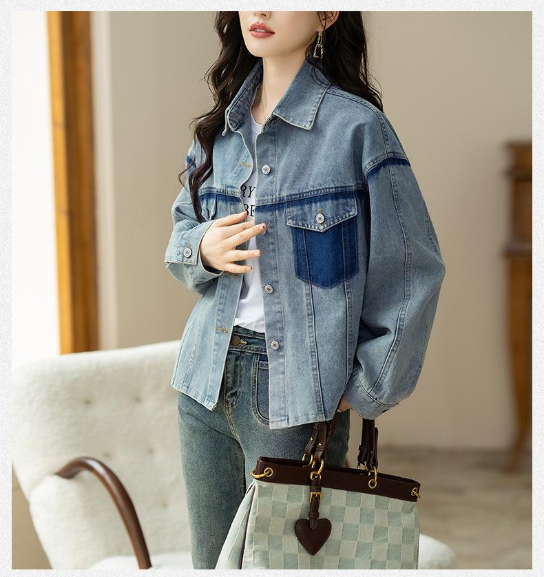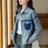 Chaqueta de mezclilla estilo Hong Kong de manga larga con bloques de color retro, nuevo top de otoño para mujer