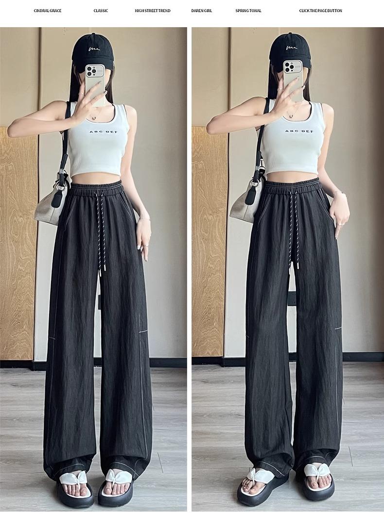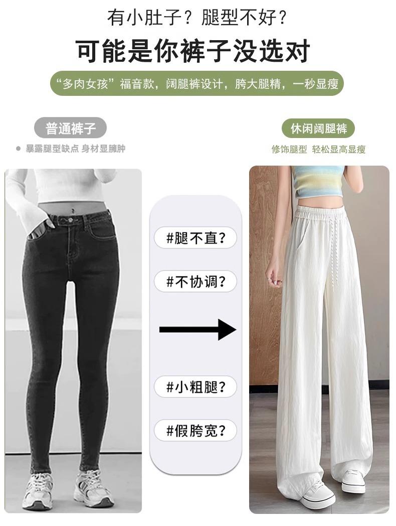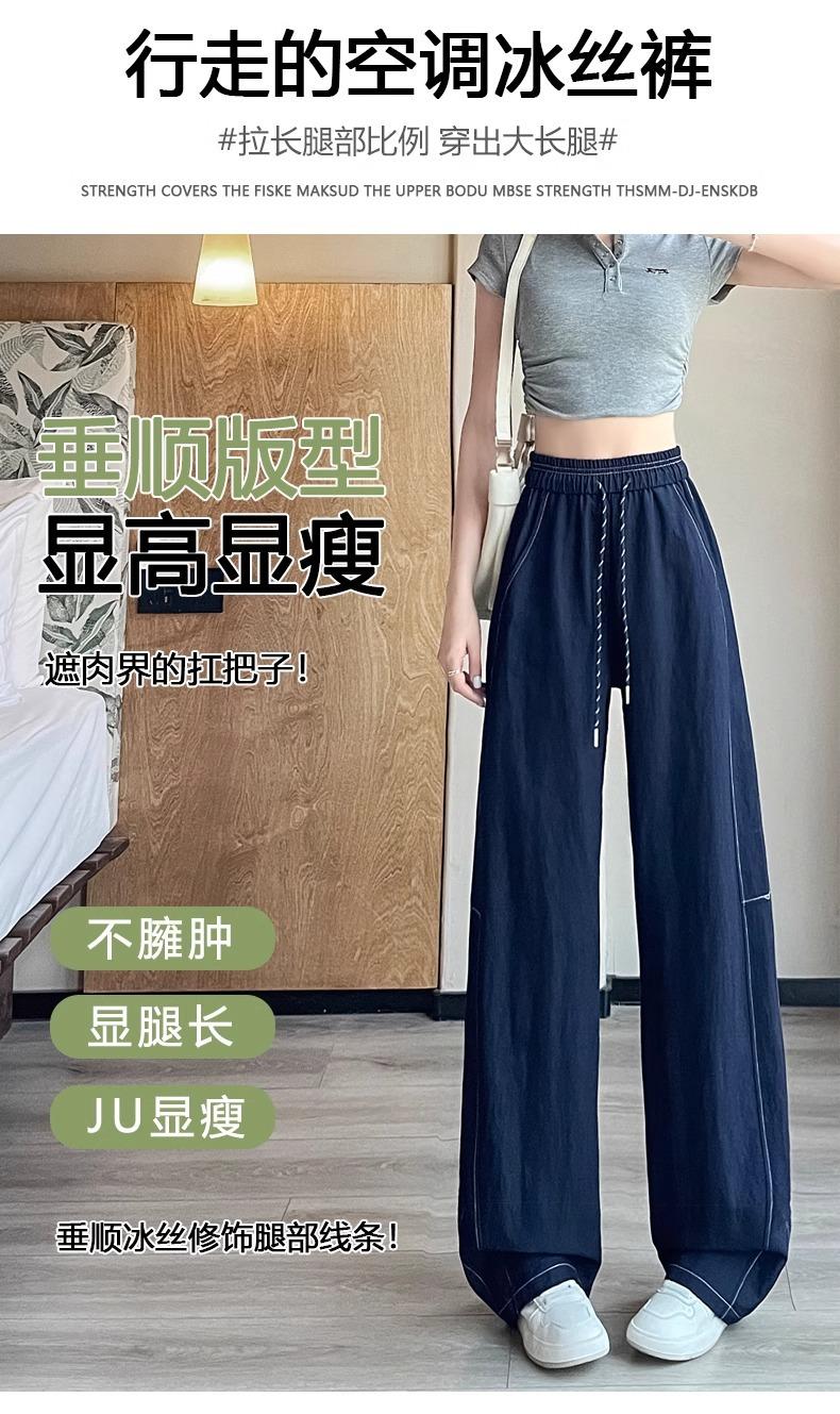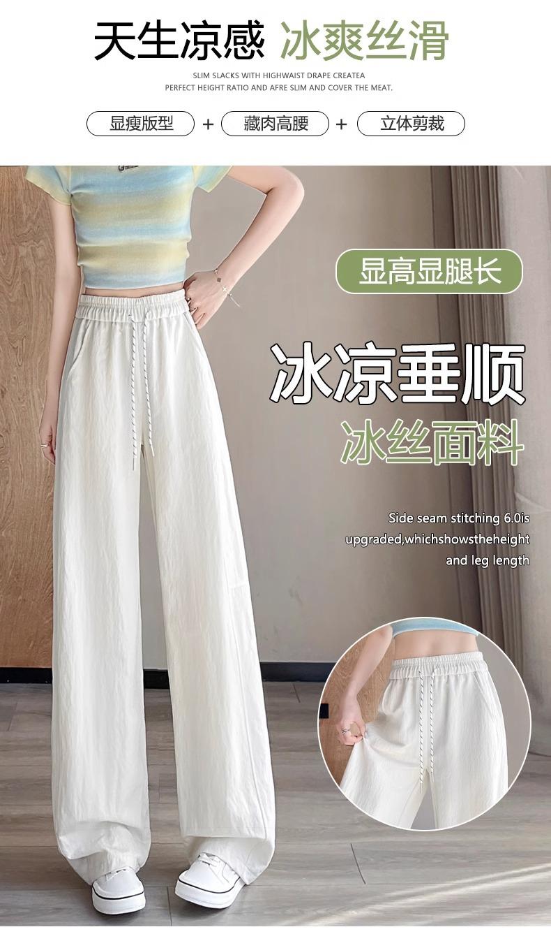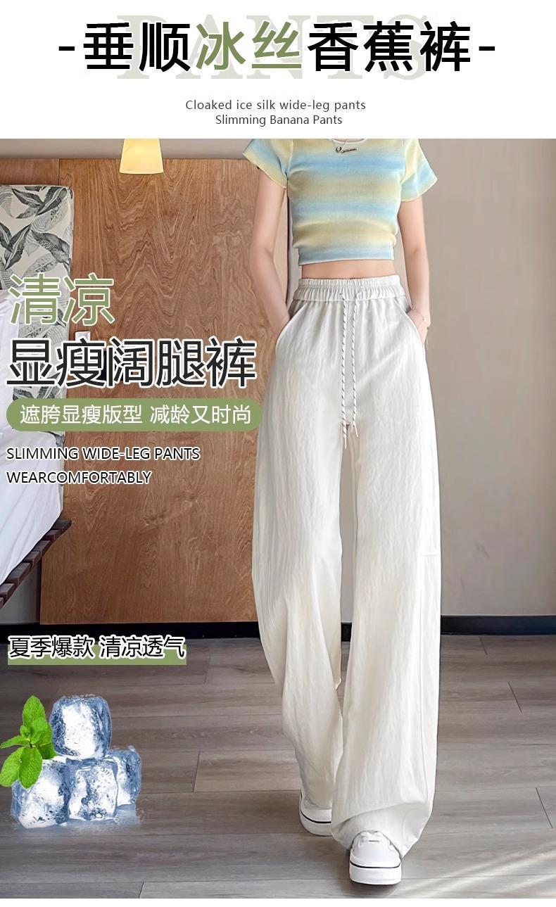 Pantalones Anchos de Pierna de Plátano de Seda de Hielo para Mujer Verano Delgados Dape Pantalones Casuales Sueltos Rectos Frescos Deportivos