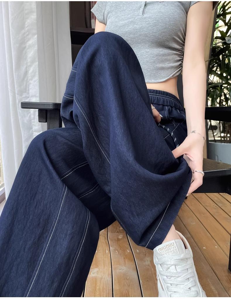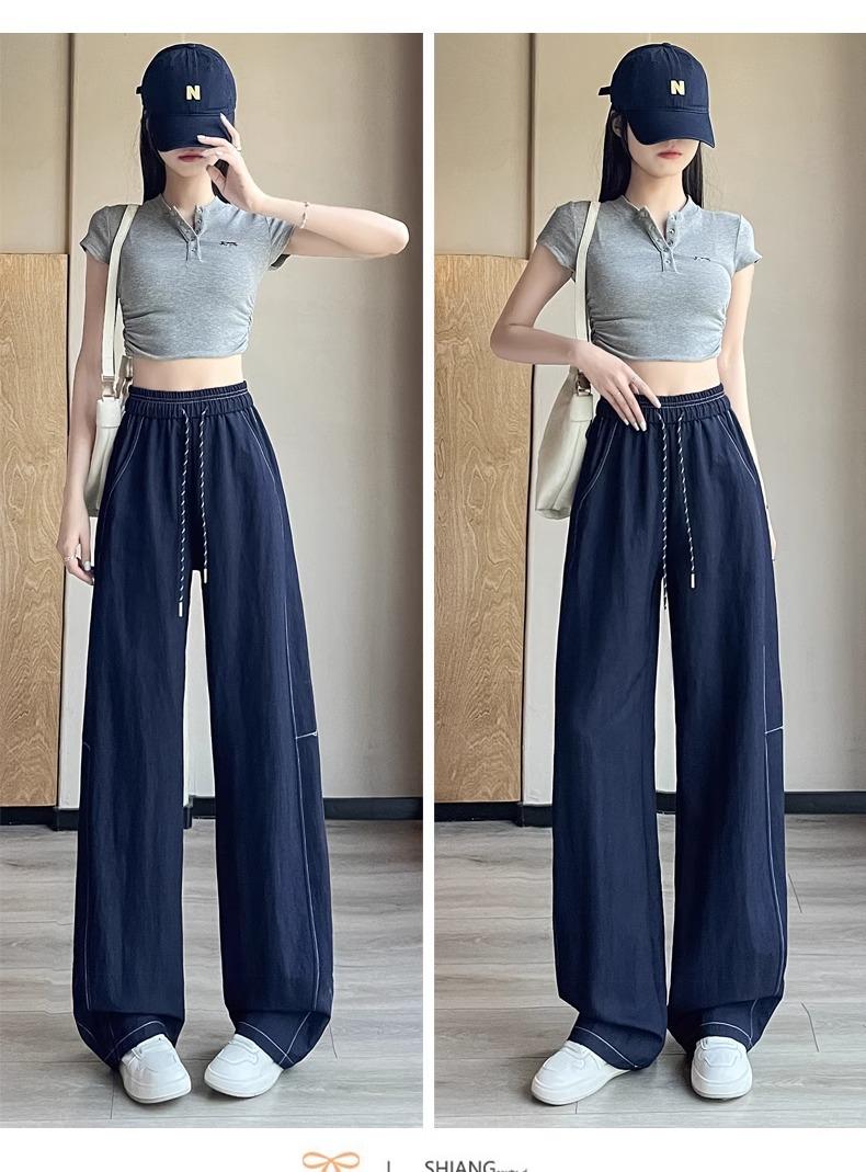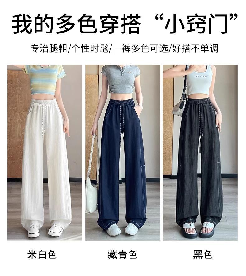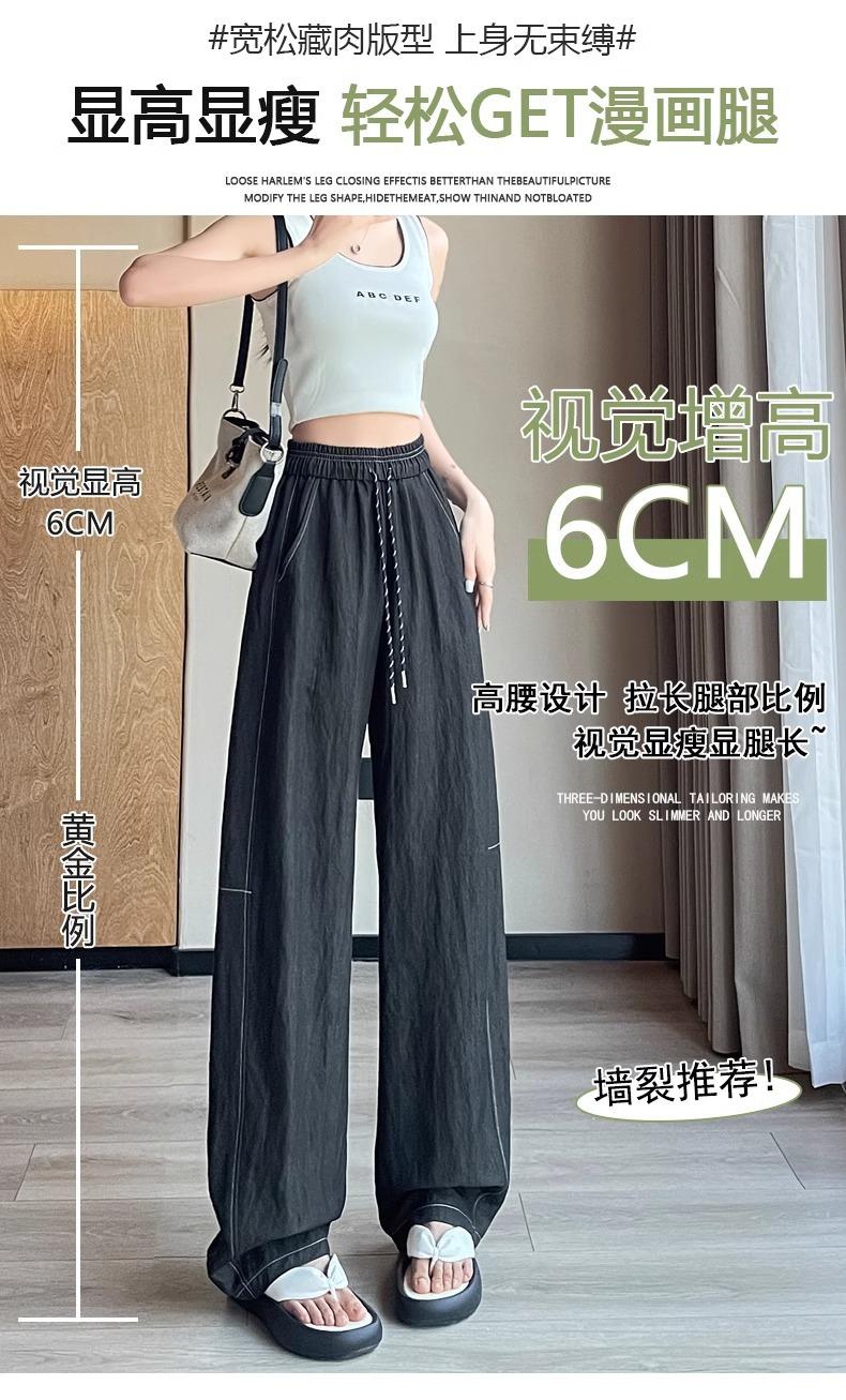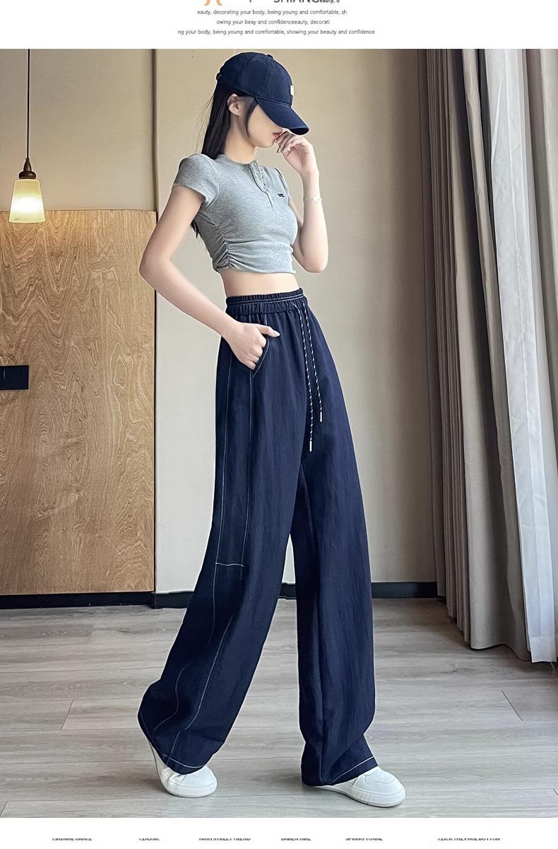 Pantalones Anchos de Pierna de Plátano de Seda de Hielo para Mujer Verano Delgados Dape Pantalones Casuales Sueltos Rectos Frescos Deportivos