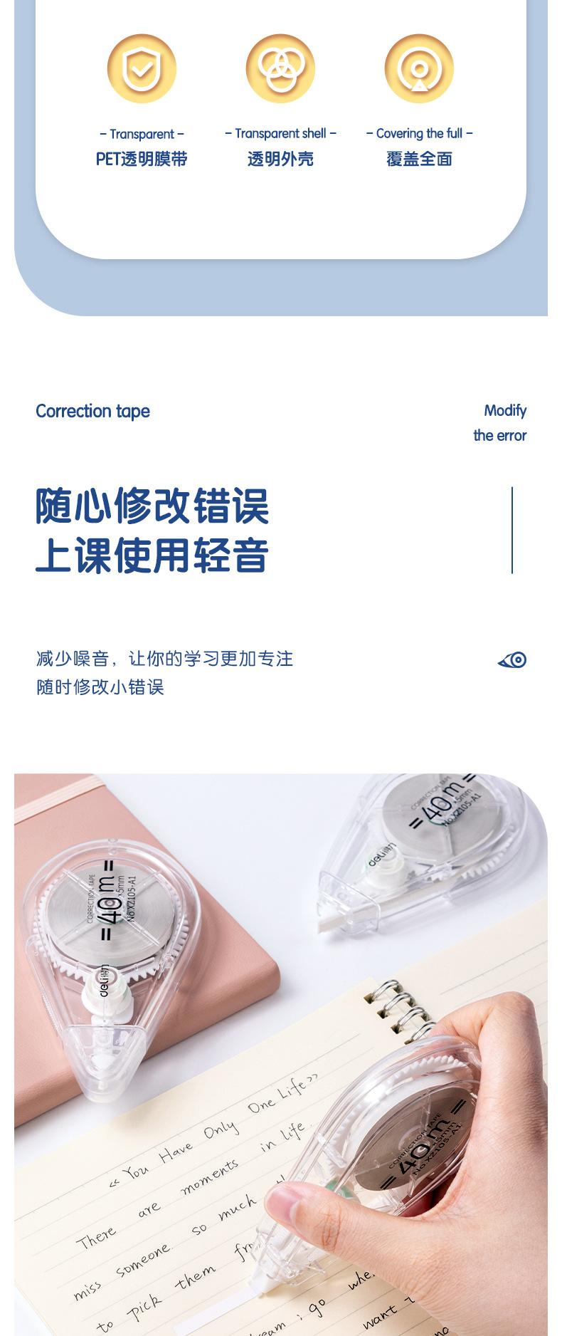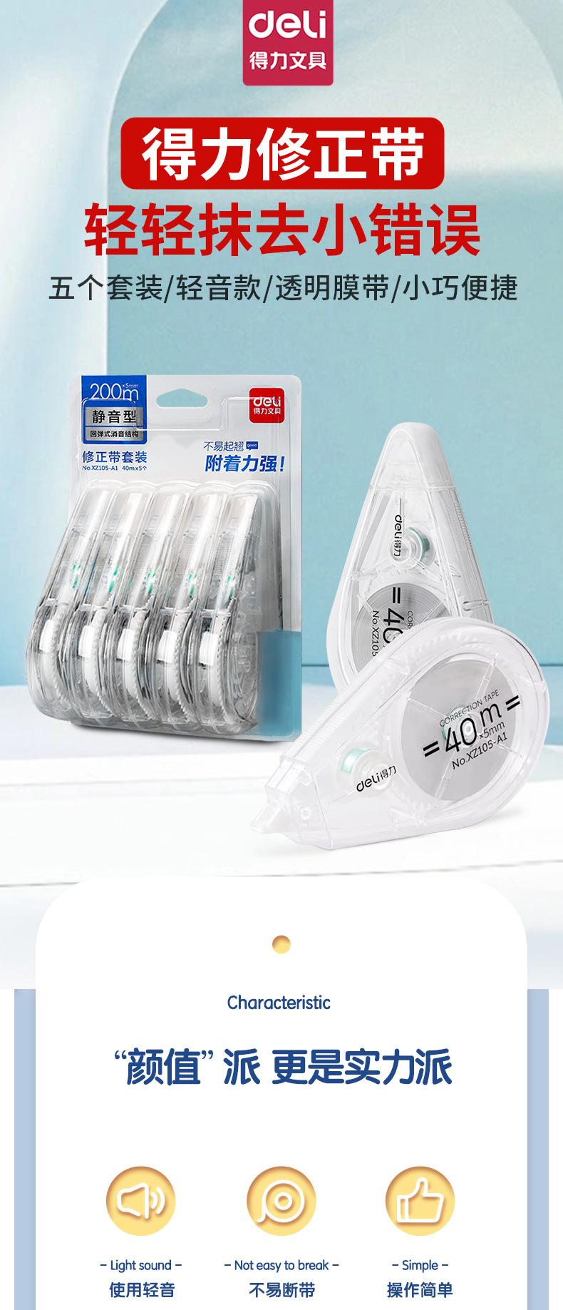 Deli Cinta Correctora Simple para Estudiantes de Múltiples Tamaños Cinta de Película Transparente Paquete de Valor Cinta Correctora de Gran Capacidad al Mayoreo