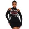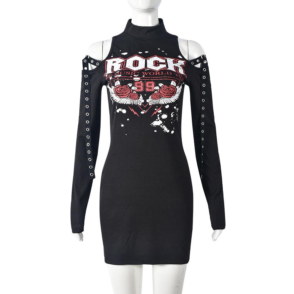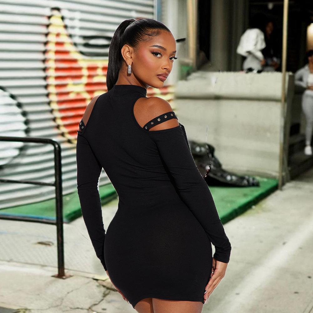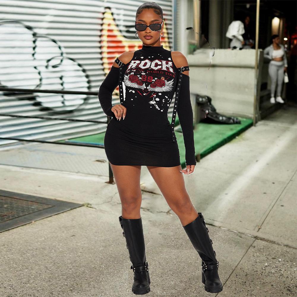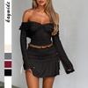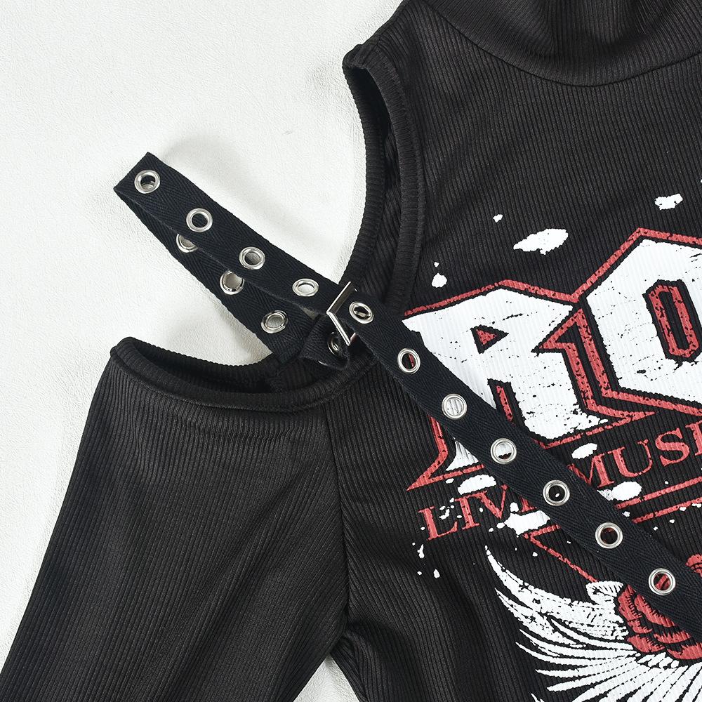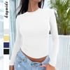 Amazon 2025 Primavera y Verano Estilo Callejero Hip-Hop Europeo y Americano Transfronterizo Camiseta de Moda Elástica Avant-Garde con Hombros Descubiertos de Manga Larga para Mujer