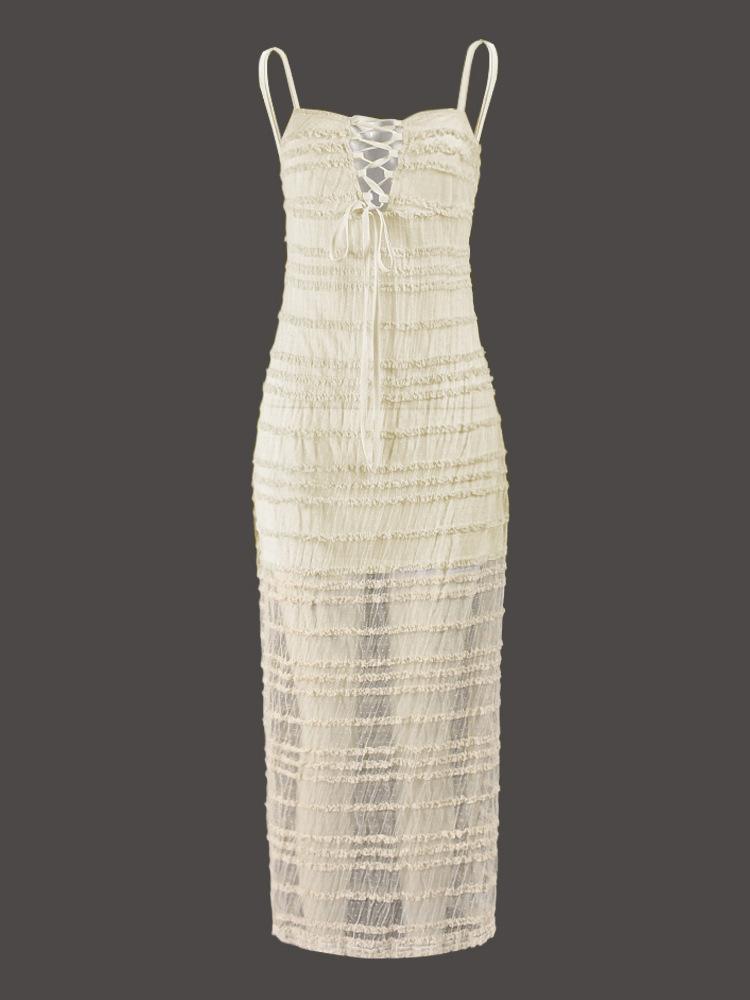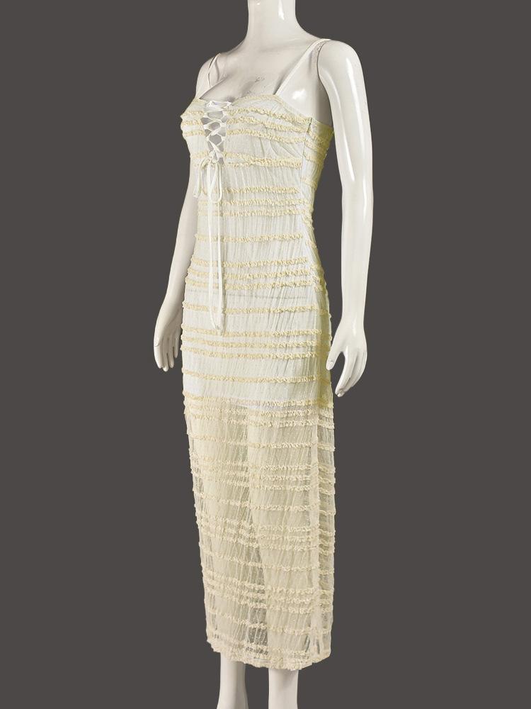 Amazon 2025 Verano y Otoño Europeo y Americano Nuevo Vestido de Calle Sexy Ajustado con Tirantes Cut Out Transparente Doble Capa para Mujer