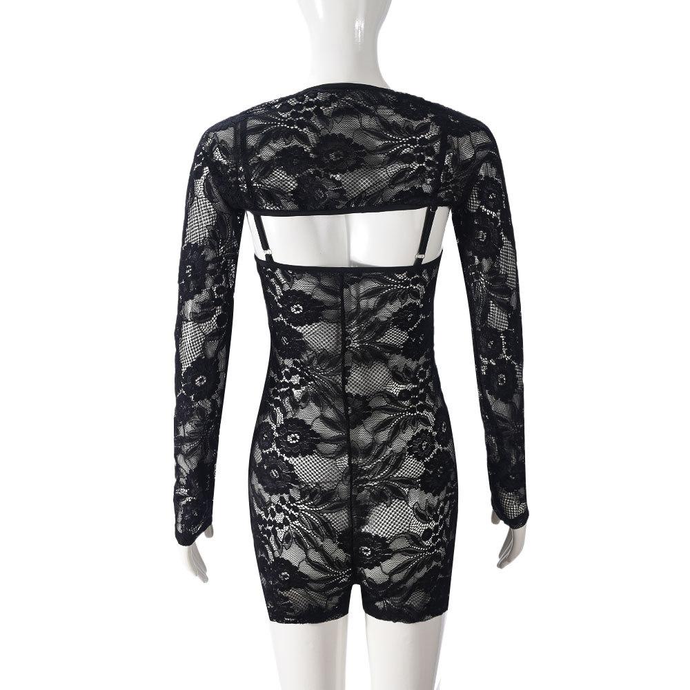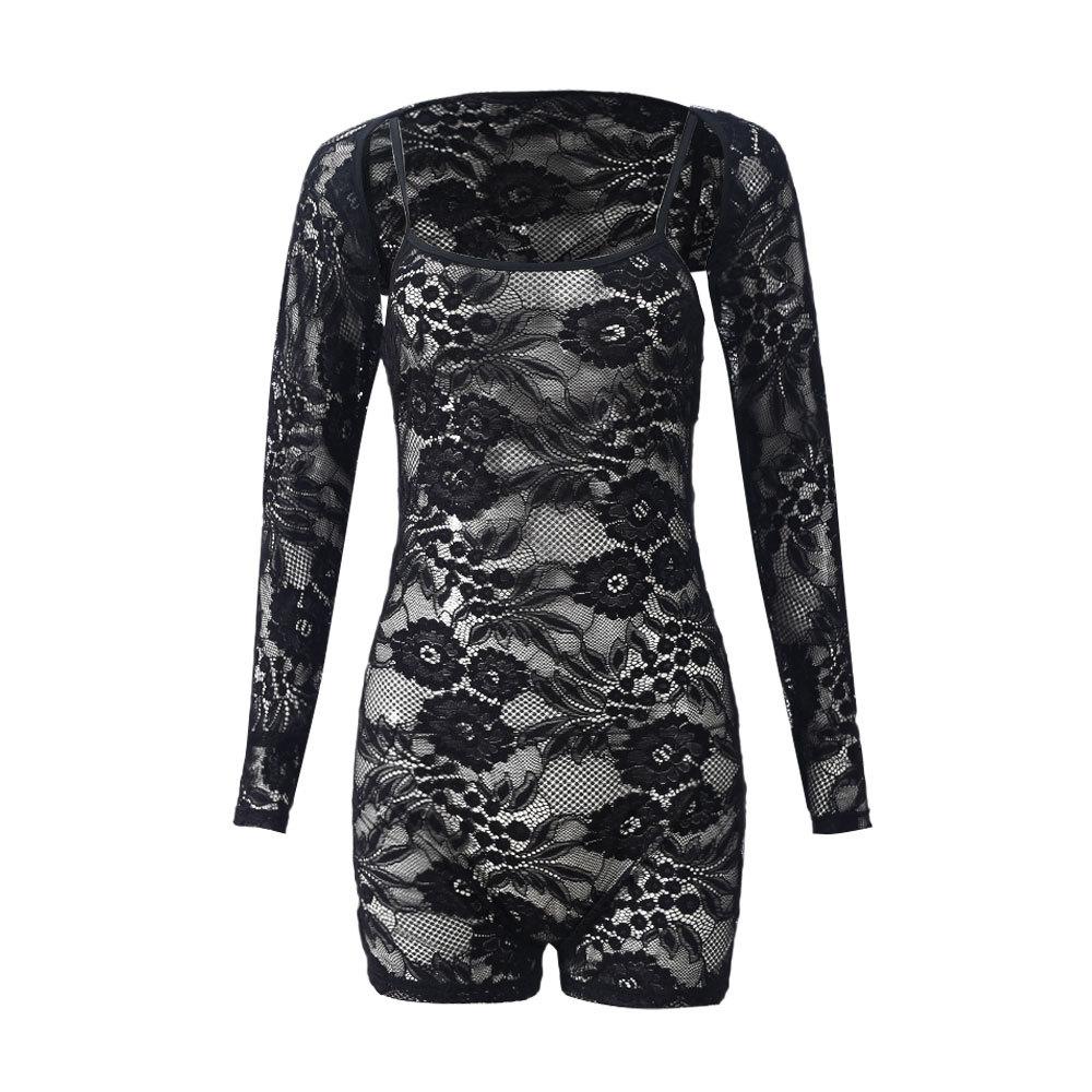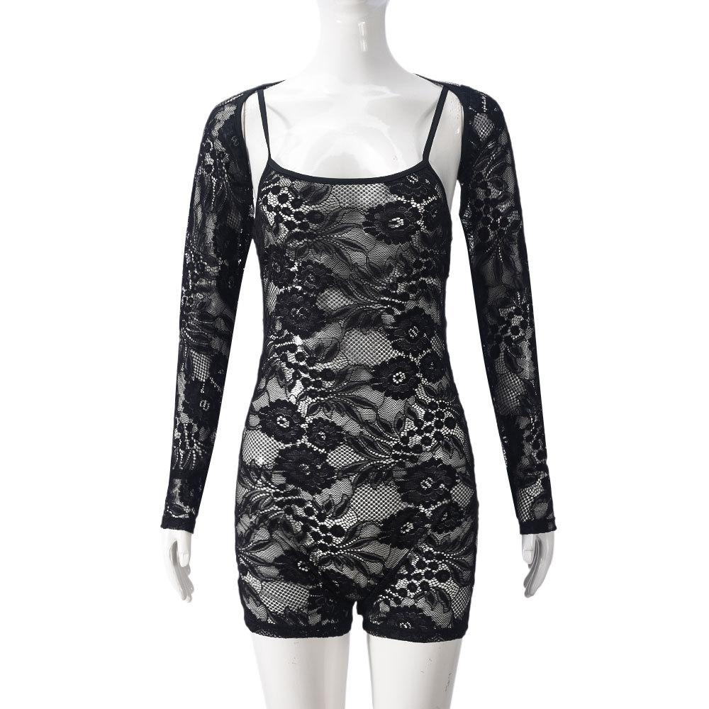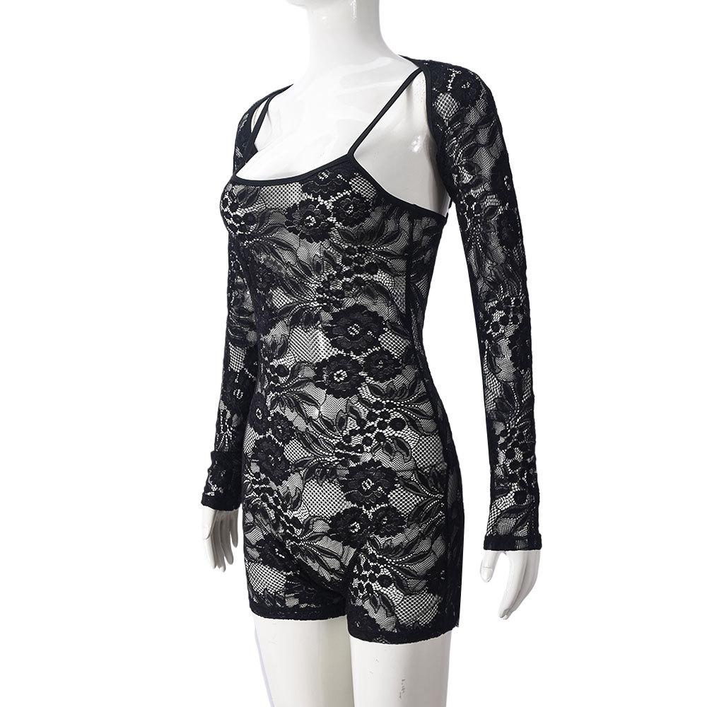 Ropa de Mujer Transfronteriza Europea y Americana 2025 Nuevo Otoño Sexy Sexy Encaje Manga Larga Chal Peto Mono Traje para Mujeres