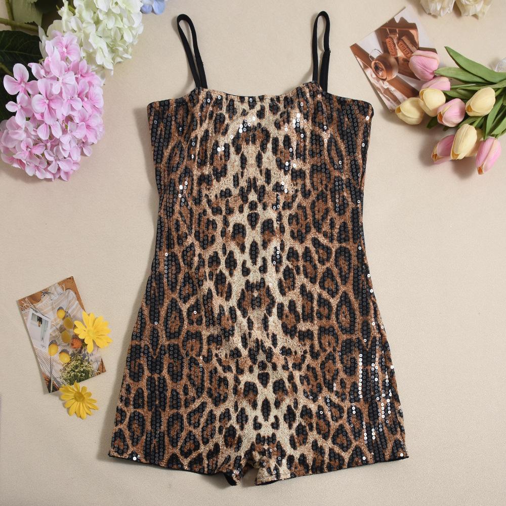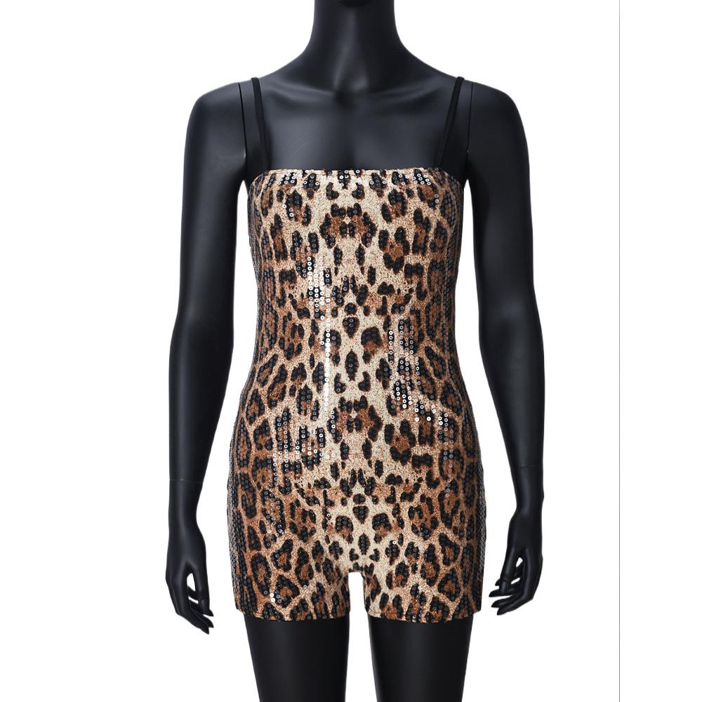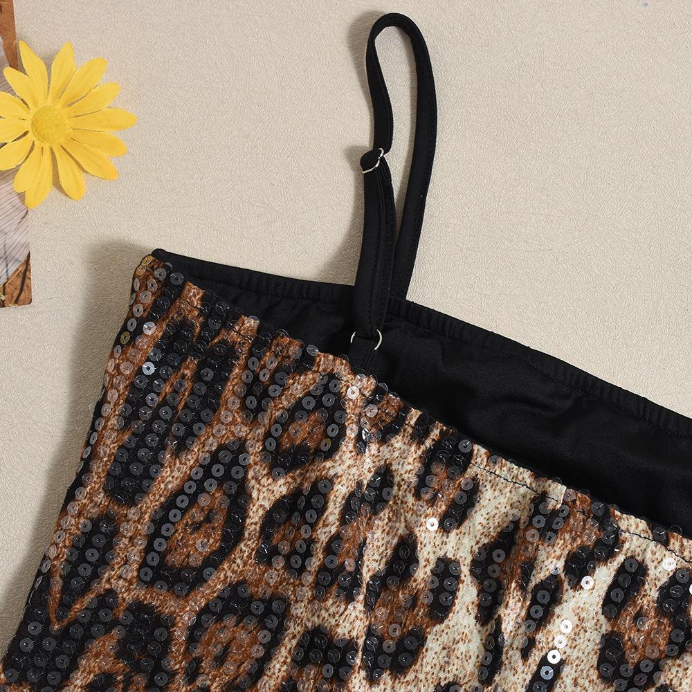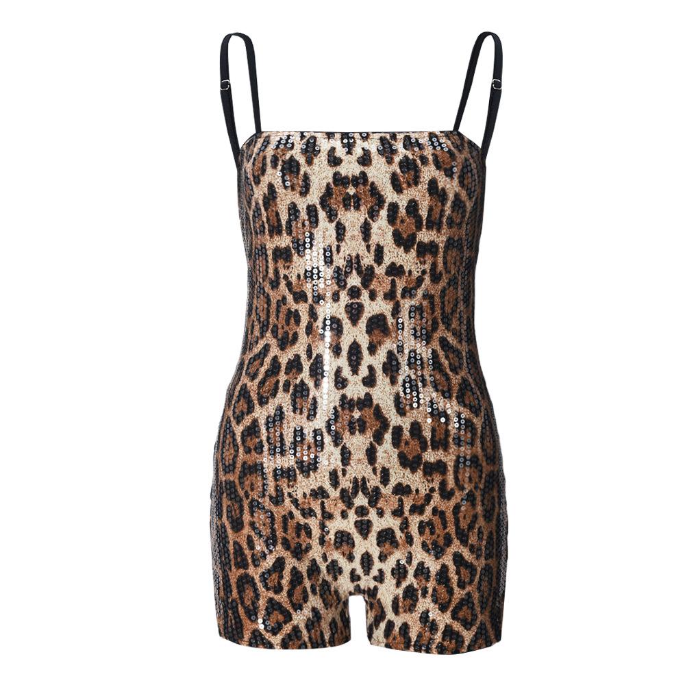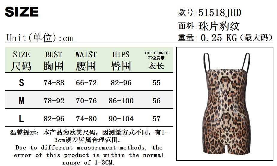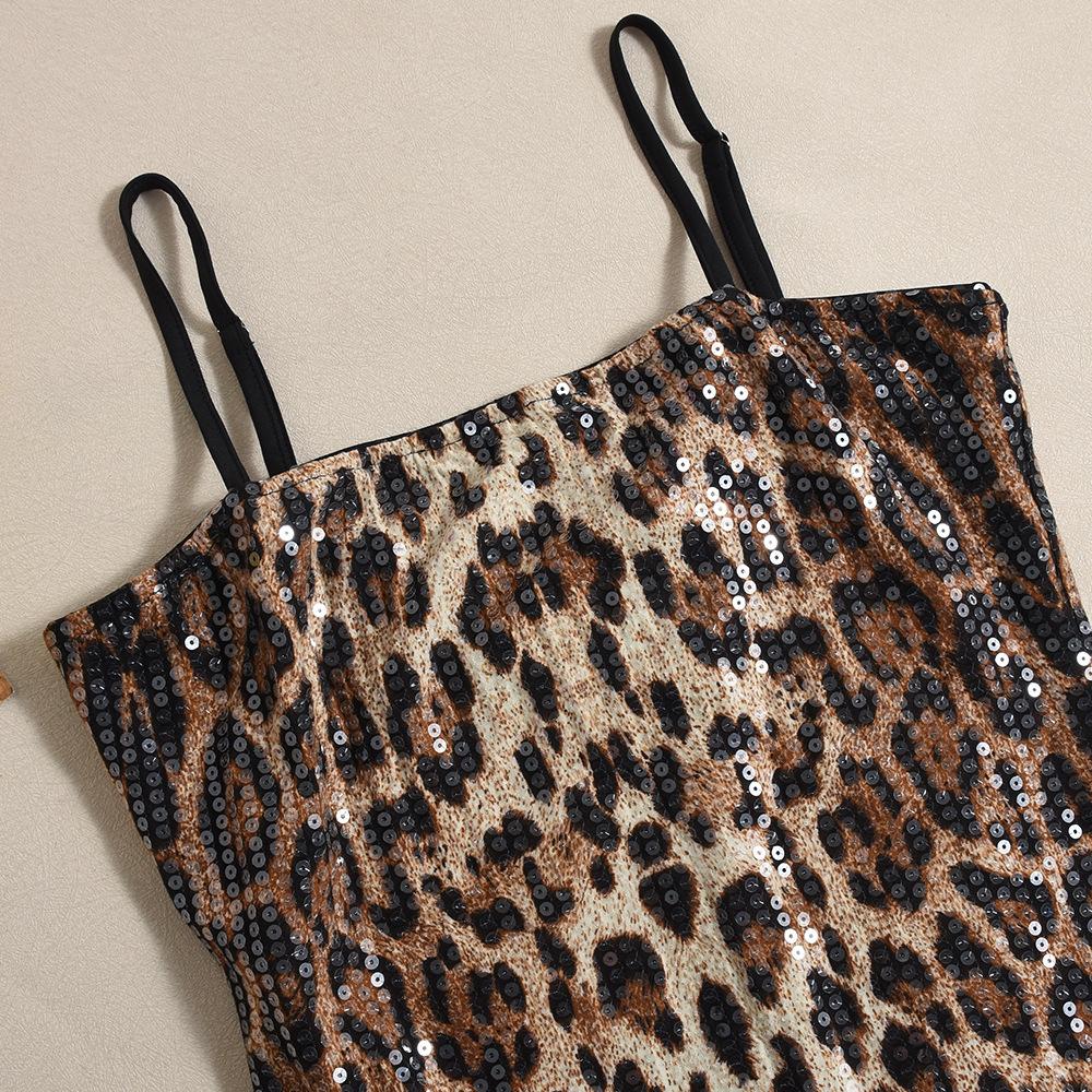 Amazon Ropa Transfronteriza Europea y Americana 2025 Nuevo Mono Sexy de Leopardo Ajustado de Moda con Lentejuelas y Tirantes para Mujer