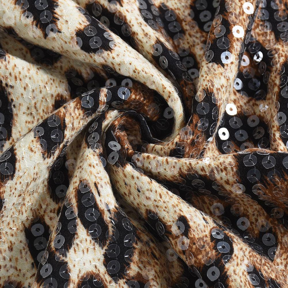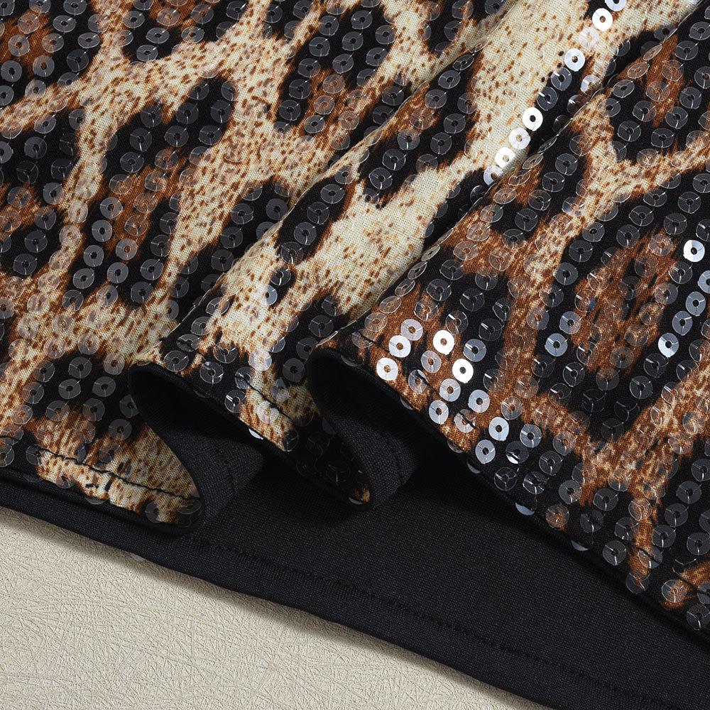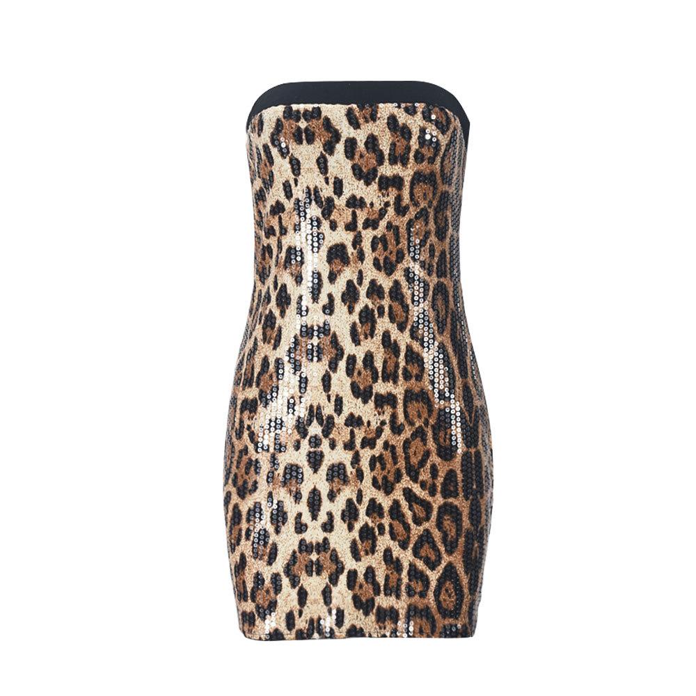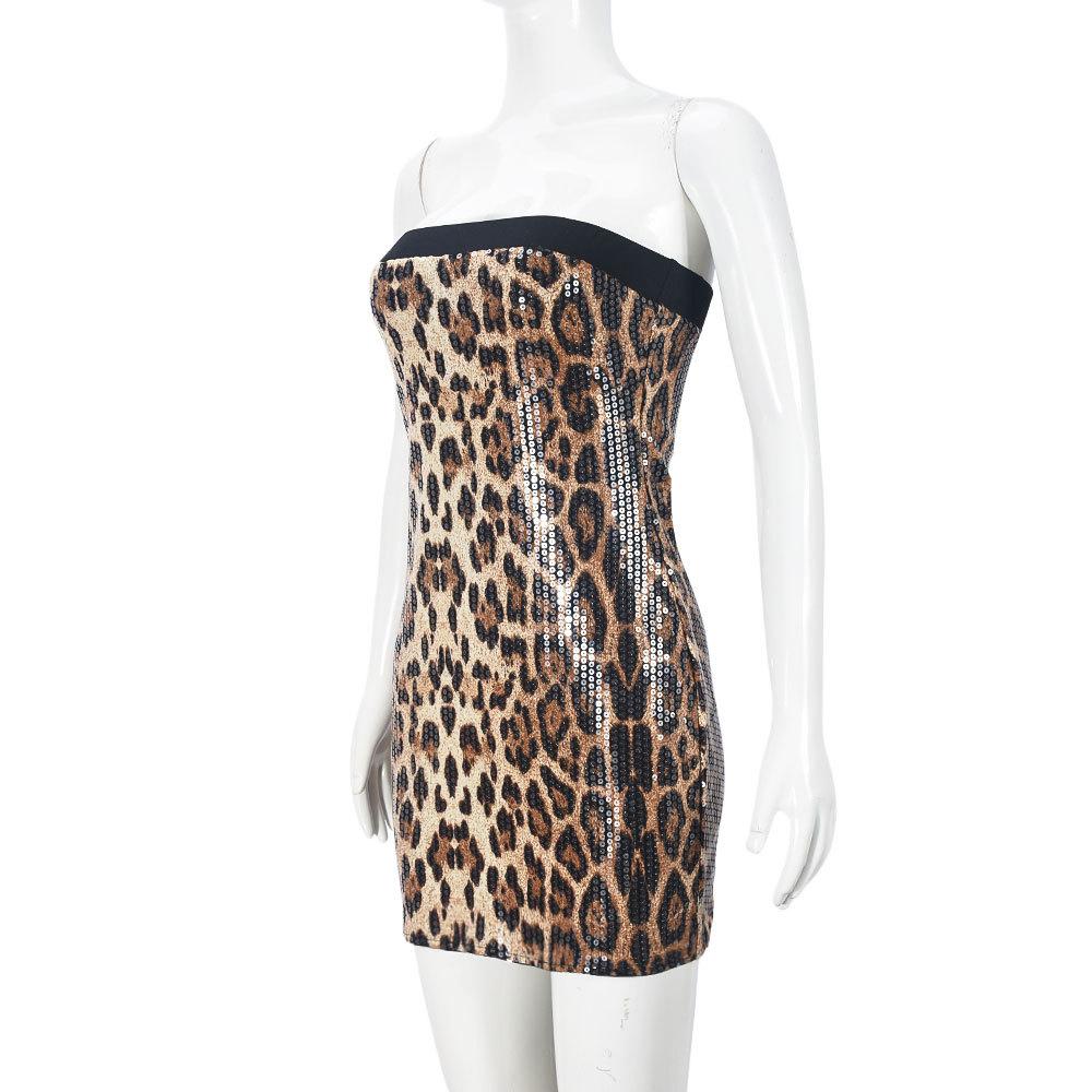 Ropa de Mujer Europea y Americana Transfronteriza Primavera Nueva Llegada Lentejuelas Estampado de Leopardo Color en Contraste Cuello de un Solo Hombro Sexy Chica Picante Sin Tirantes Falda de Cadera