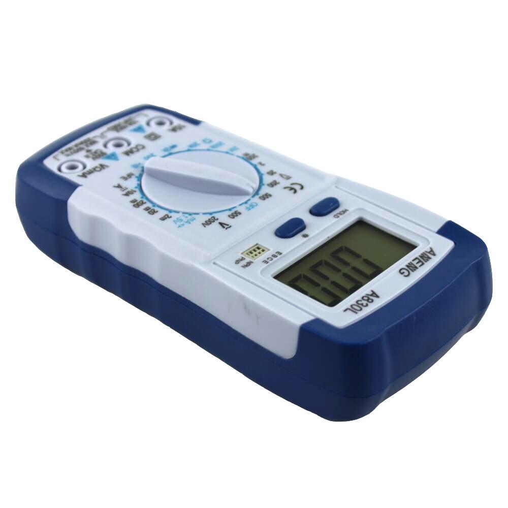 100% nuevo y de alta calidad. Características: 1.El medidor es un multímetro digital de mano de 3 1/2 dígitos para medir voltaje AC/DC y corriente AC/DC, resistencia, diodo, transistor, frecuencia, temperatura, capacitancia y prueba de continuidad con batería. 2. Apto para escuelas, fábricas, familias y amantes de la radioafición 3. Diseño pequeño y compacto 4. Un gran instrumento de medición electrónico 5. La luz de fondo de la pantalla es opcional Presupuesto: 1. Tubo Protector: F500mA/250V 2. Alimentación: Batería de 9V NEDA1604 o 6F22 3. Pantalla: LCD, 1999 cuentas, actualizaciones 2-3/etc. 4. Método de medición: Convertidor A/D de integración de doble pendiente 5. Indicación de Sobrerango: Solo el dígito "1" en la pantalla 6. Indicador de Polaridad: "-" para Polaridad Negativa 7. Temperatura de Trabajo: 0-40 °C 8. Temperatura de Almacenamiento: -10°C-50°C 9. Tamaño: 31.5*91*189mm 10. Peso: 280g