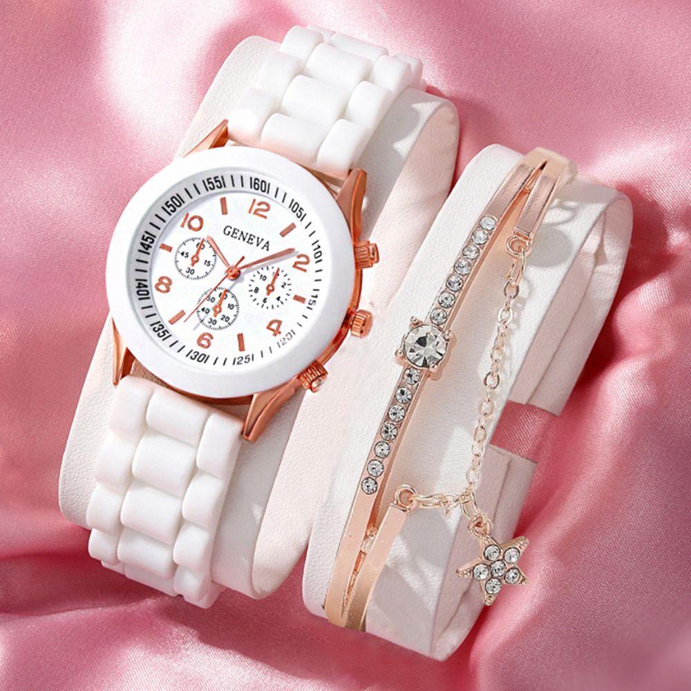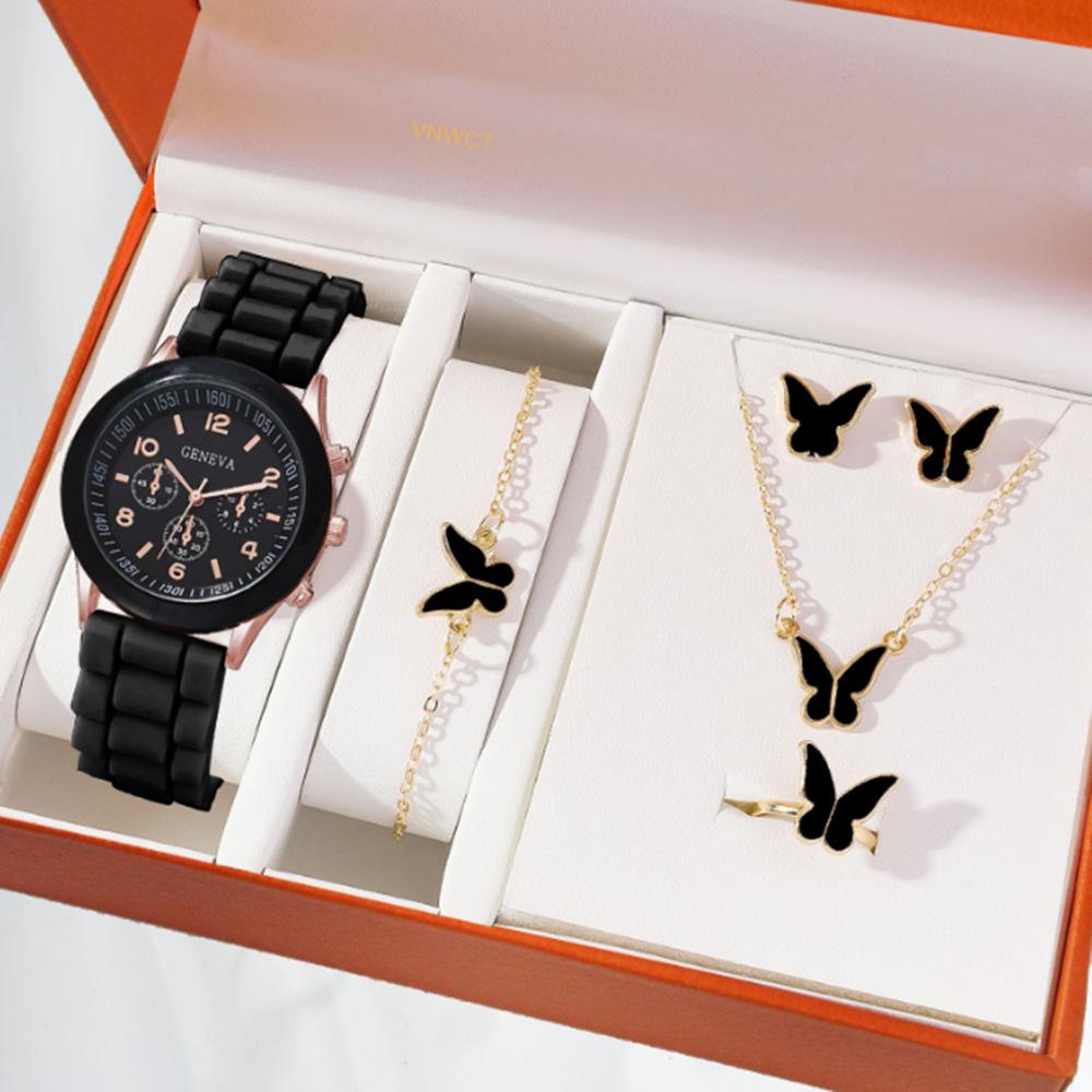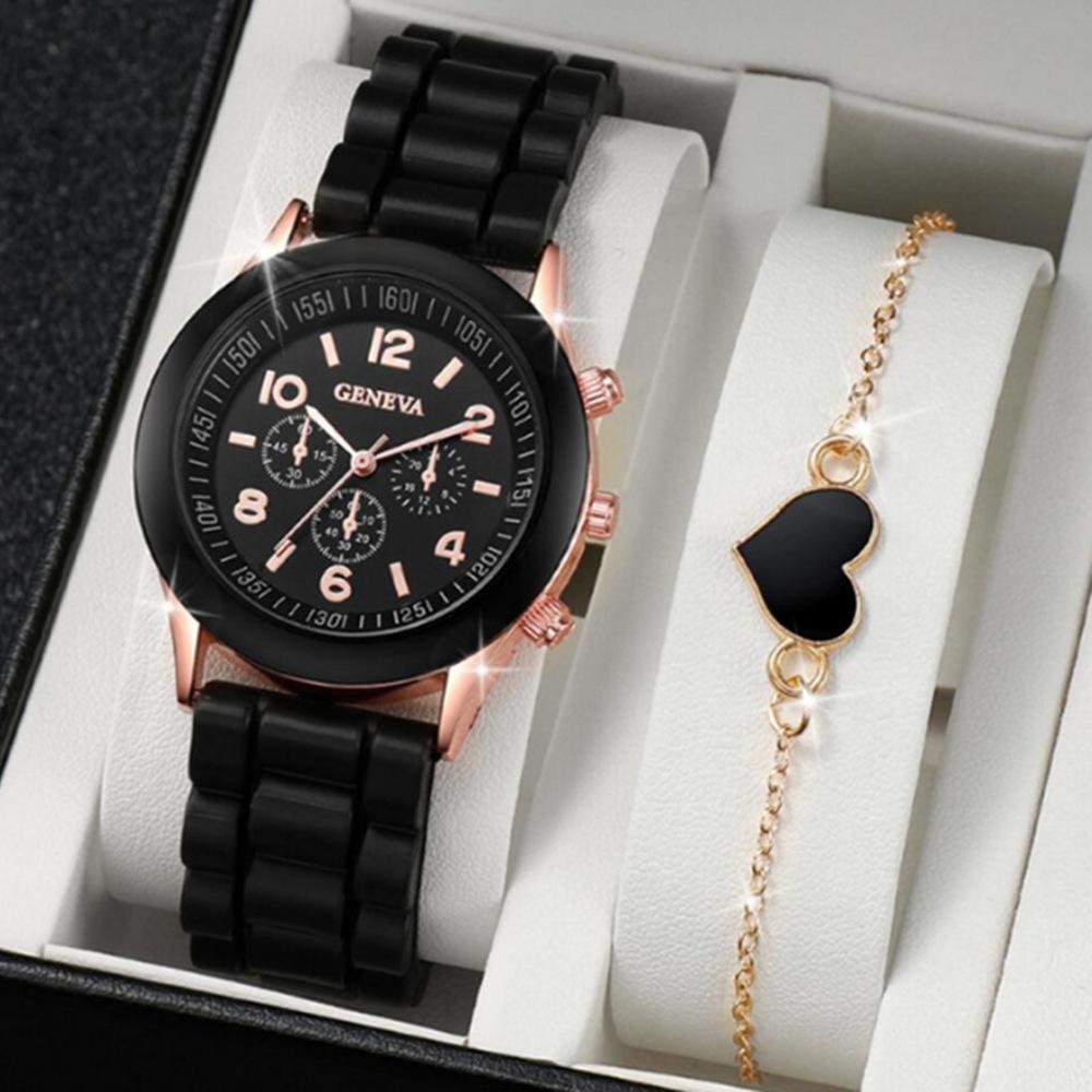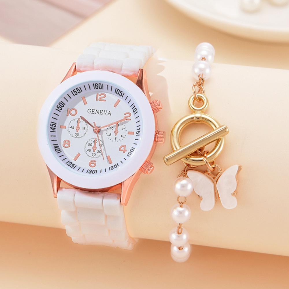 Comercio Exterior Nuevo Reloj de Cuarzo de Alta Gama para Mujer Estilo Coreano Simple Clásico Correa de Silicona Reloj de Mujer Set de Moda