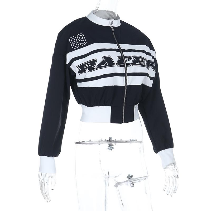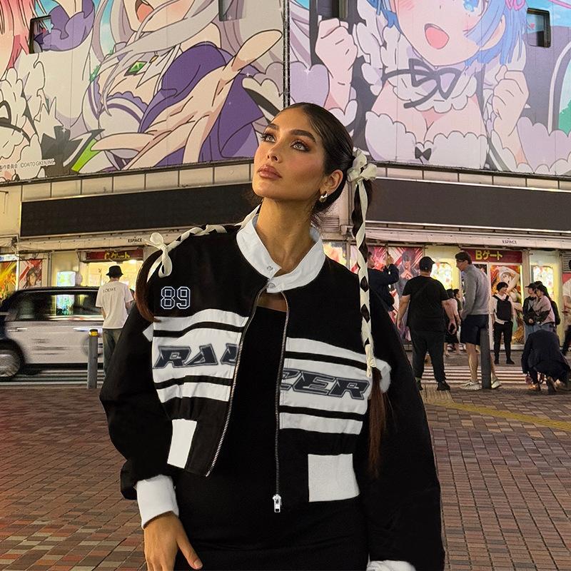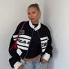 Chaqueta Top de Manga Larga con Bloque de Color y Estampado de Letras de Moda Otoño 2025 Nuevo Versátil Ropa Exterior