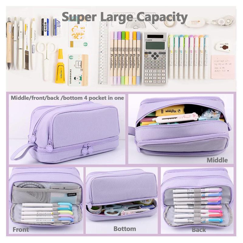 Estuche para Lápices de Gran Capacidad Estuche para Lápices de 4 Compartimentos con Cremallera Asa Portátil Estuche Estético para Lápices Organizador de Papelería