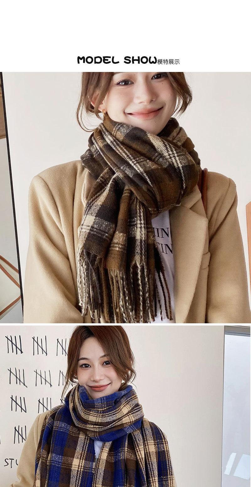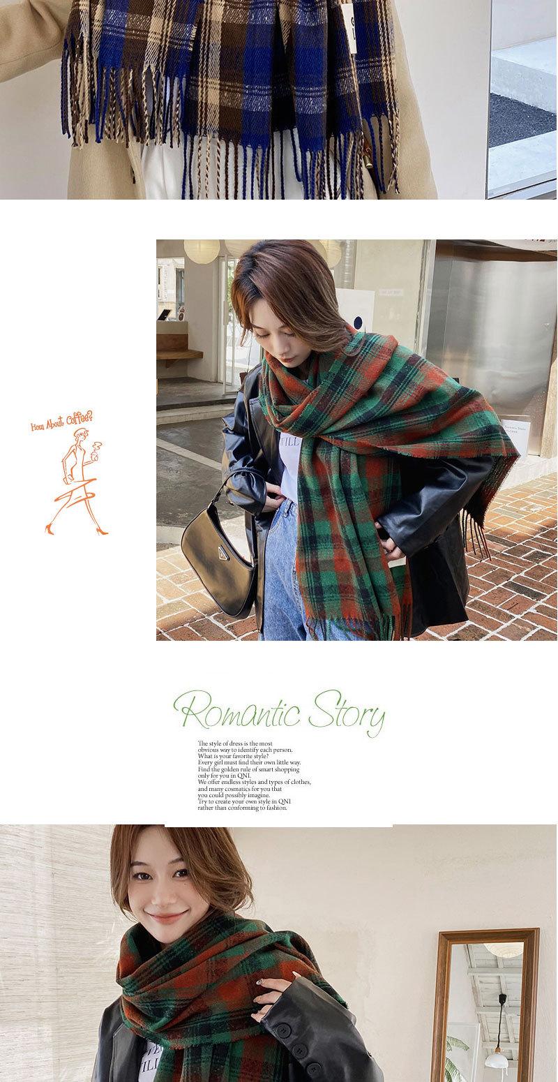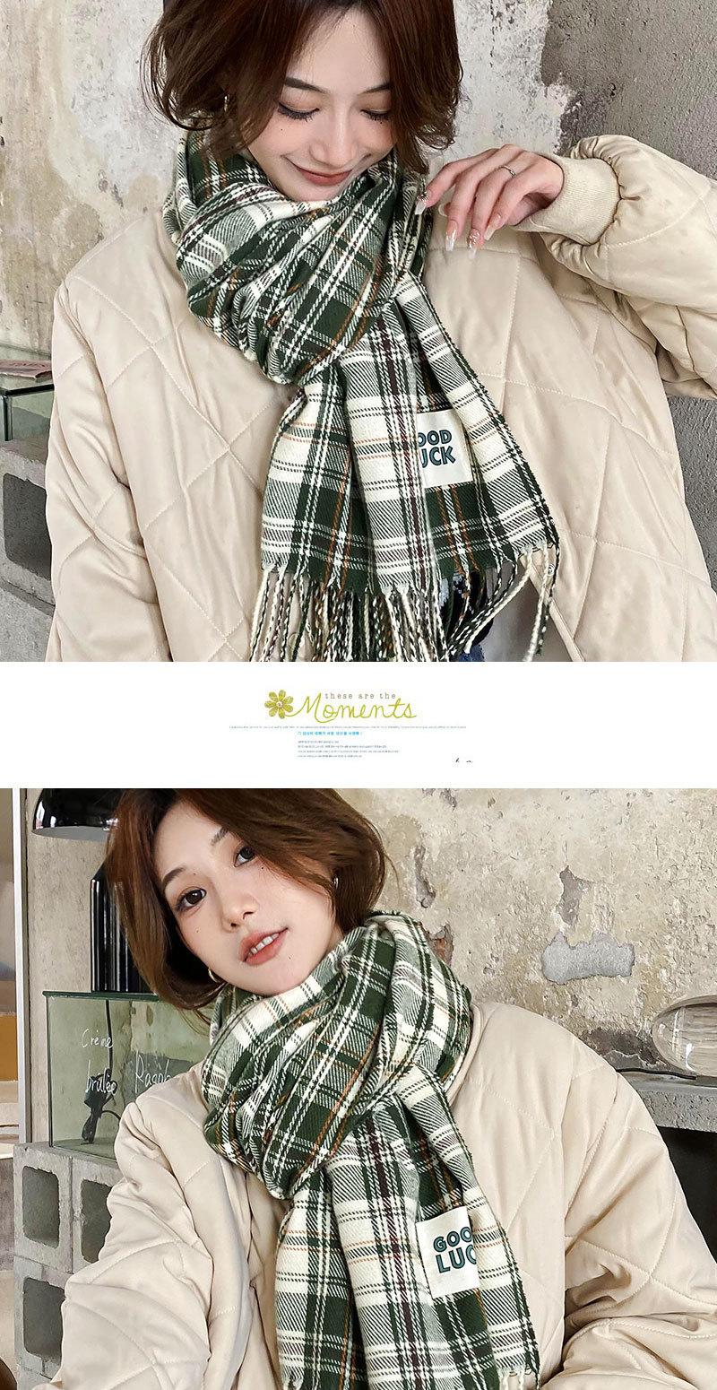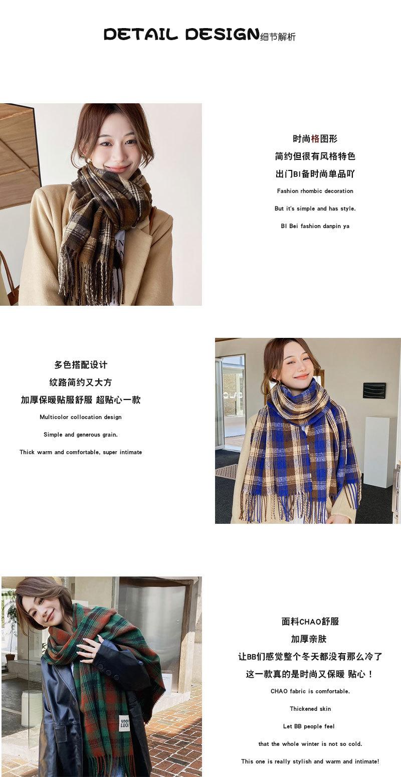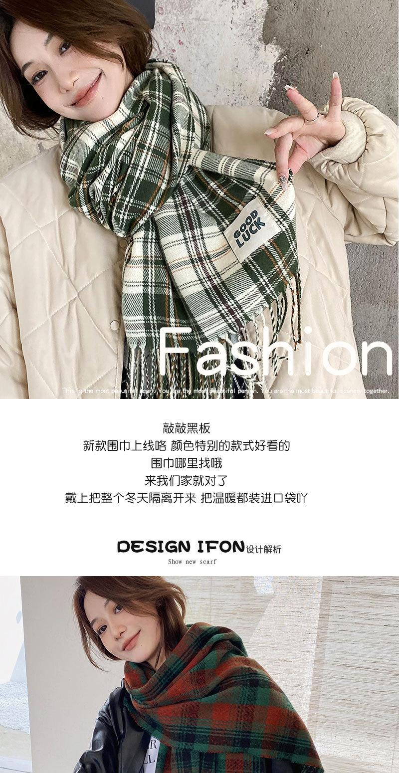 Bufanda vintage a cuadros verdes para mujer, otoño e invierno, combina con todo, alta gama, personalidad, cálida, estilo coreano, nueva