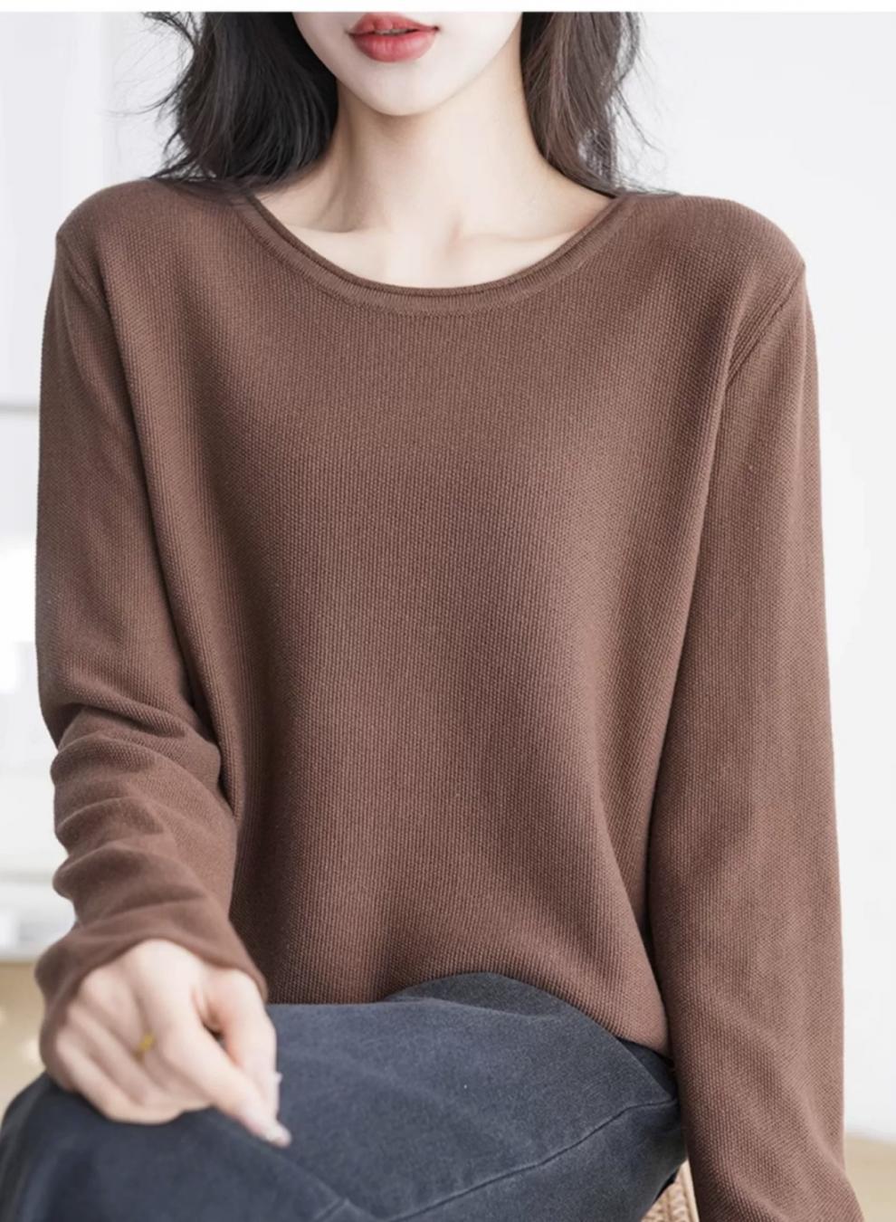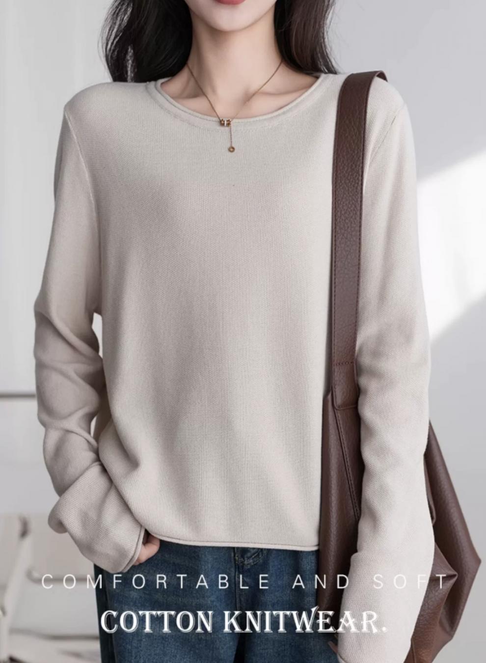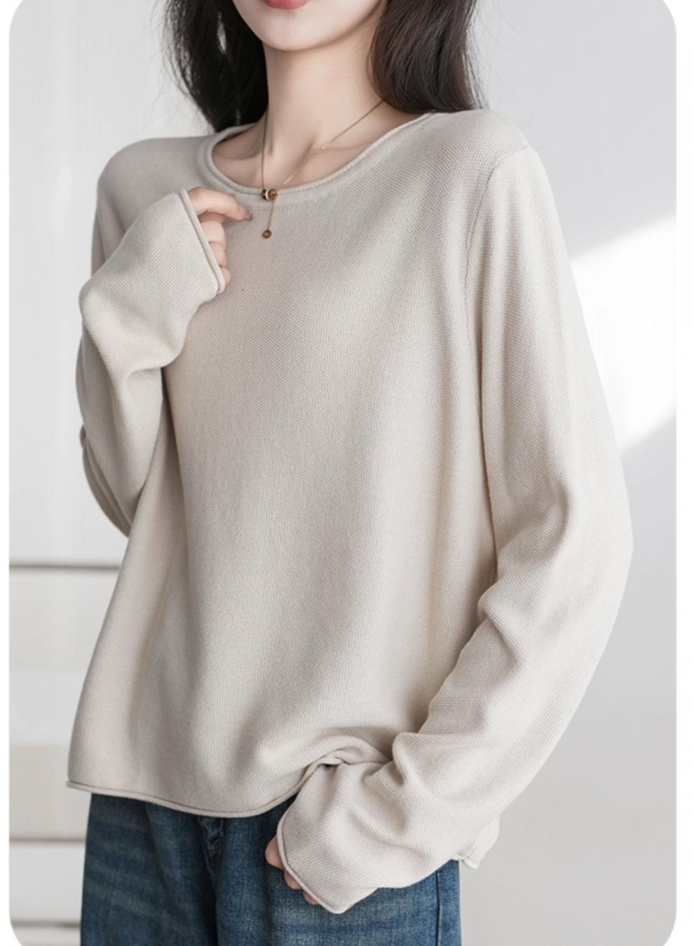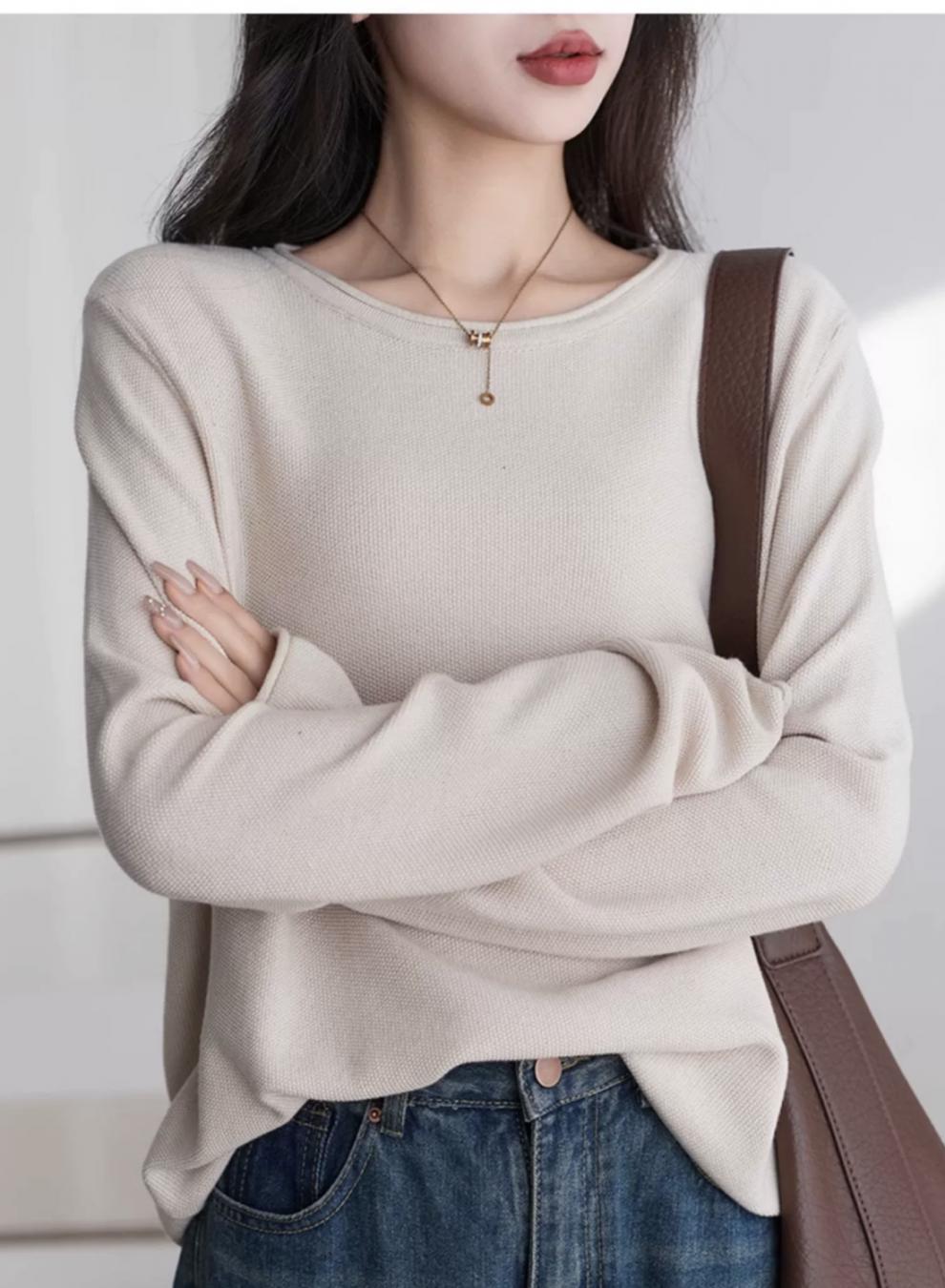 2025 Suéter Delicado y Amigable con la Piel Tejido Top para Mujer Primavera y Otoño Nuevo Estilo Popular Este Año Suelto Talla Extra Camiseta Básica Tendencia