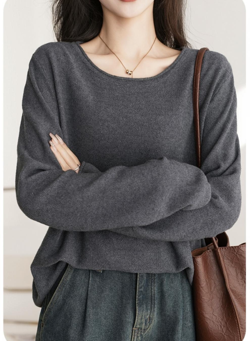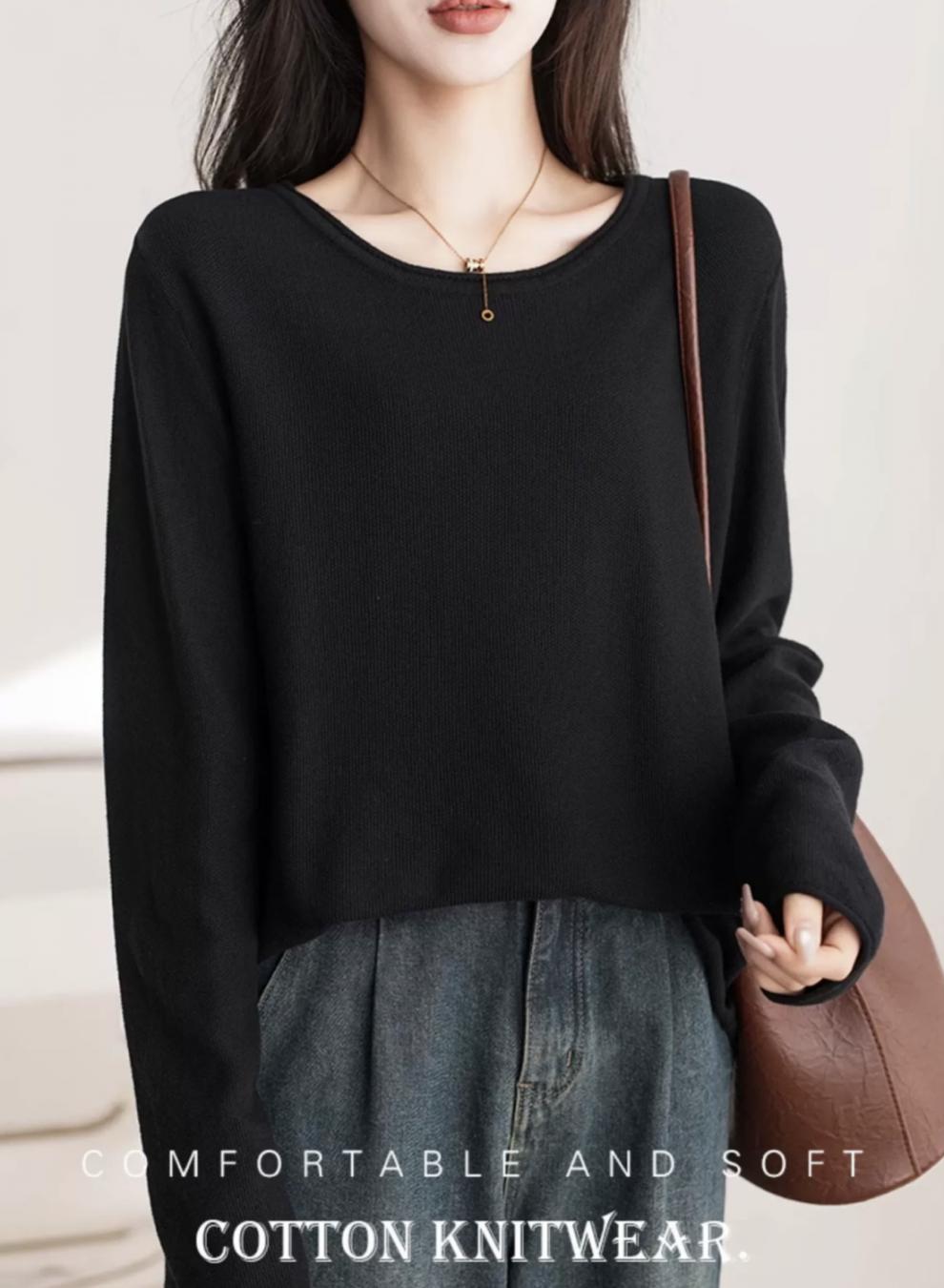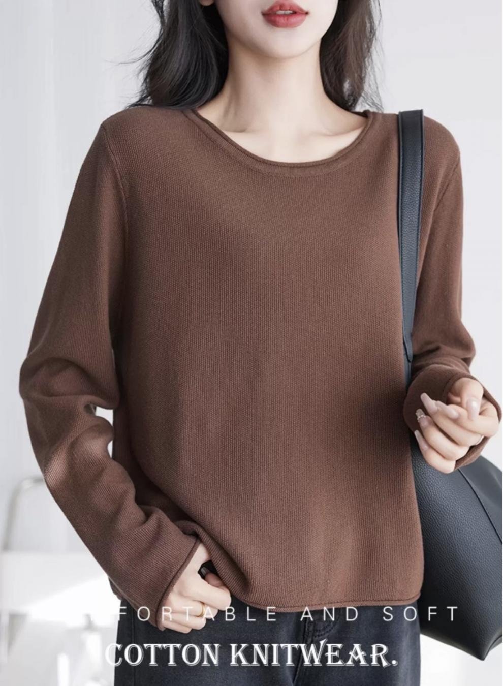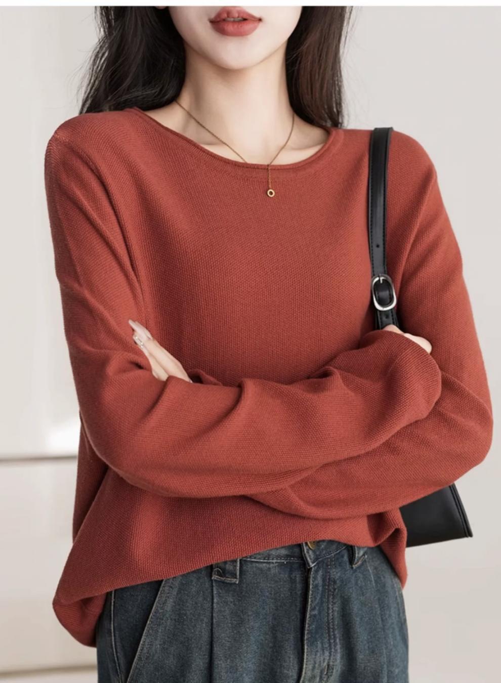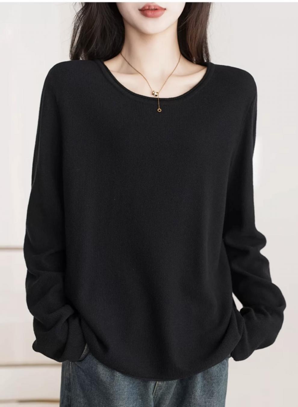 2025 Suéter Delicado y Amigable con la Piel Tejido Top para Mujer Primavera y Otoño Nuevo Estilo Popular Este Año Suelto Talla Extra Camiseta Básica Tendencia