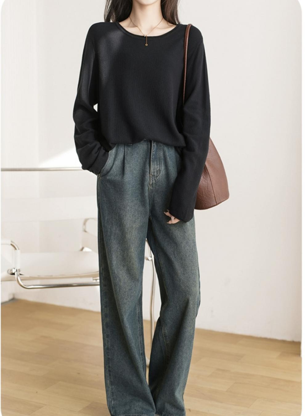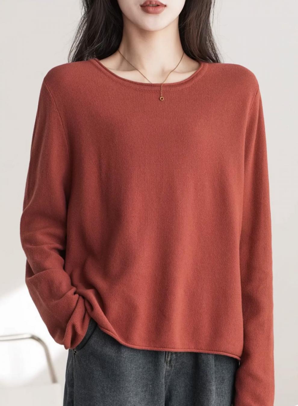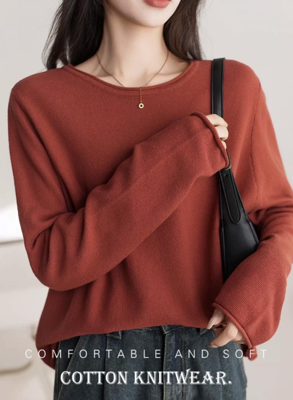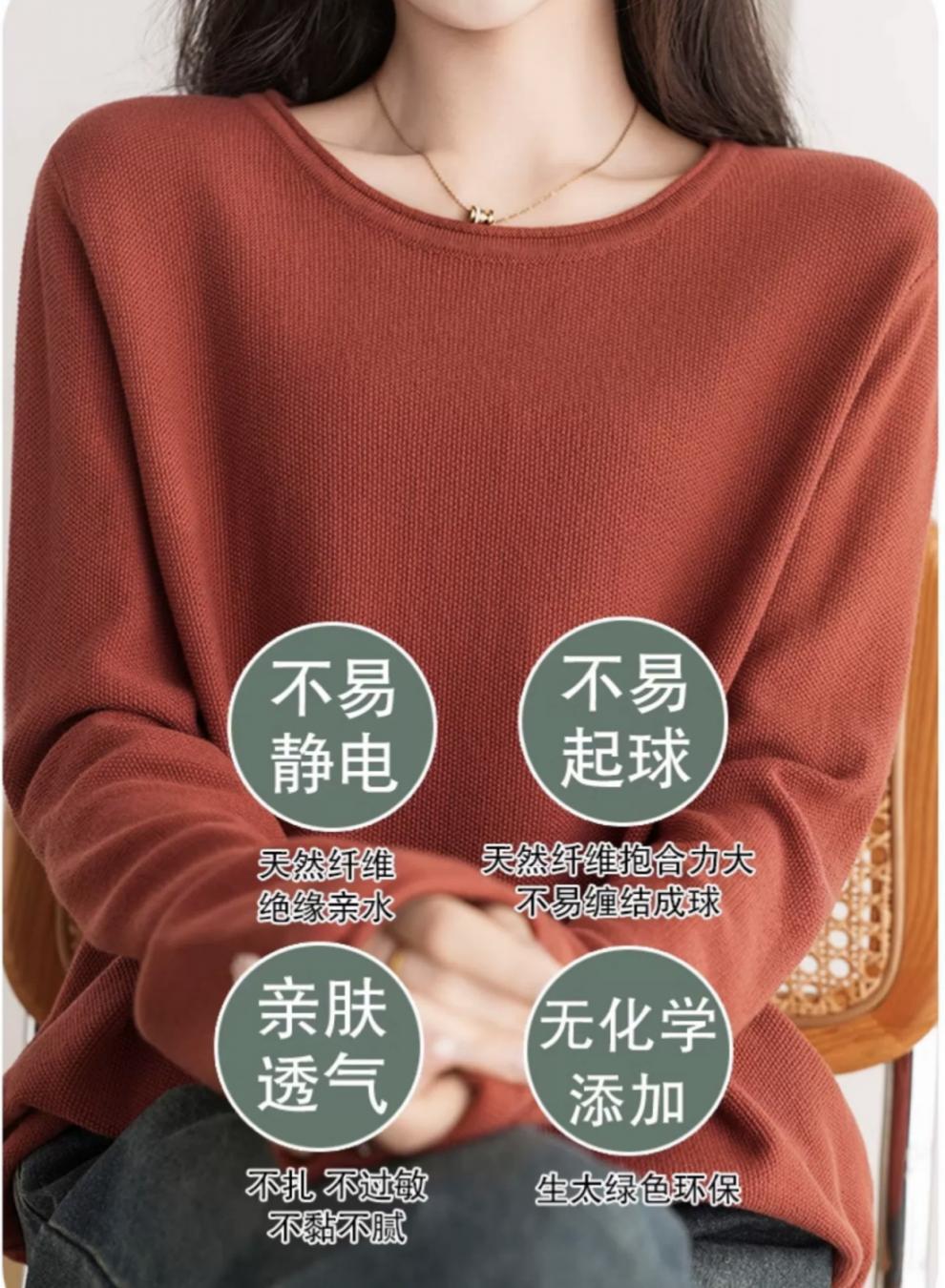 2025 Suéter Delicado y Amigable con la Piel Tejido Top para Mujer Primavera y Otoño Nuevo Estilo Popular Este Año Suelto Talla Extra Camiseta Básica Tendencia