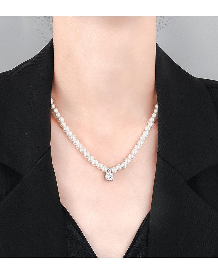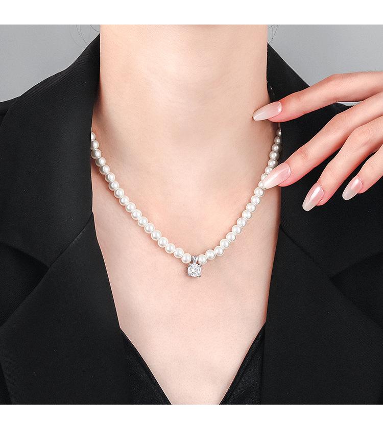 Collar de Perlas Diamante Super Flash para Mujer 2024 Nuevo Collar Nicho de Lujo Ligero de Alta Gama Elegante Cadena para Clavícula