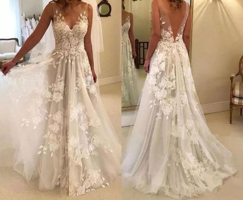 Vestido de novia europeo y americano de comercio exterior Amazon AliExpress wish nuevo simple delgado delgado encaje blanco marfil