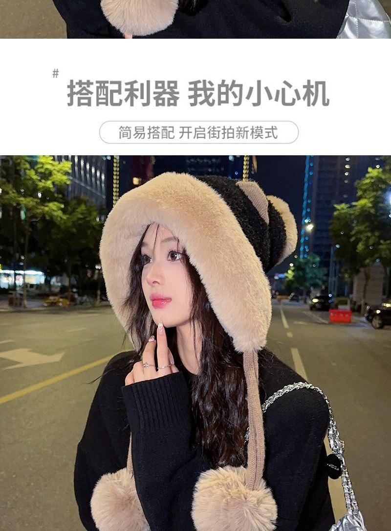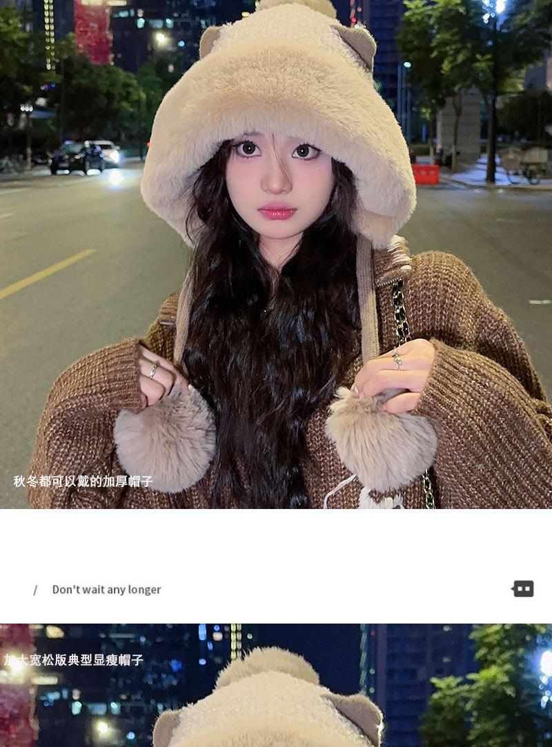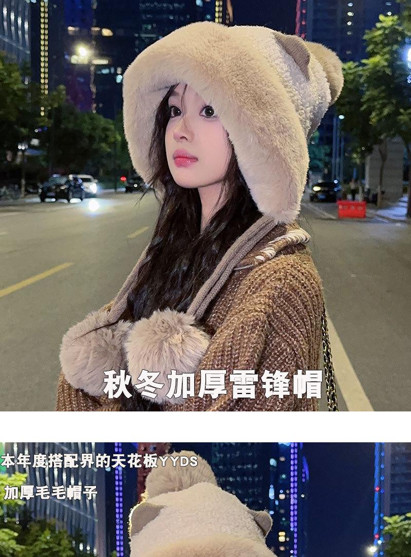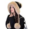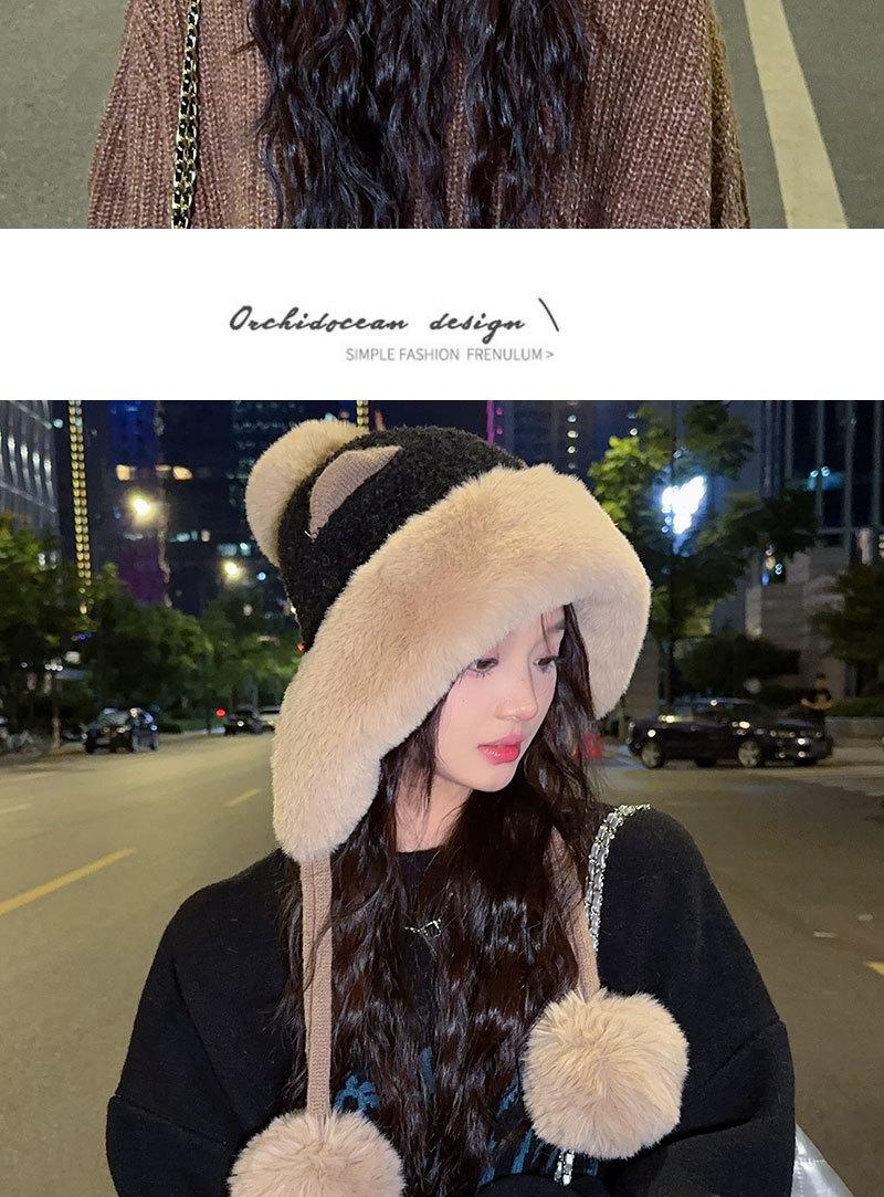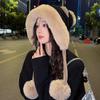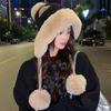 Gorro de lana para mujer estilo coreano lindo gorro Lei Feng invierno protección para las orejas gorro de punto con forro polar gorro de nieve gorro de 3 pompones