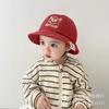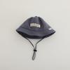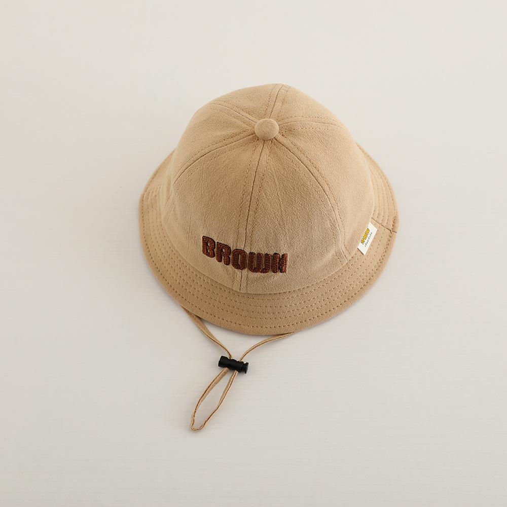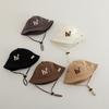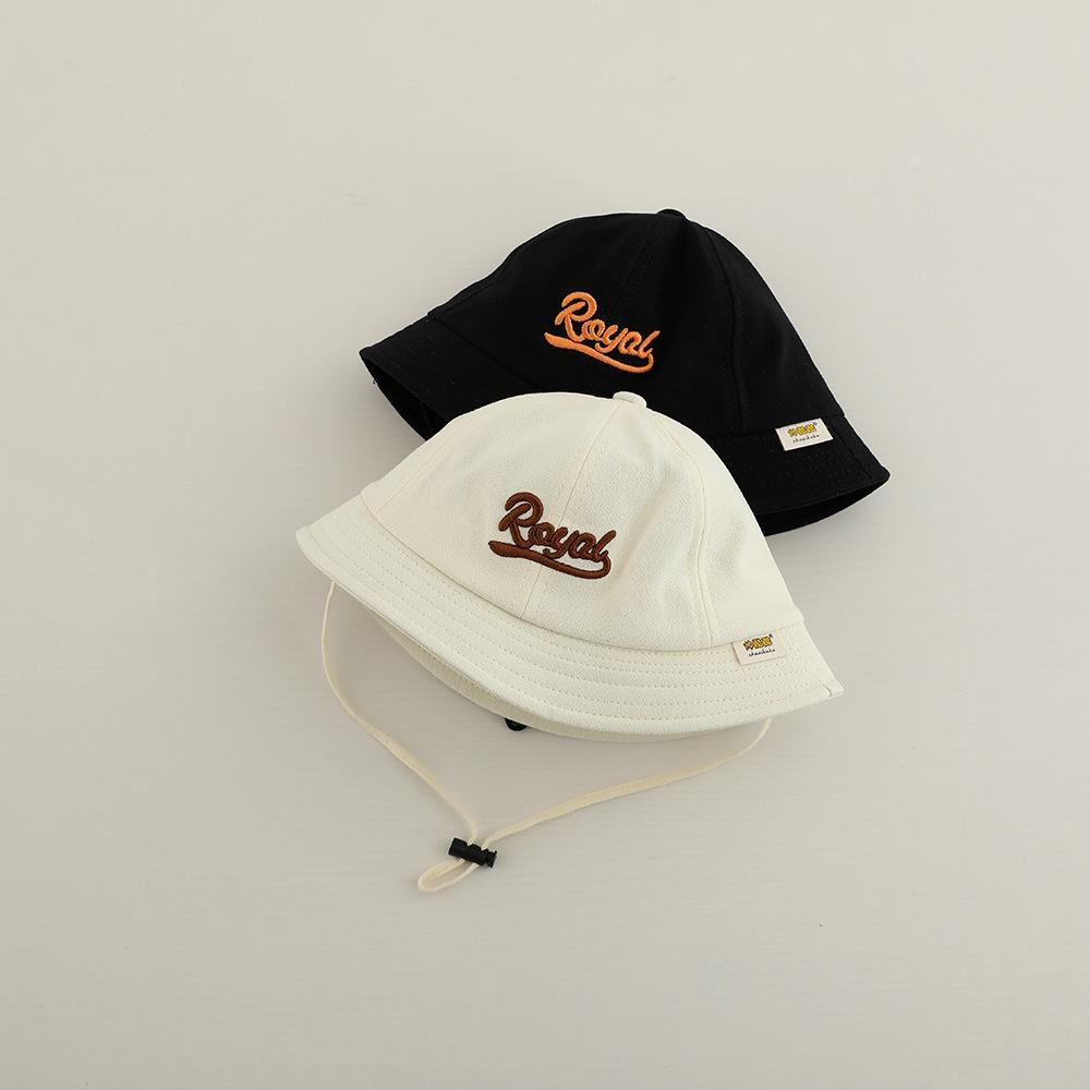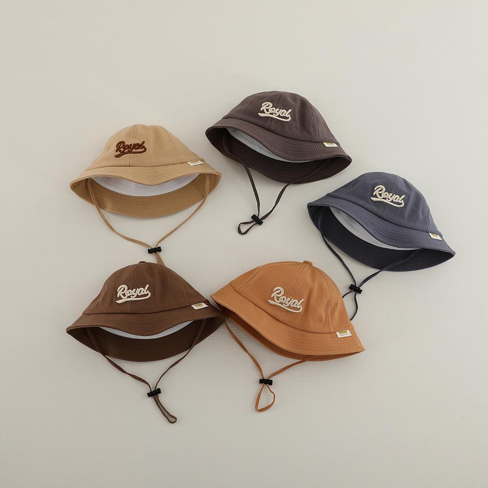 Sombrero de pescador infantil estilo coreano con protección solar y letra bordada, nuevo para primavera y otoño, sombrero para el sol para exteriores, ala ancha, cuerda a prueba de viento, sombrero tipo cubeta