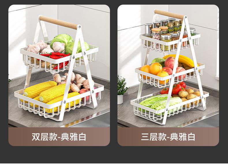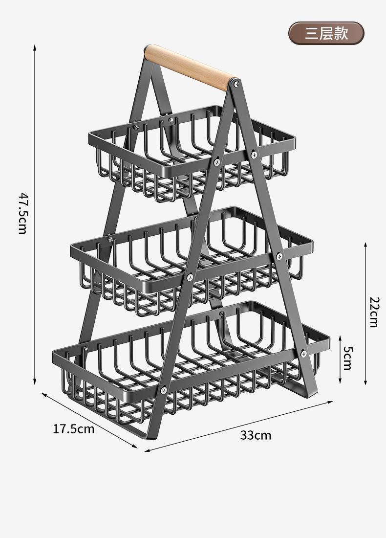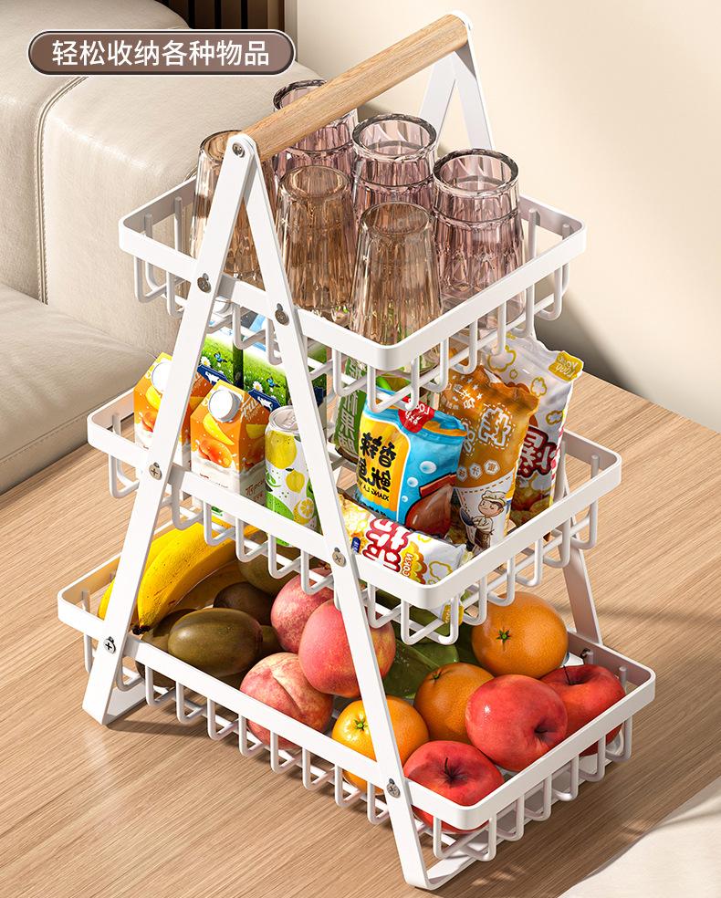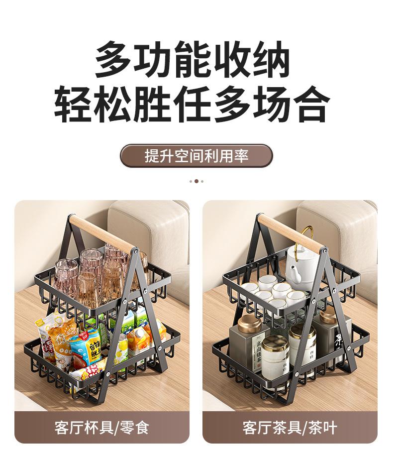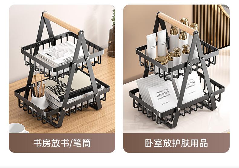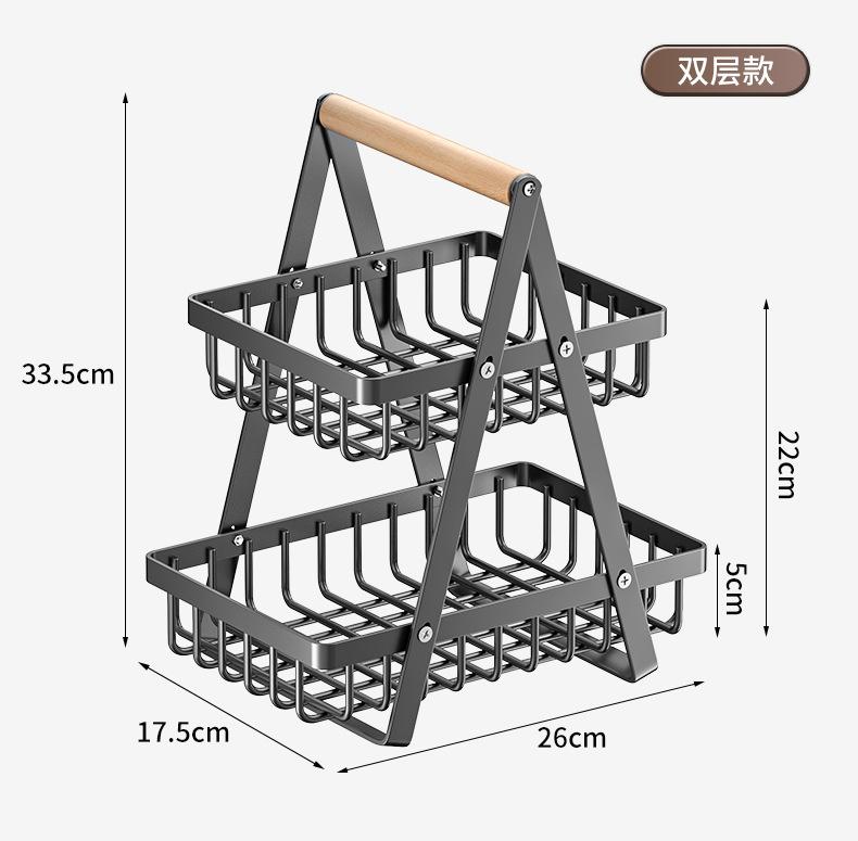 Cesta de Almacenamiento Desmontable y Ensamblable de Doble Capa Cesta de Madera Portátil Conveniente Cesta de Frutas de Hierro Forjado Almacenamiento de Cocina Cesta de Almacenamiento para Sala de Estar