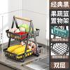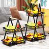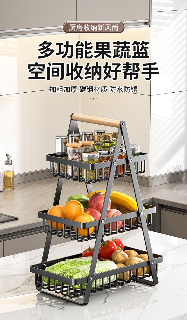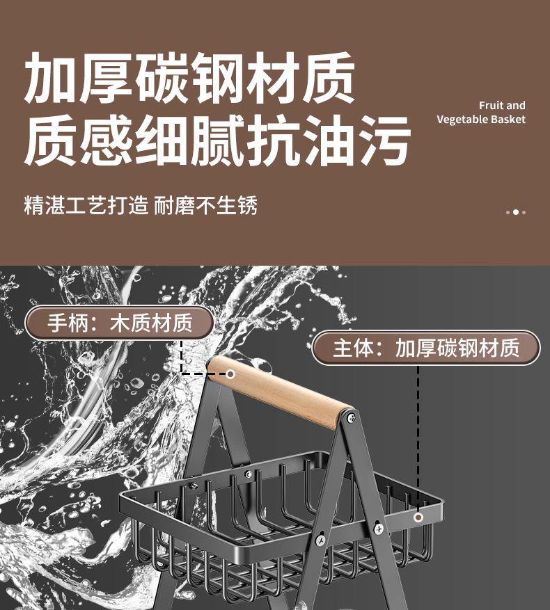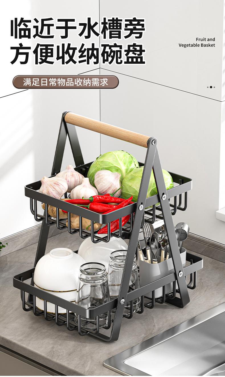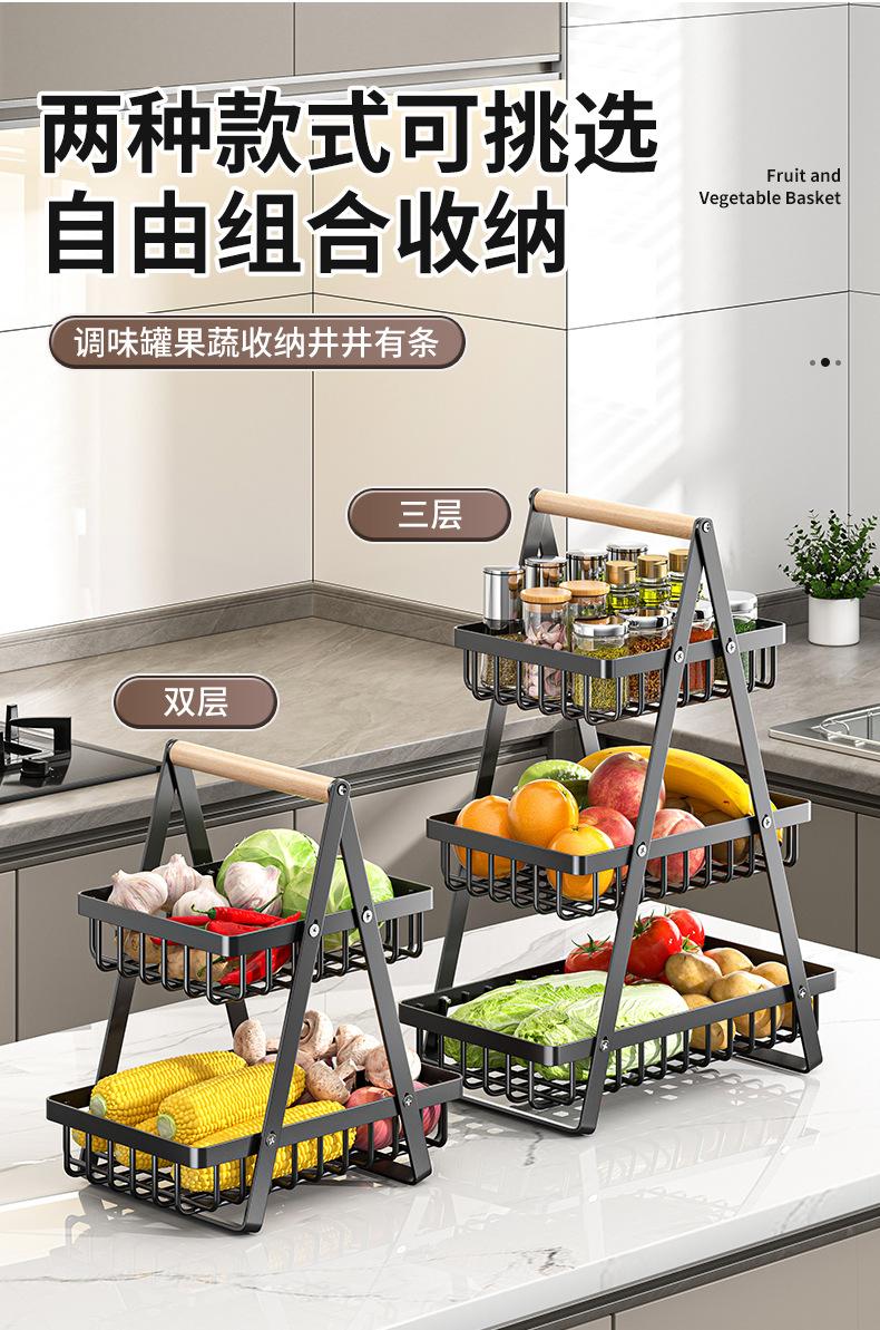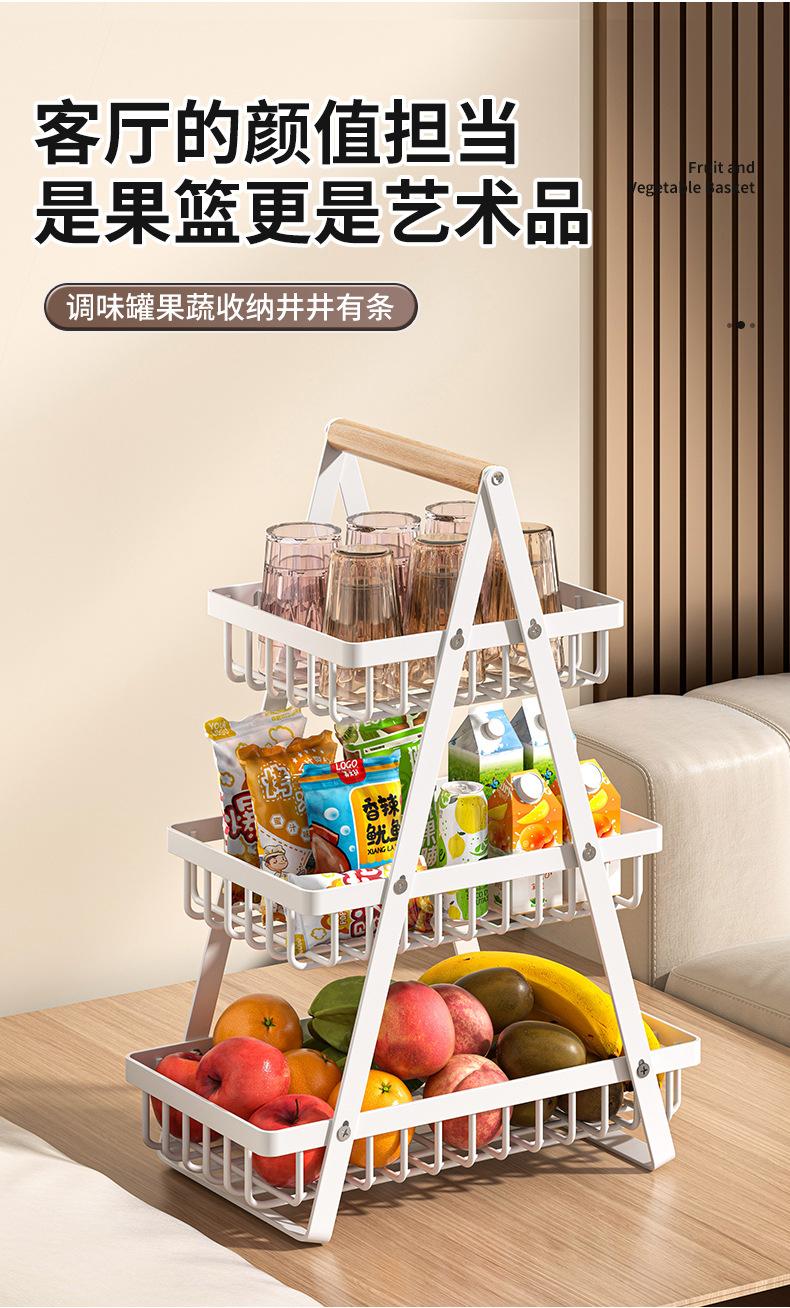 Cesta de Almacenamiento Desmontable y Ensamblable de Doble Capa Cesta de Madera Portátil Conveniente Cesta de Frutas de Hierro Forjado Almacenamiento de Cocina Cesta de Almacenamiento para Sala de Estar