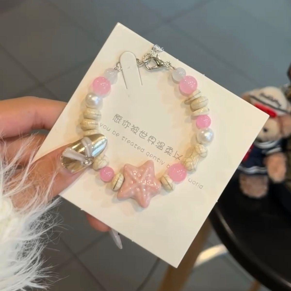 T-listening rabbit wish pearl rhyme, T-pink bead running ring kt cat, T-milk blue starfish, T-peach pink starf...
