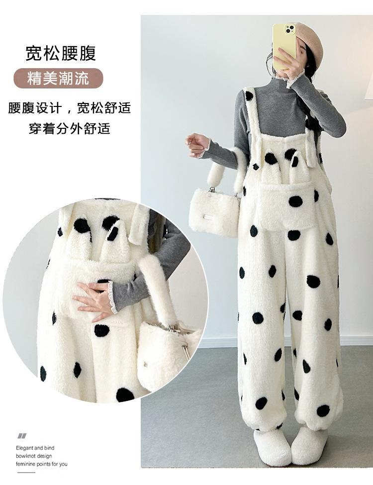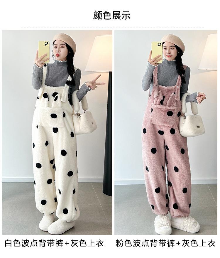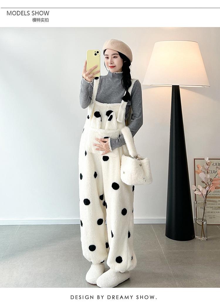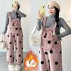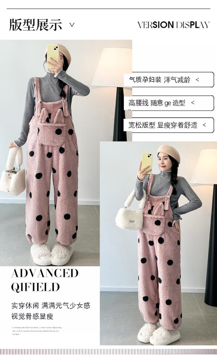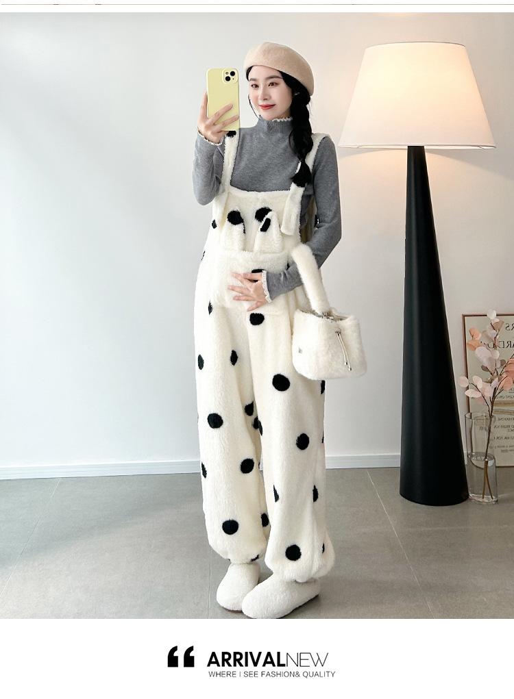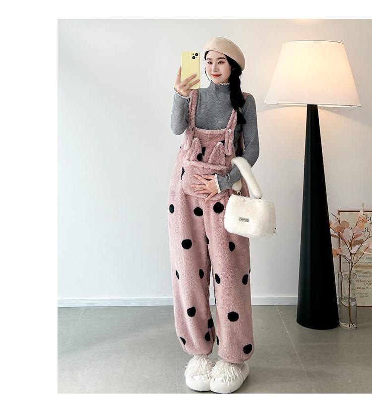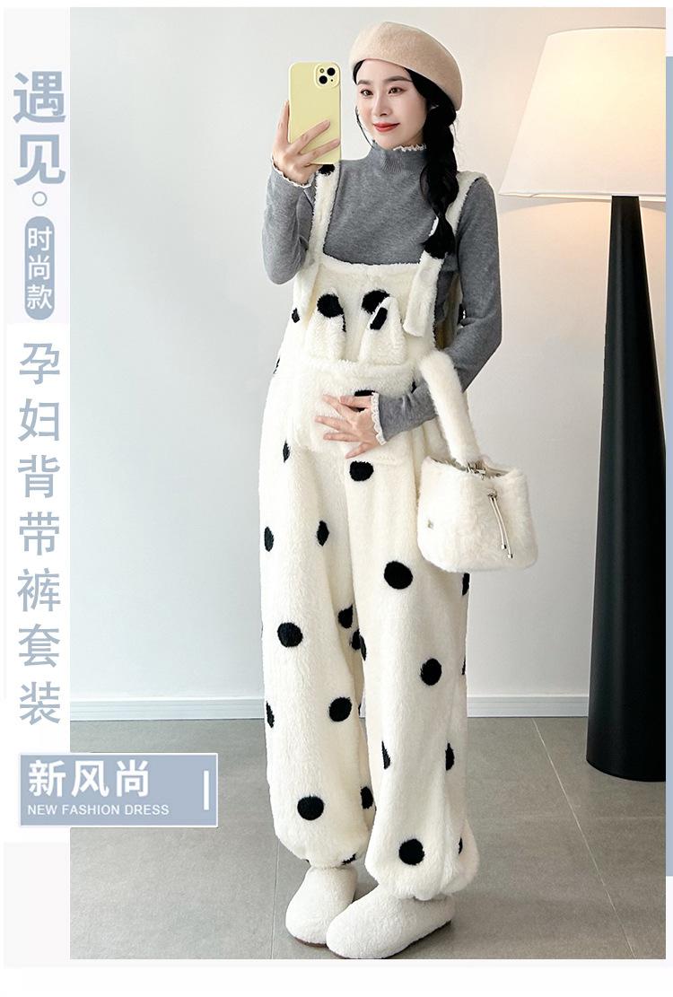 Conjunto de Maternidad Otoño/Invierno 2025 Casual de Lana de Cordero Maternidad Overol Holgado Camiseta Básica de Cuello Alto Conjunto de Maternidad