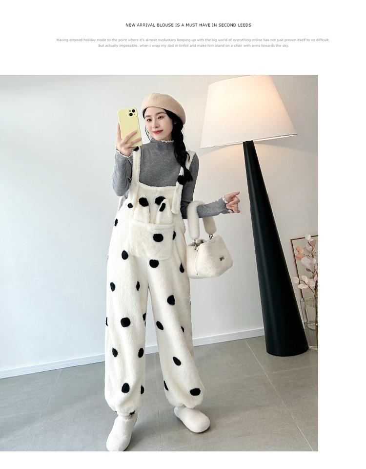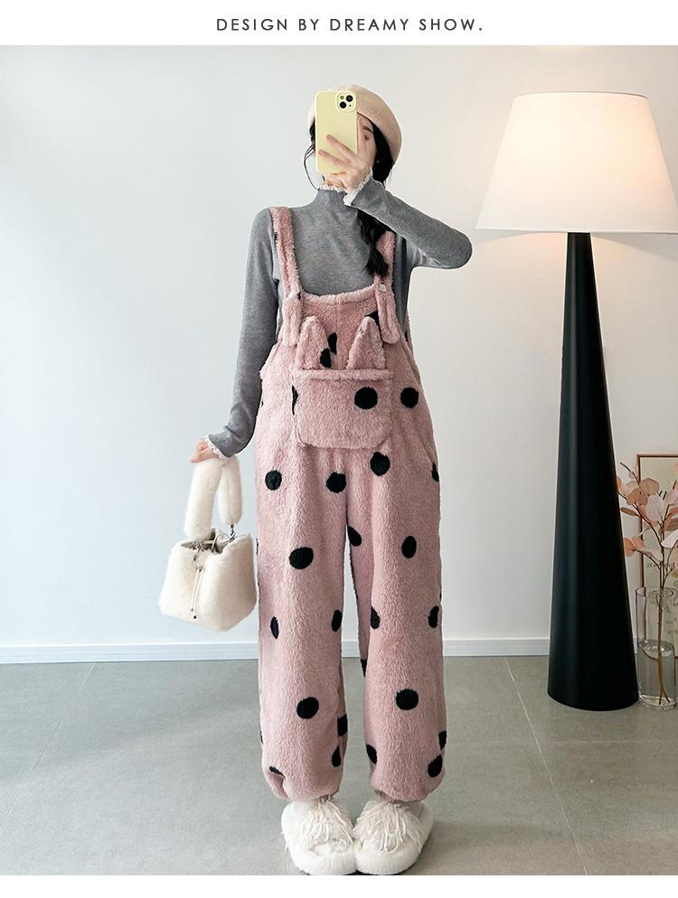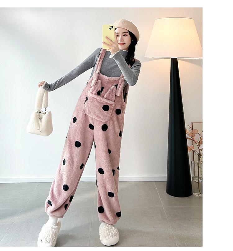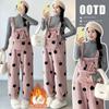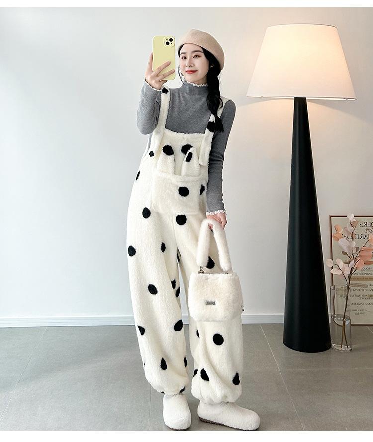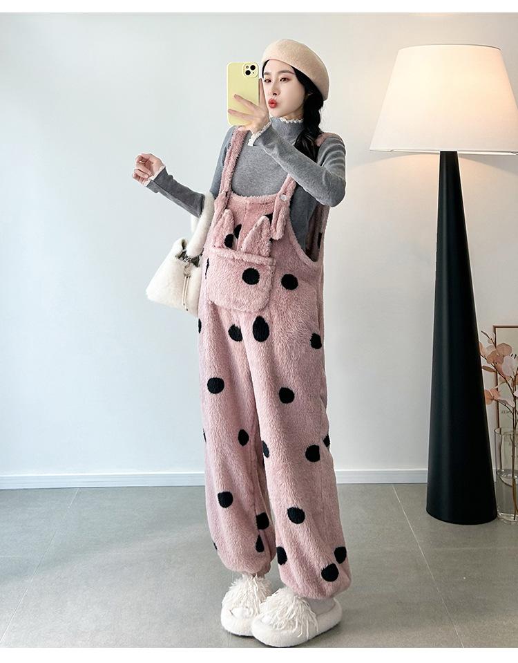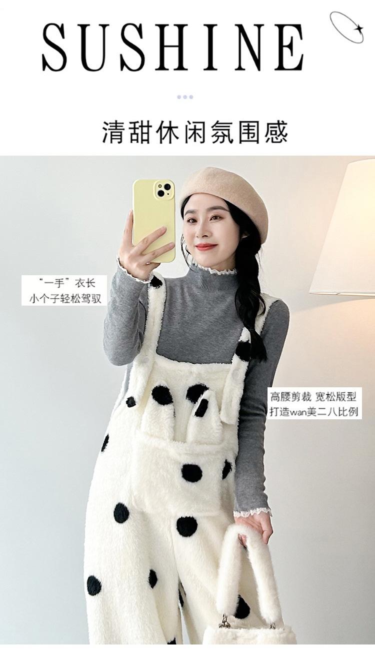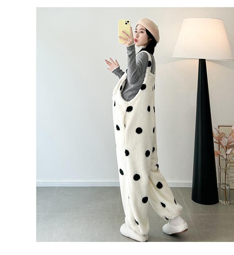 Conjunto de Maternidad Otoño/Invierno 2025 Casual de Lana de Cordero Maternidad Overol Holgado Camiseta Básica de Cuello Alto Conjunto de Maternidad
