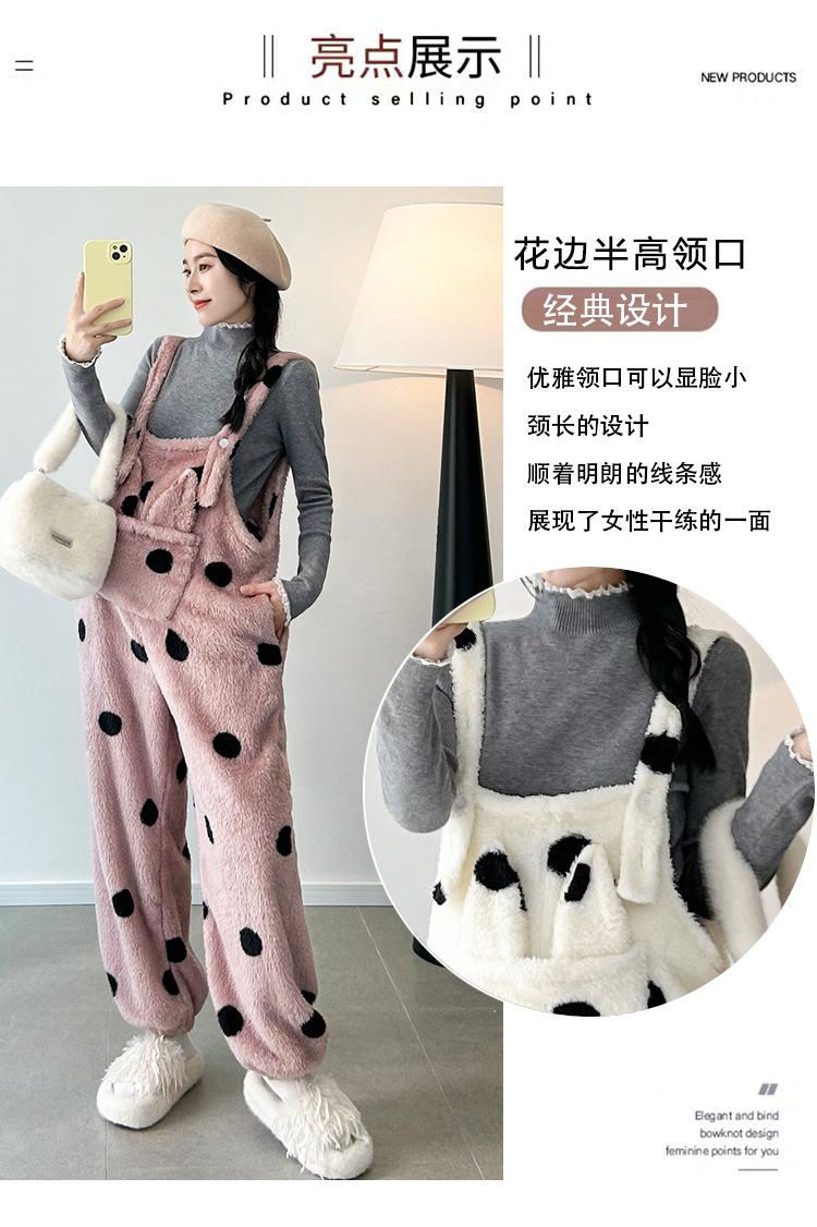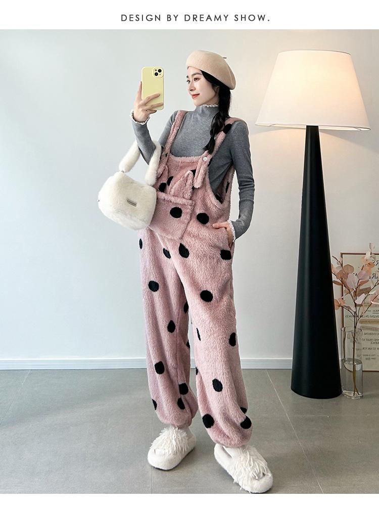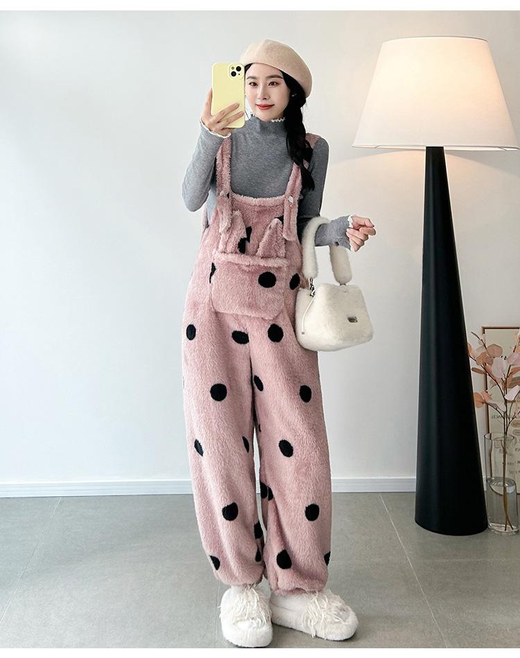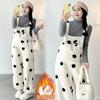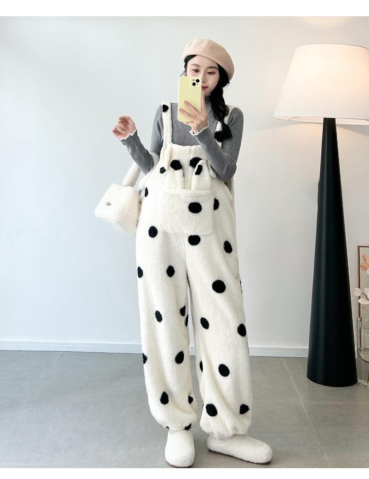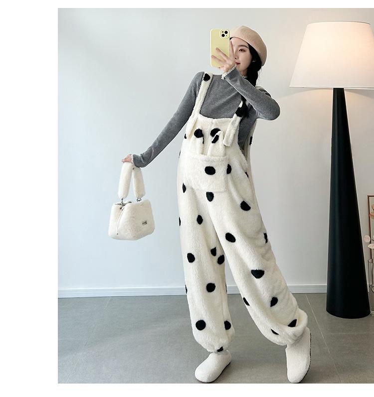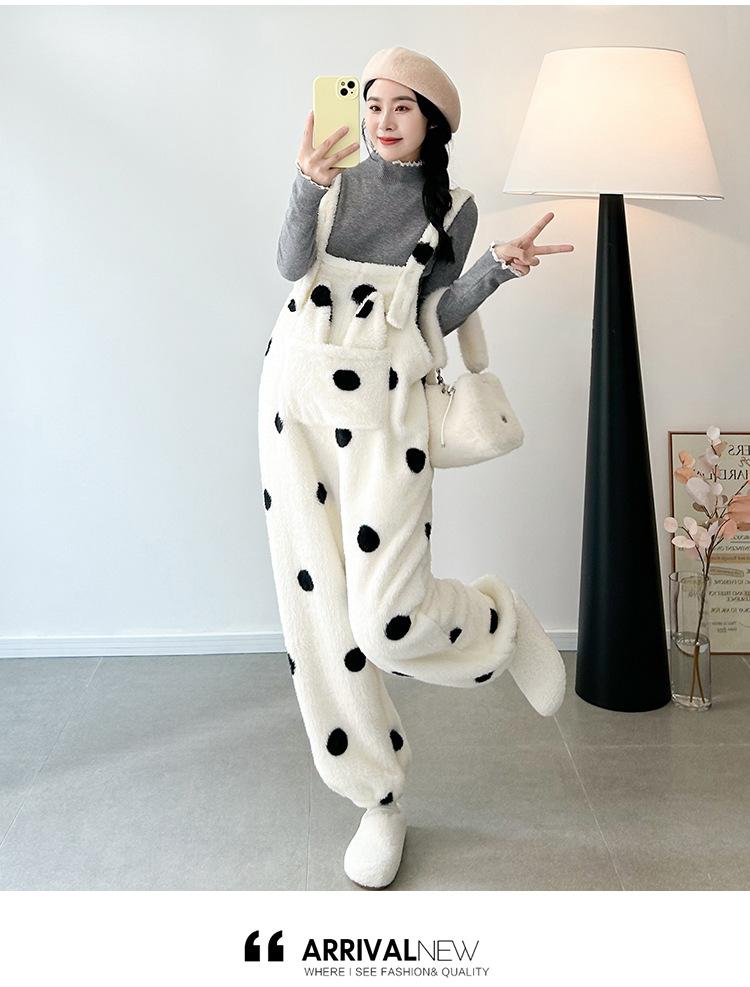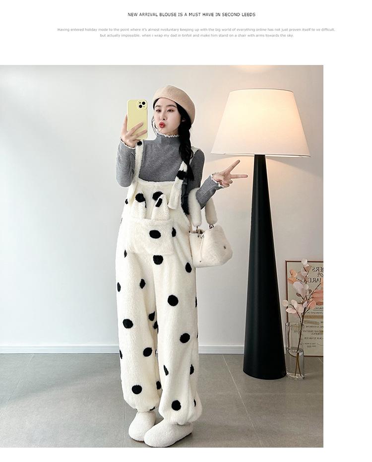 Conjunto de Maternidad Otoño/Invierno 2025 Casual de Lana de Cordero Maternidad Overol Holgado Camiseta Básica de Cuello Alto Conjunto de Maternidad